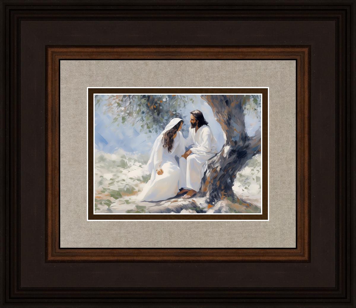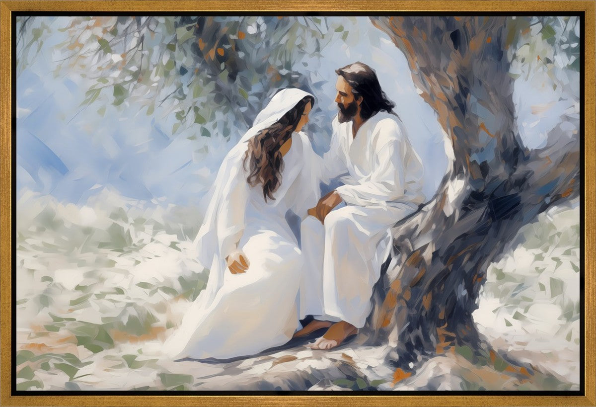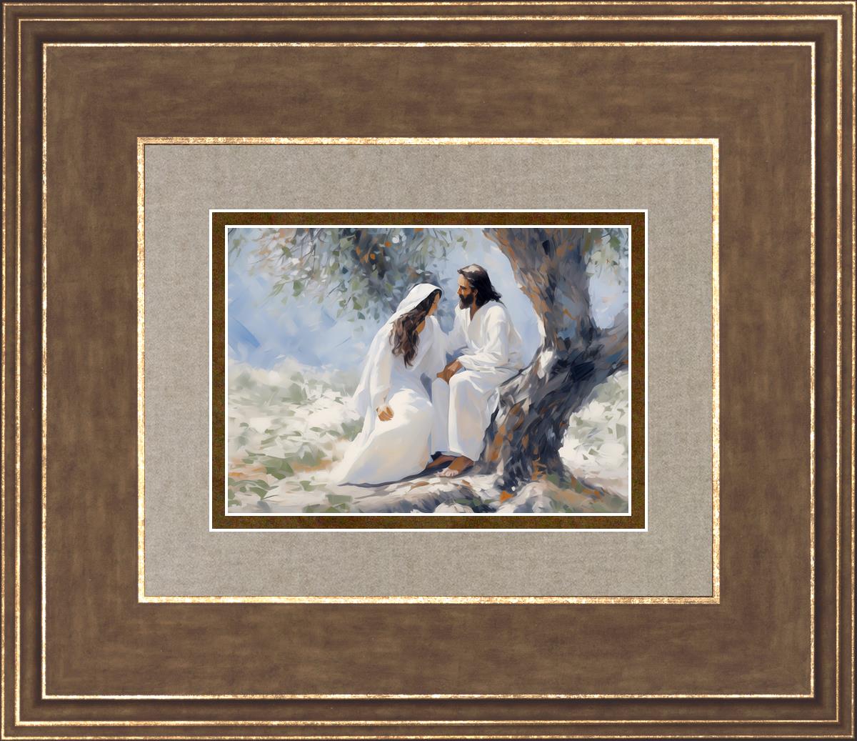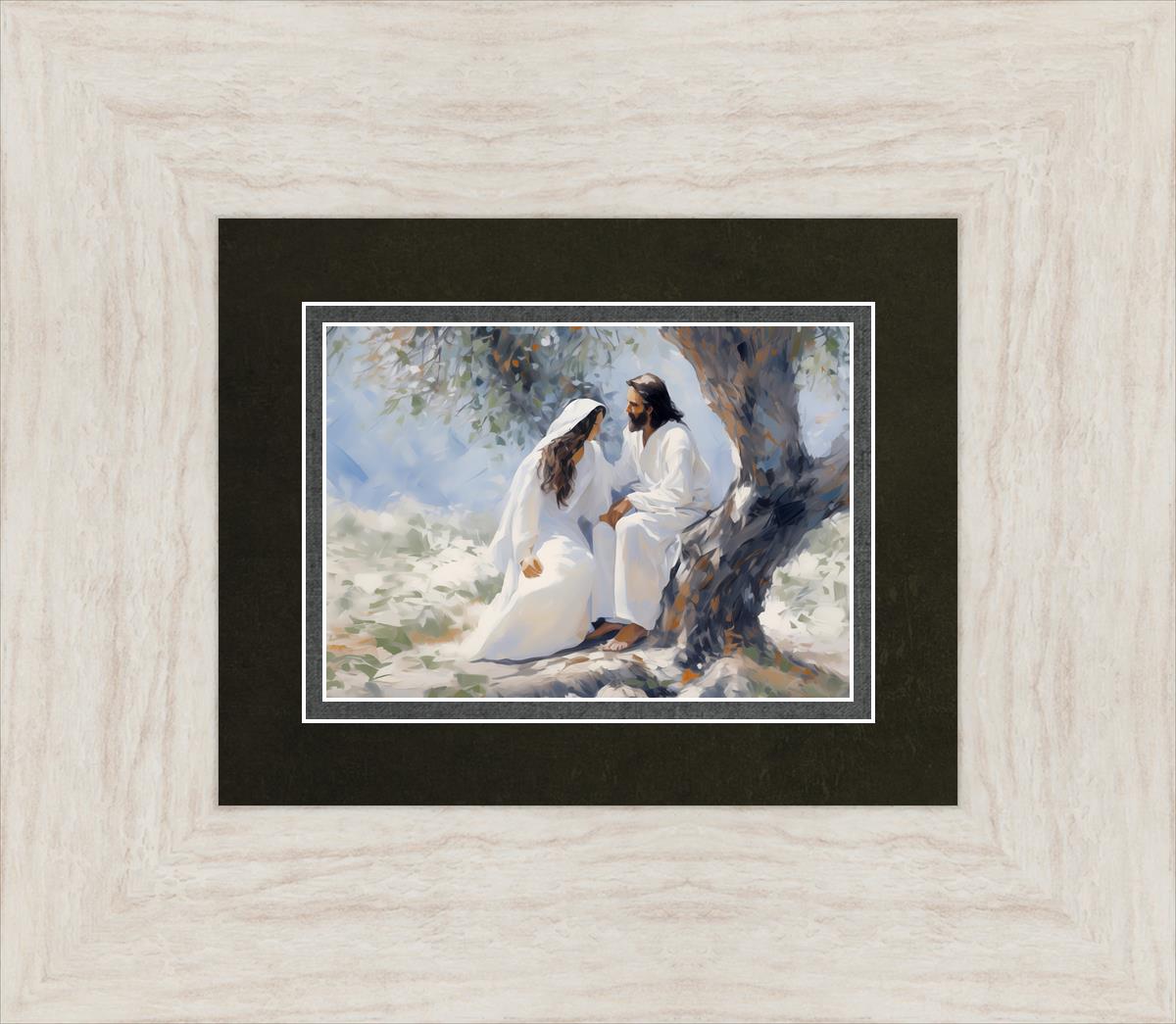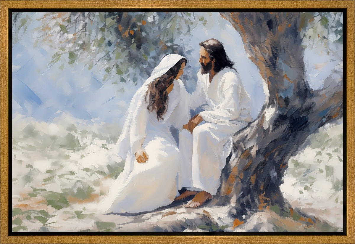 In this image, I wanted to depict Christ in the Garden with a woman, any woman, who would accept his sacrifice. It could be Mary Magdalene or it could be you. I believe that the image of those who would accept his message strengthened him as he bore our afflictions and carried our burdens.