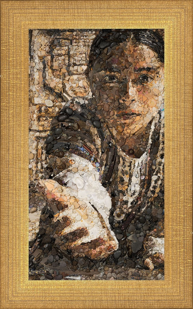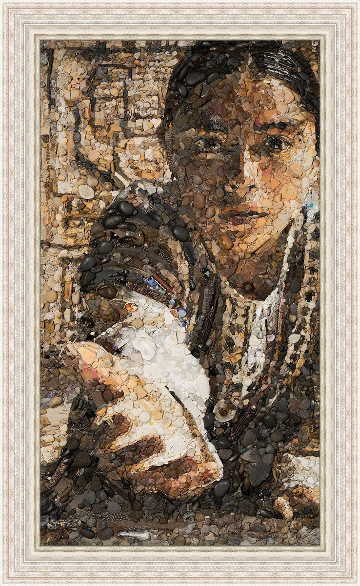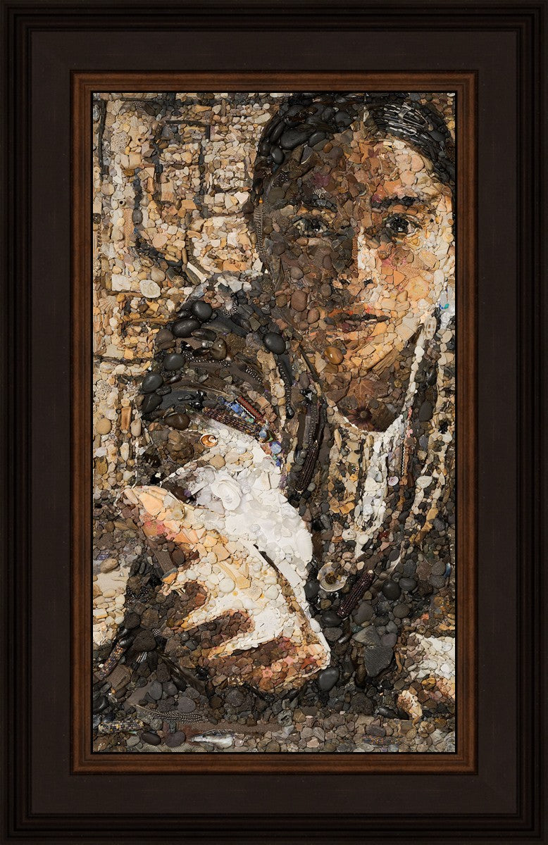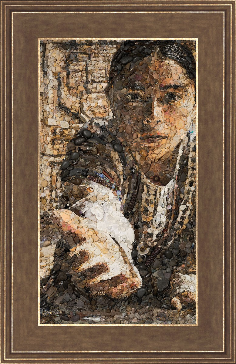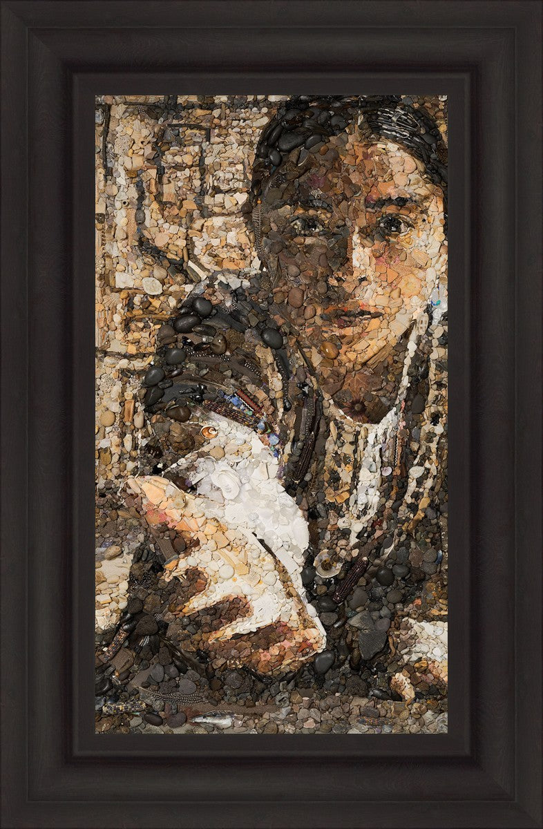 The queen of the Lamanites is overcome by the Spirit and falls to the ground. Abish, a Book of Mormon character who nurtured a secret faith, sees an opportunity to lift the queen and to testify to the many around her. After gathering a crowd of neighbors, Abish reached out to the queen, lifting her to consciousness and witnessing a higher way to the gathered crowd. The viewer becomes the queen, newly awakened to Abish as she reaches out to lift.