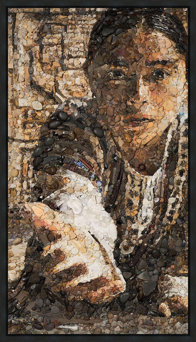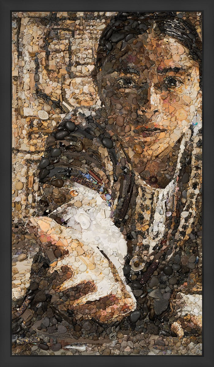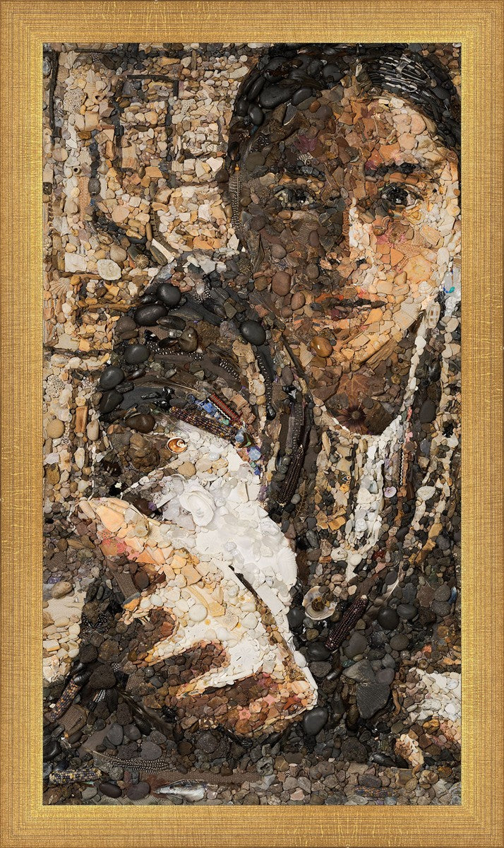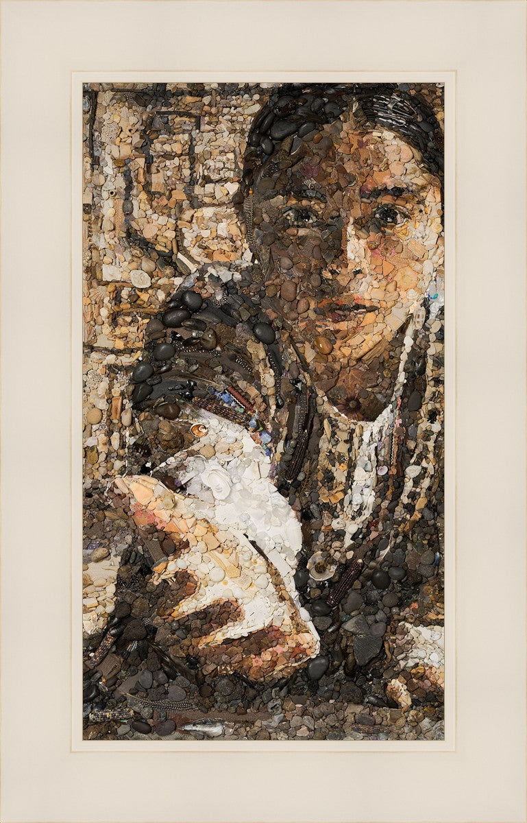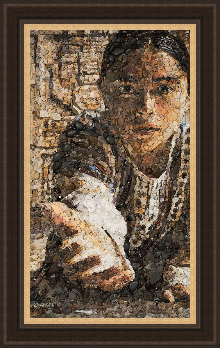 The queen of the Lamanites is overcome by the Spirit and falls to the ground. Abish, a Book of Mormon character who nurtured a secret faith, sees an opportunity to lift the queen and to testify to the many around her. After gathering a crowd of neighbors, Abish reached out to the queen, lifting her to consciousness and witnessing a higher way to the gathered crowd. The viewer becomes the queen, newly awakened to Abish as she reaches out to lift.