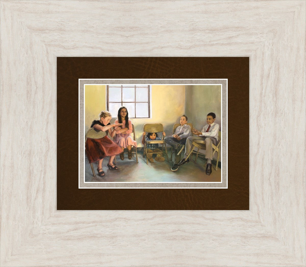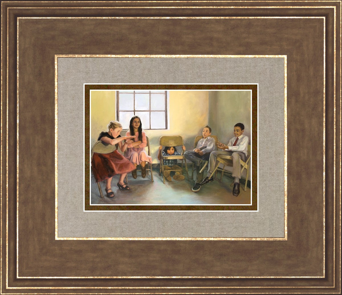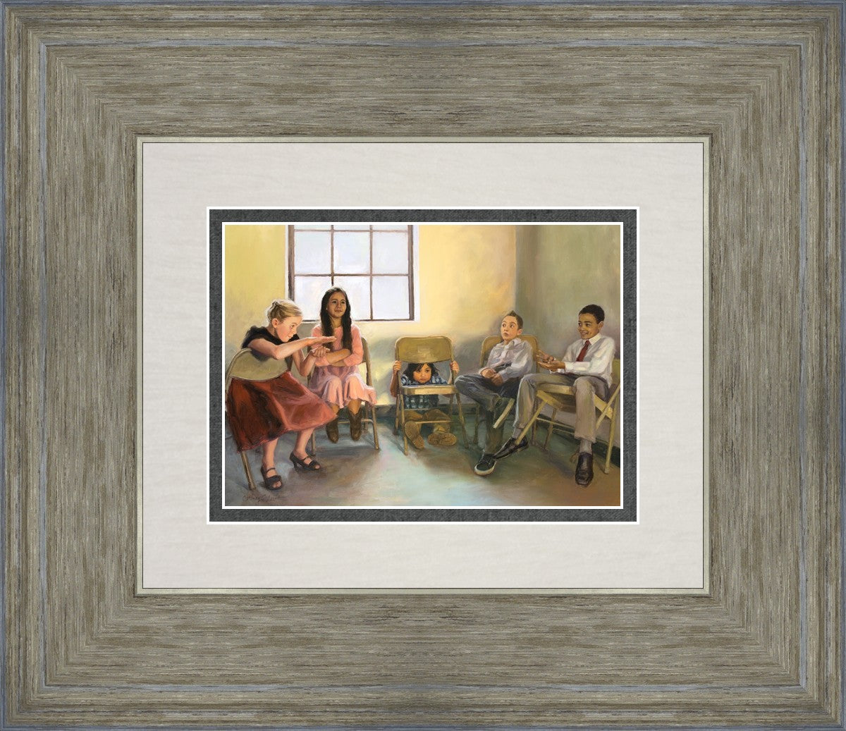 Several years ago I was substituting in primary in church and as I watched the children be children I received the idea for this painting. I noticed that most kids have a really hard time being reverent...occasionally there are a few that are, but God loves all of His children no matter how they behave! It was so fun to work with the children who were my little models. I really fed off of their energy. Each time I do a meaningful painting like this, it strengthens my testimony in the Gospel of Jesus Christ. I know that we are "All Children of God."