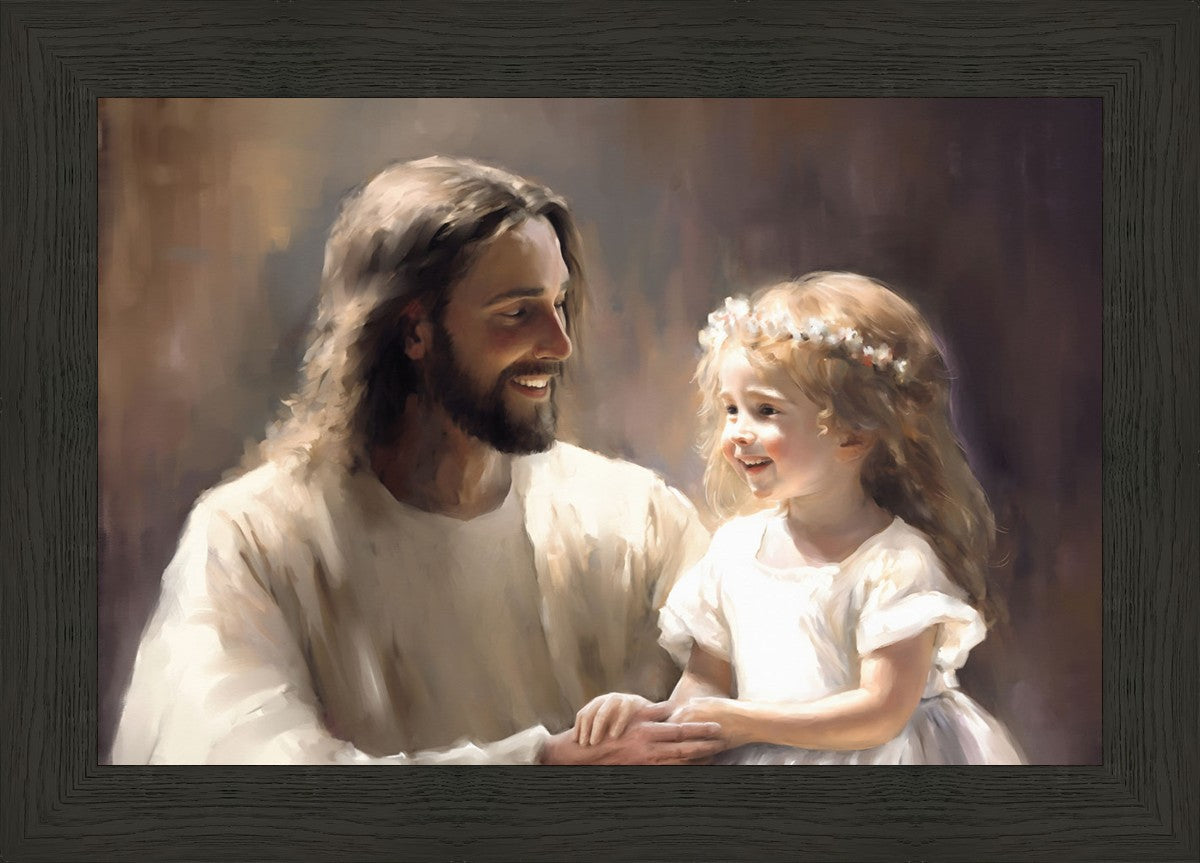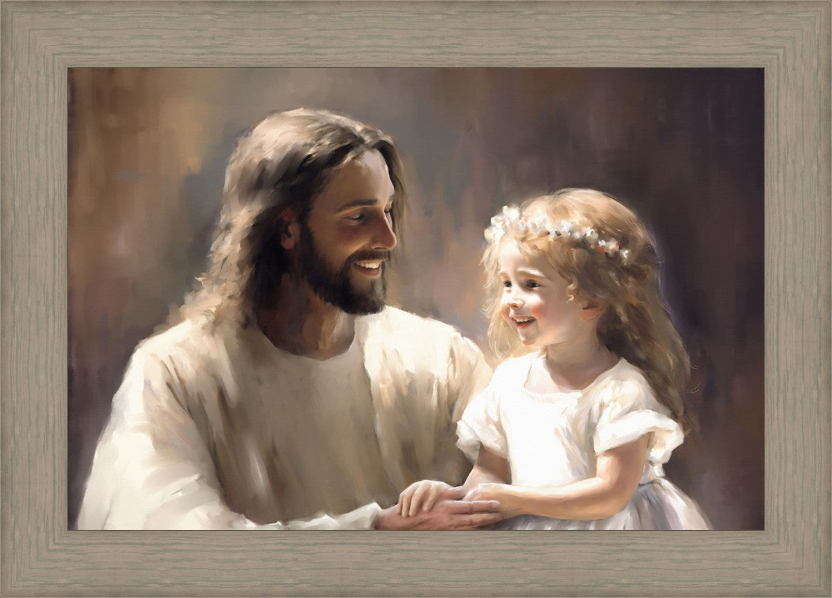 "All I See is You" by Alex Kovych features Jesus holding a little girl, with the artist's profound vision of hope and promise under the guiding light of Jesus Christ.