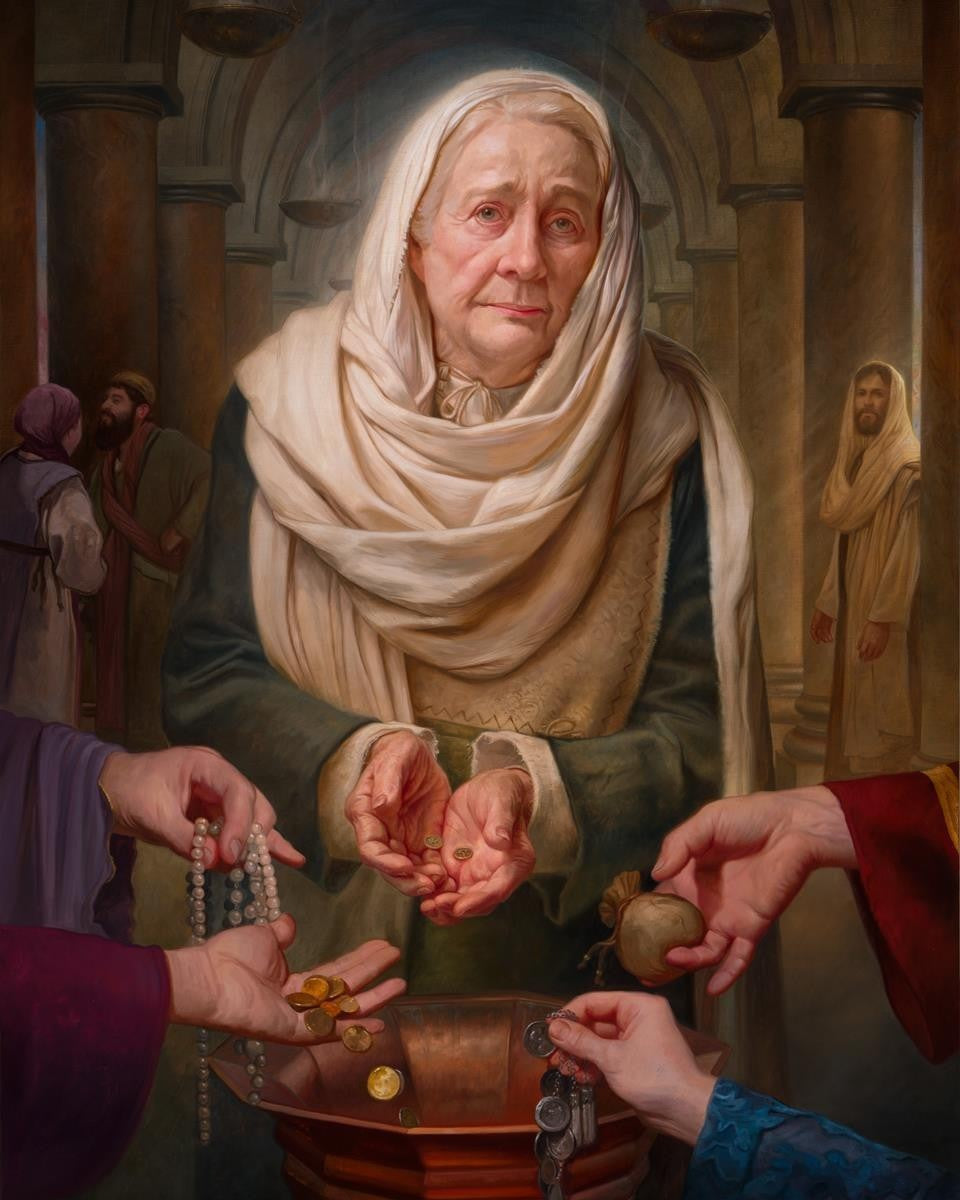 Here we see the woman described in Luke 21:1-4. The story of the Widow and her two mites is a powerful story about what it means to consecrate your life to the Lord. It doesn’t matter how much you have, but what you are willing to give.