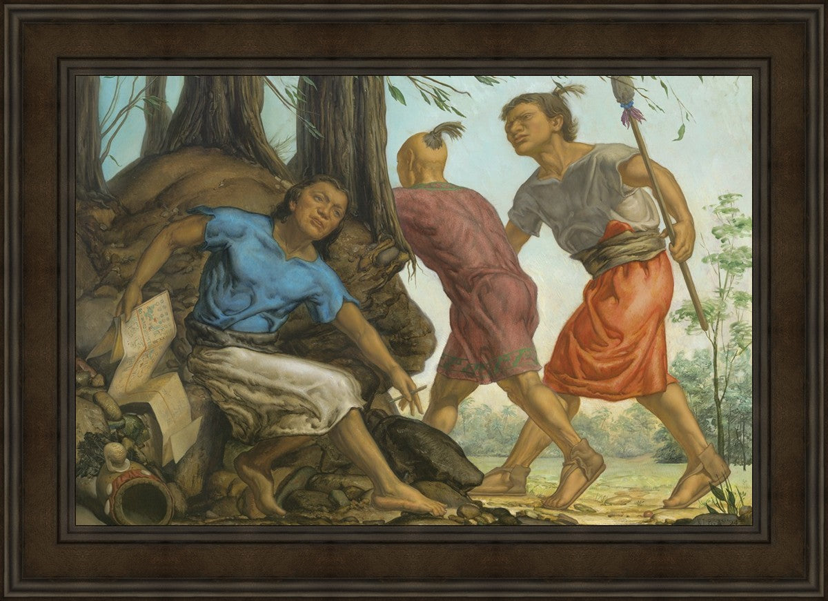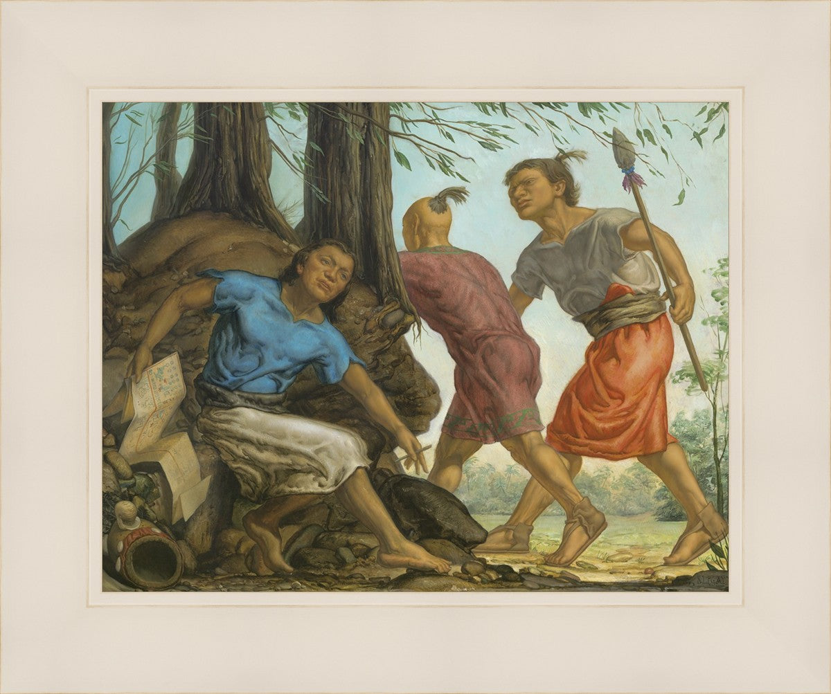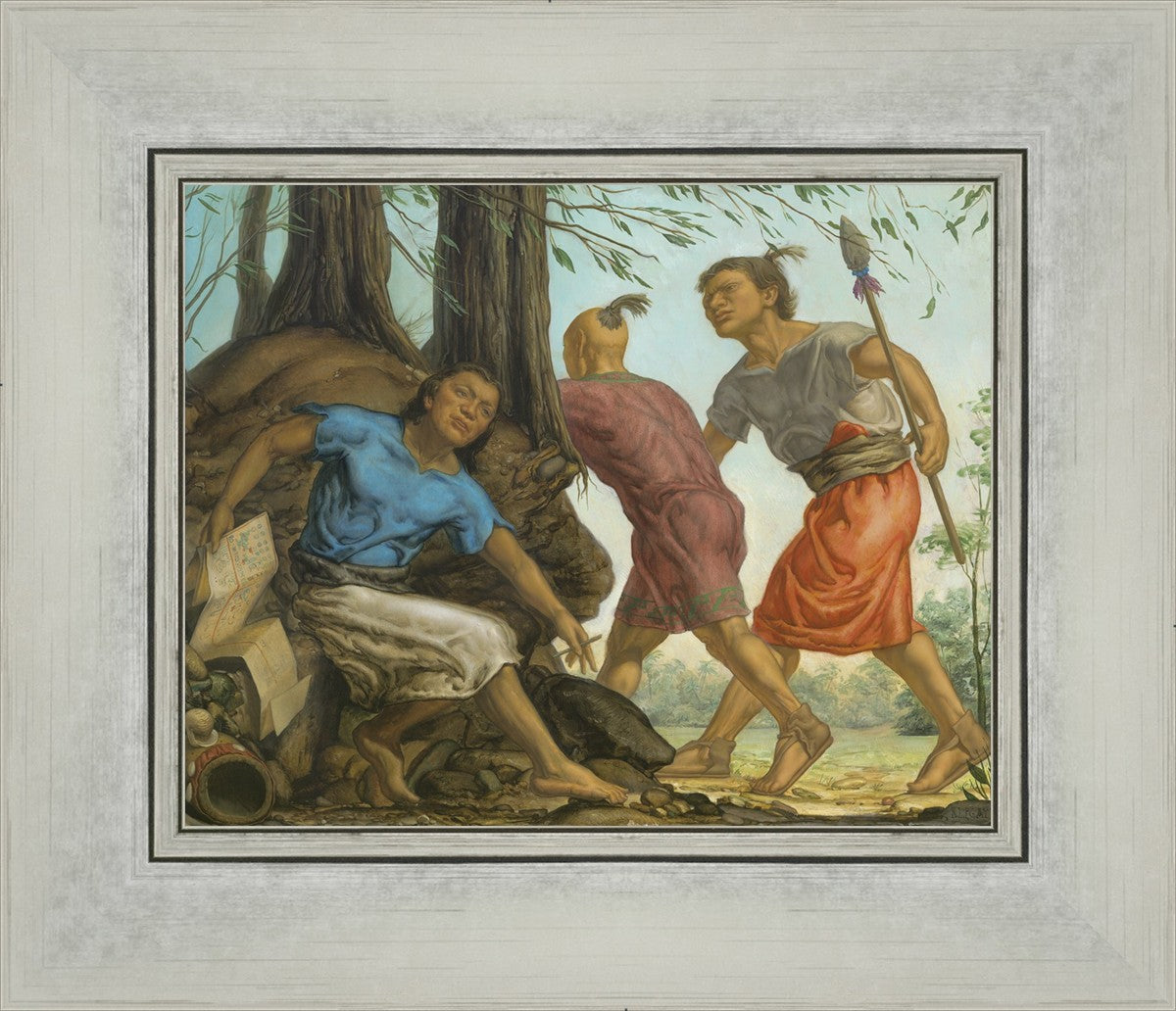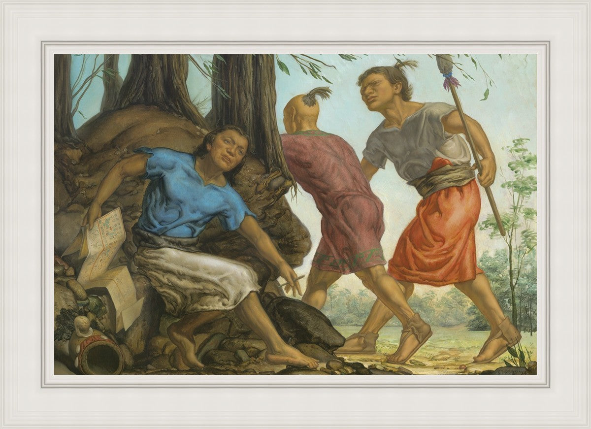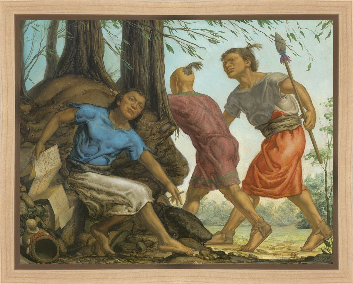 When the prophet Abinadi, in the Book of Mormon, preaches the gospel of Christ to a wicked king and his priests, a priest named Alma believes. Alma is in danger for believing, and after fleeing from the king's court, Alma hides from the king's men and records the teachings that he heard from Abinadi.