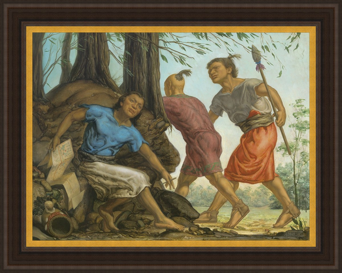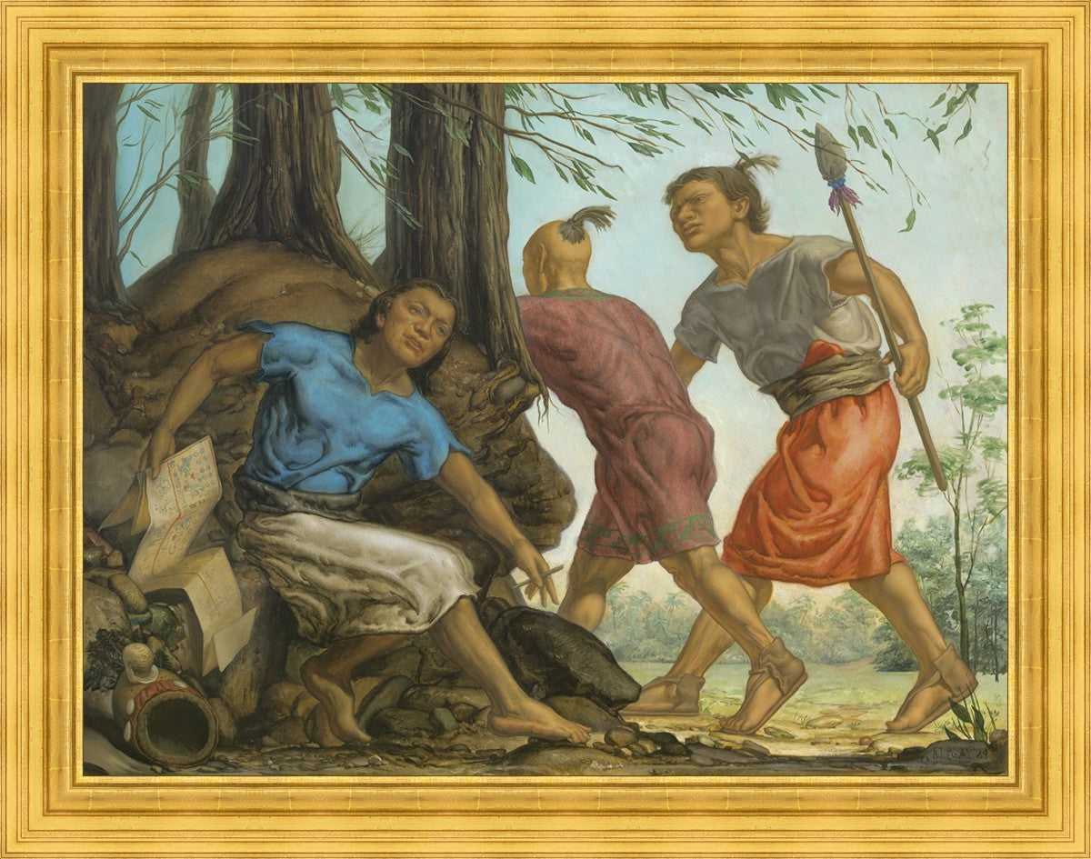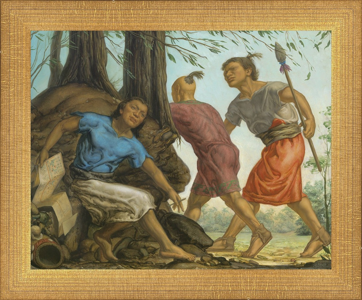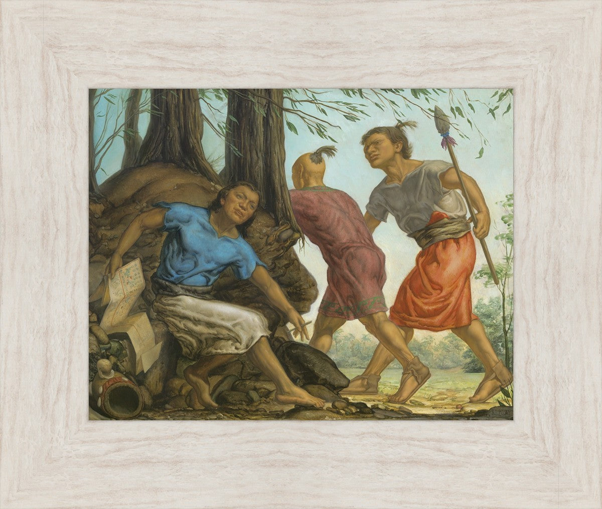 When the prophet Abinadi, in the Book of Mormon, preaches the gospel of Christ to a wicked king and his priests, a priest named Alma believes. Alma is in danger for believing, and after fleeing from the king's court, Alma hides from the king's men and records the teachings that he heard from Abinadi.