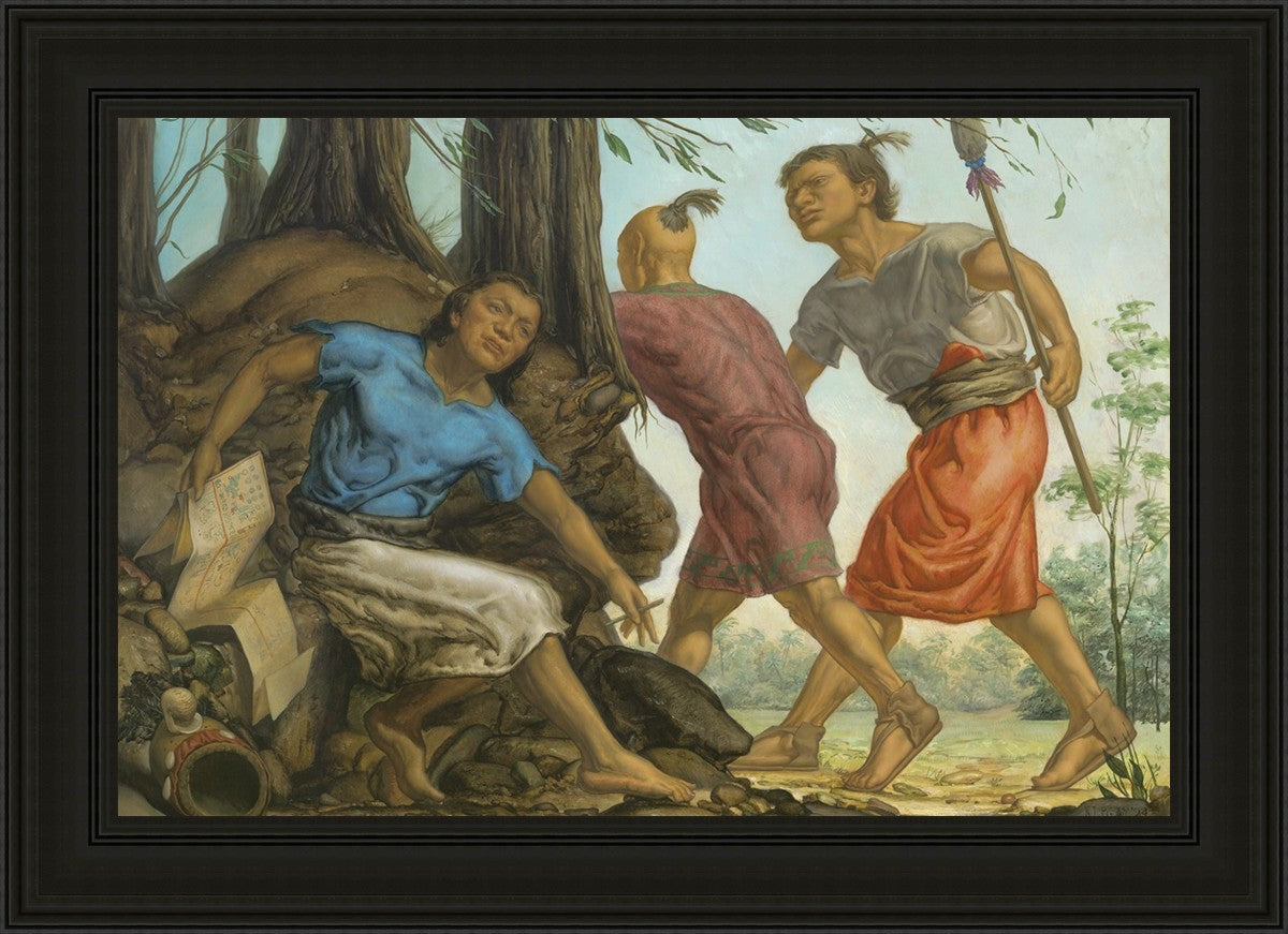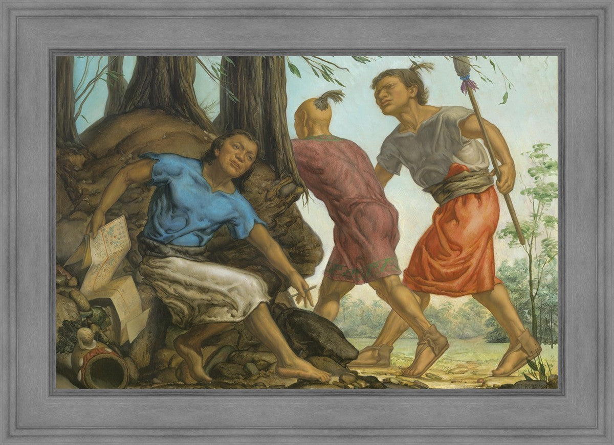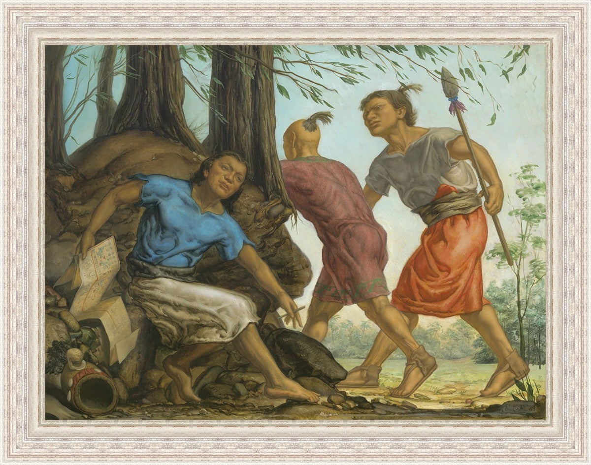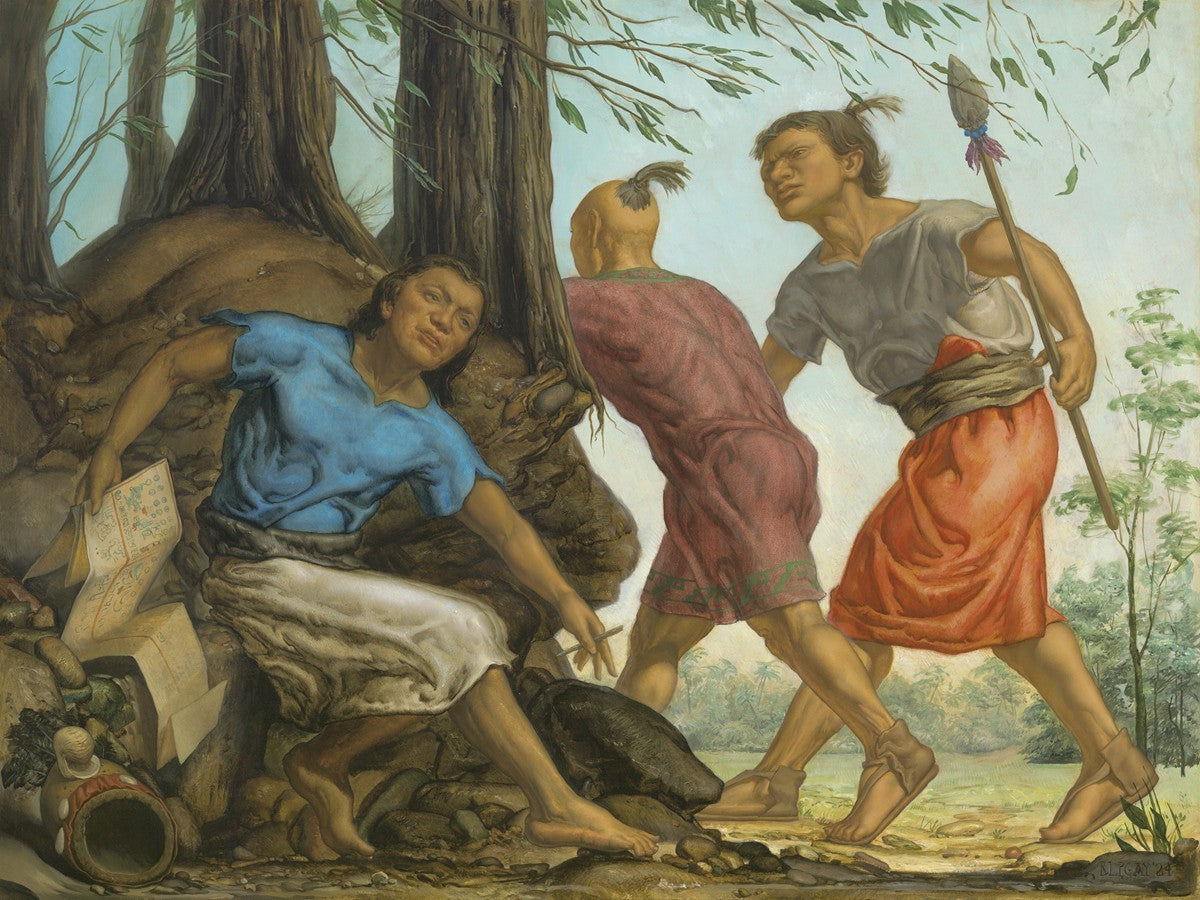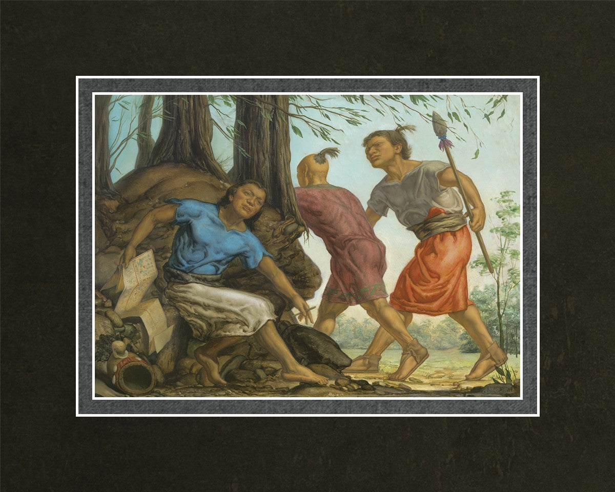 When the prophet Abinadi, in the Book of Mormon, preaches the gospel of Christ to a wicked king and his priests, a priest named Alma believes. Alma is in danger for believing, and after fleeing from the king's court, Alma hides from the king's men and records the teachings that he heard from Abinadi.