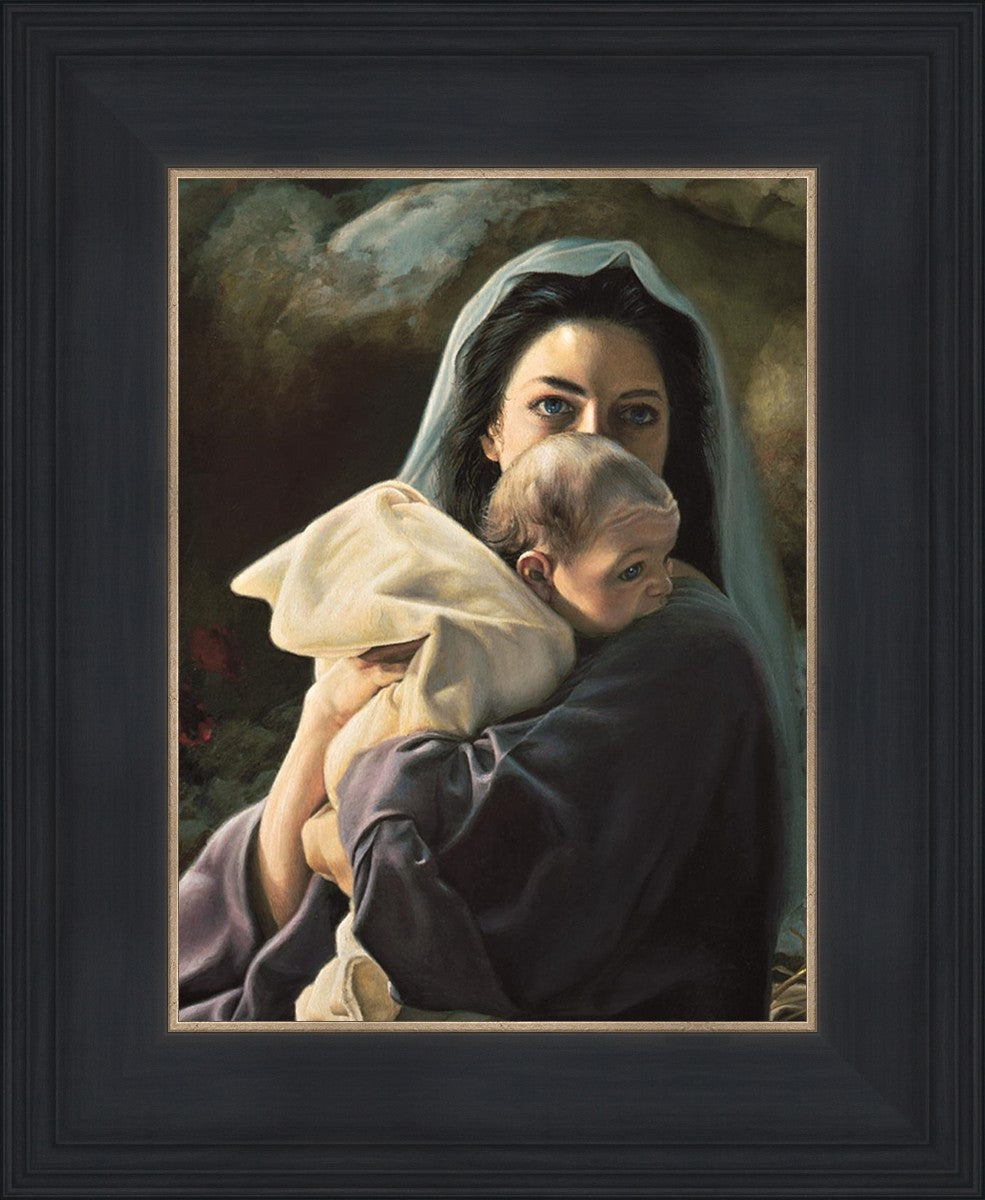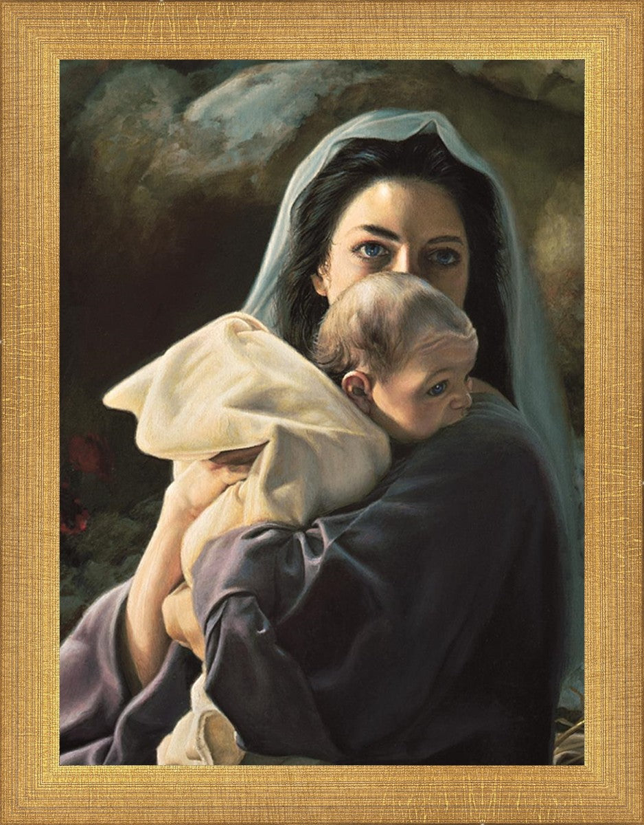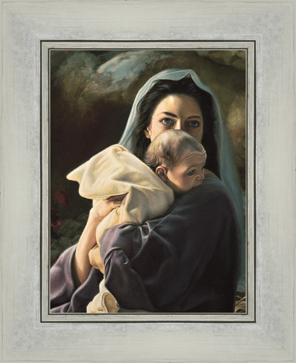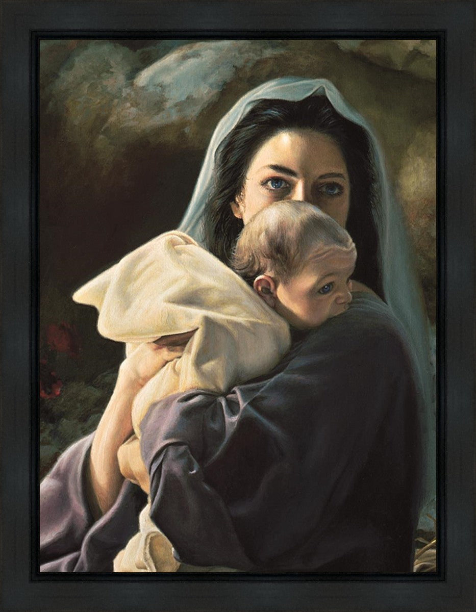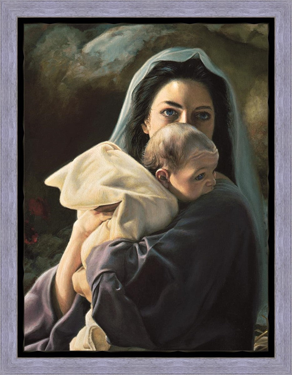Be It Unto Me is a painting by Liz Lemon Swindle. This painting depicts Mary holding the baby Jesus in her arms.
