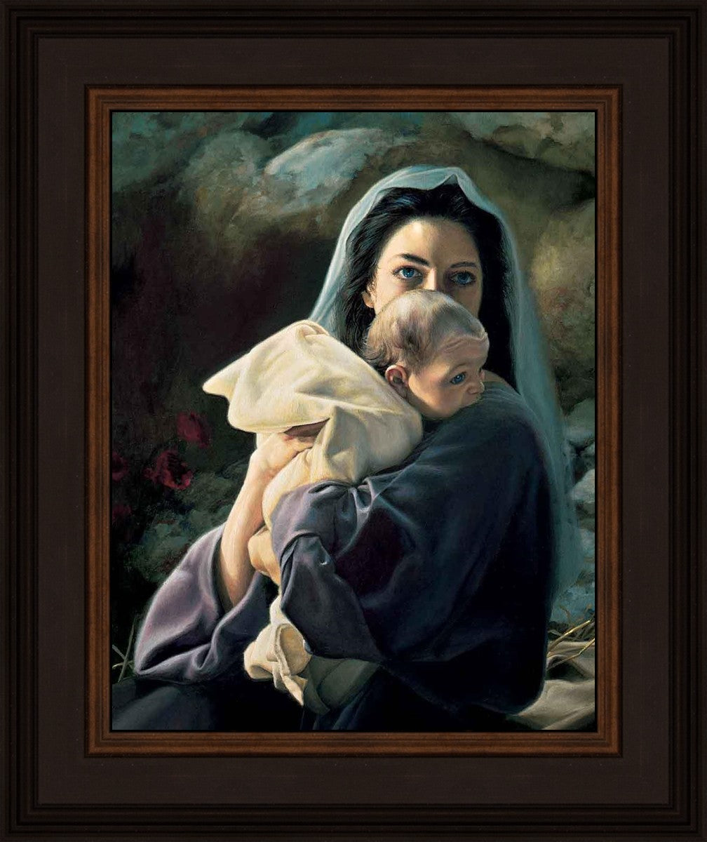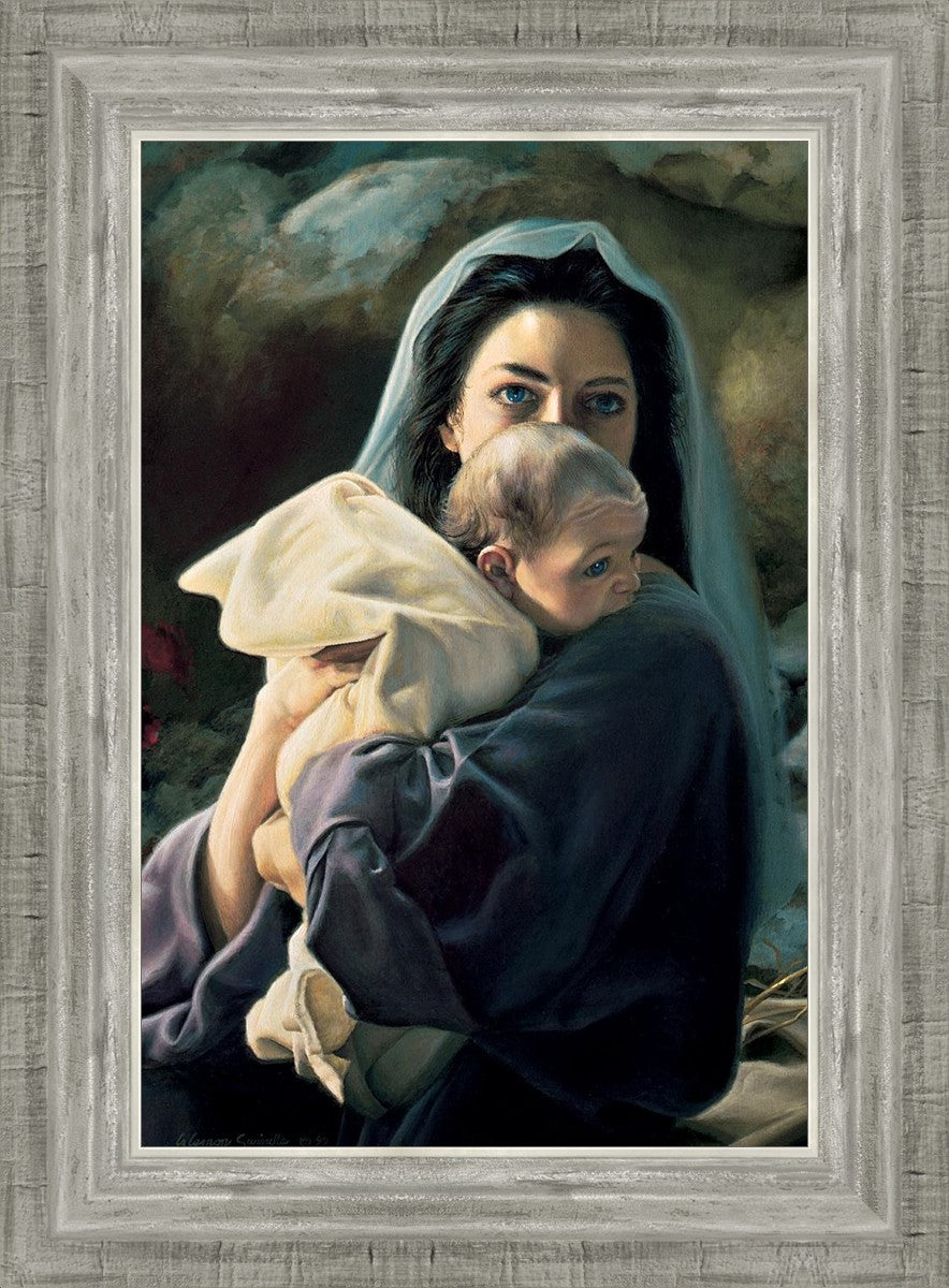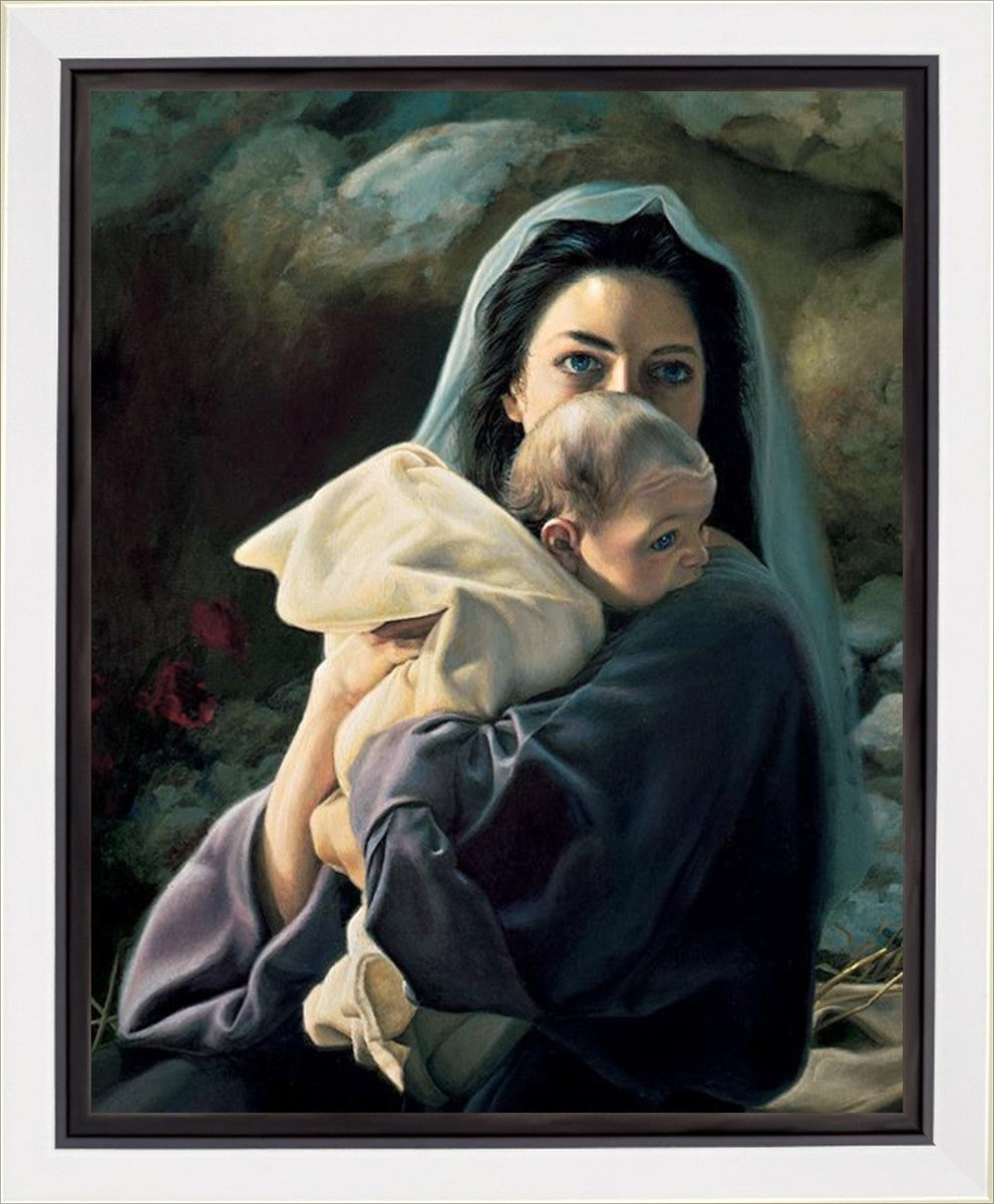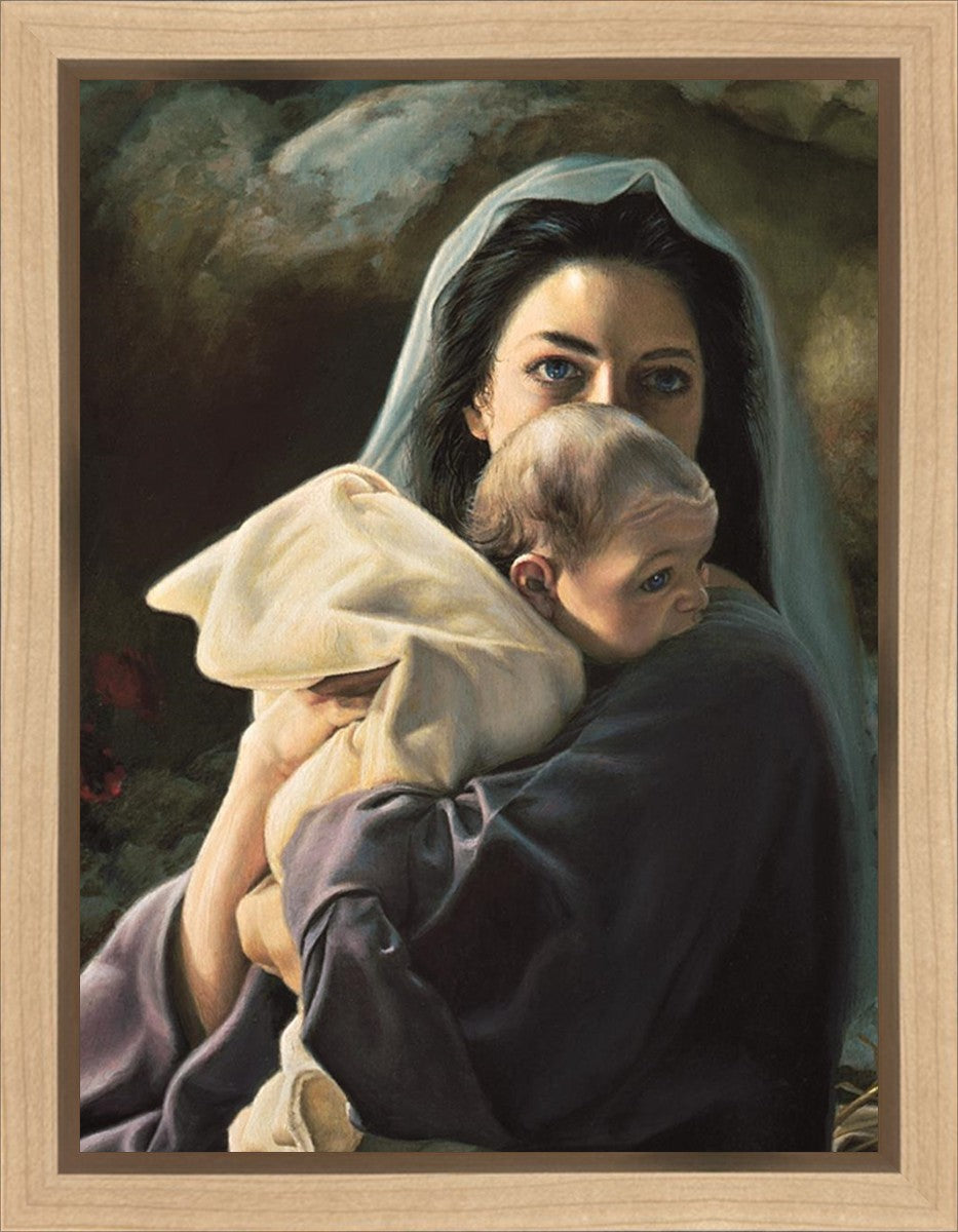 Be It Unto Me is a painting by Liz Lemon Swindle. This painting depicts Mary holding the baby Jesus in her arms.
