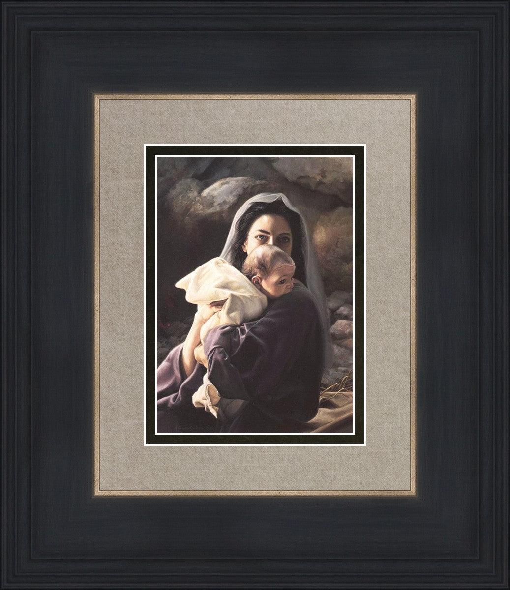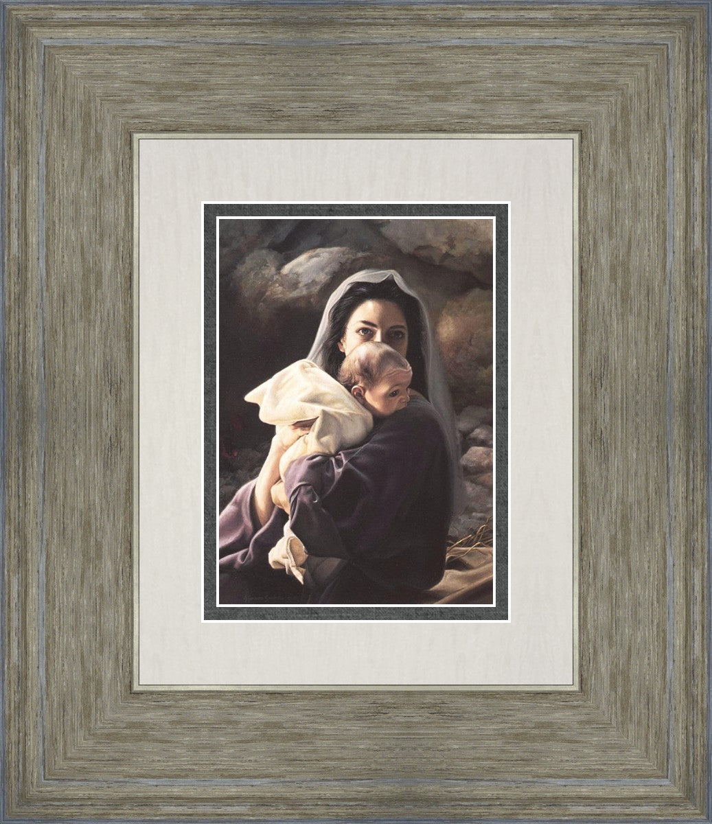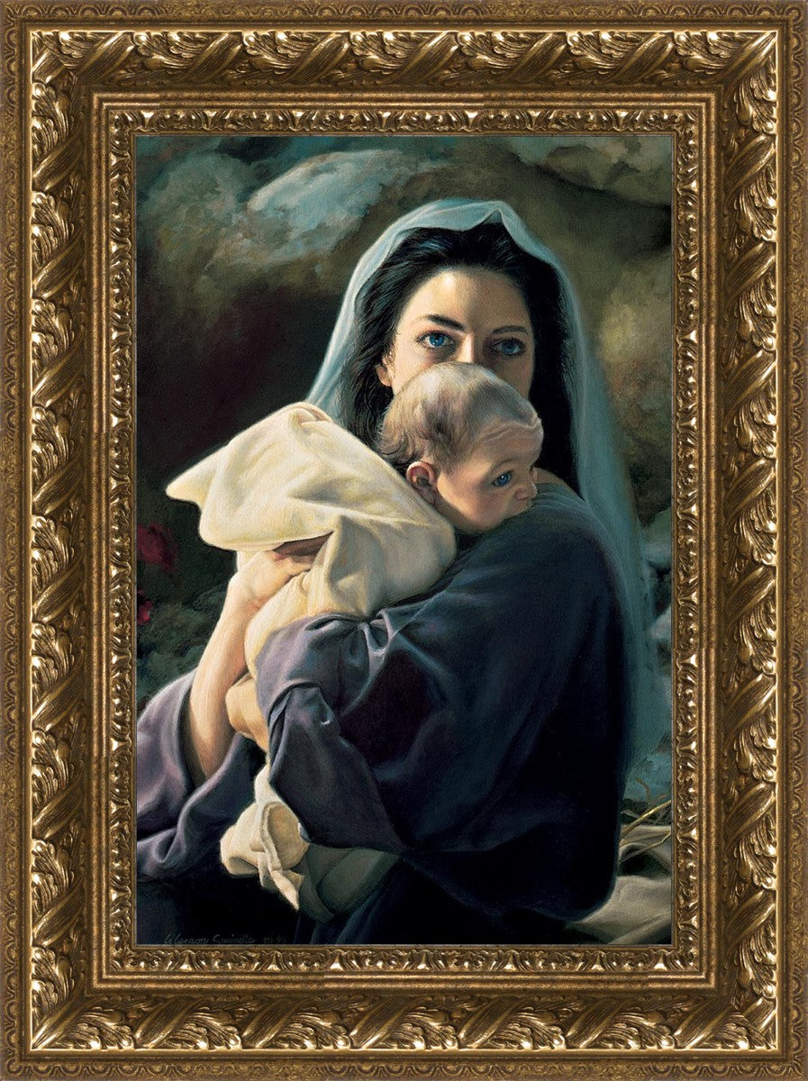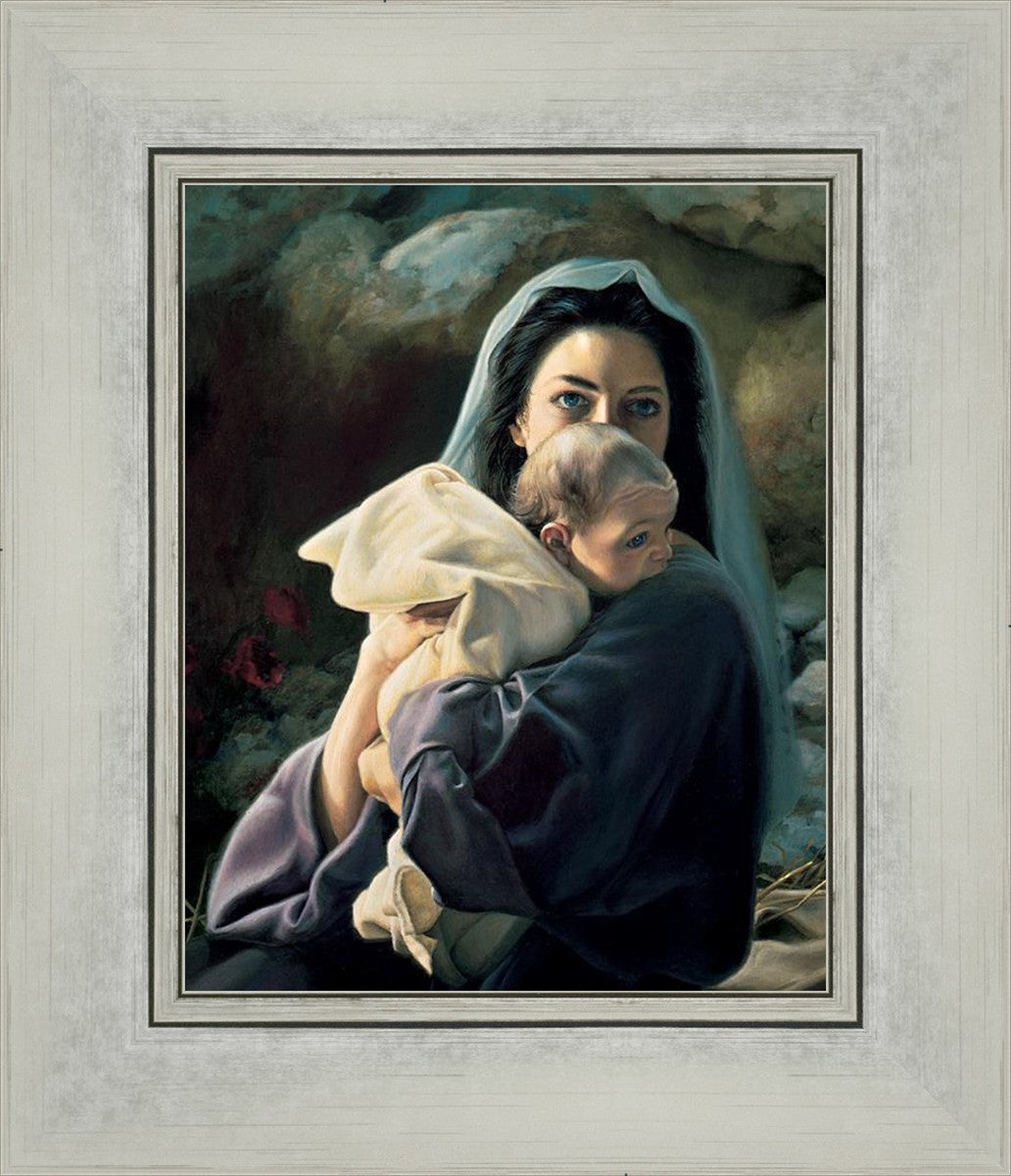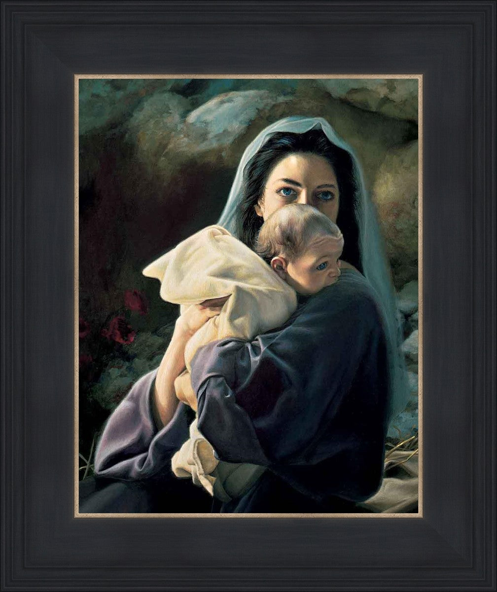 Be It Unto Me is a painting by Liz Lemon Swindle. This painting depicts Mary holding the baby Jesus in her arms.