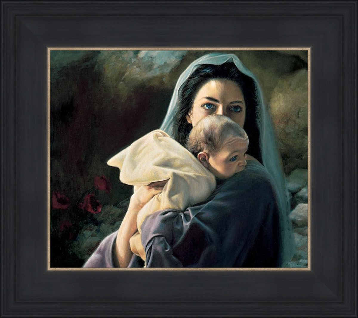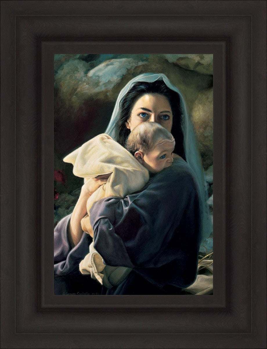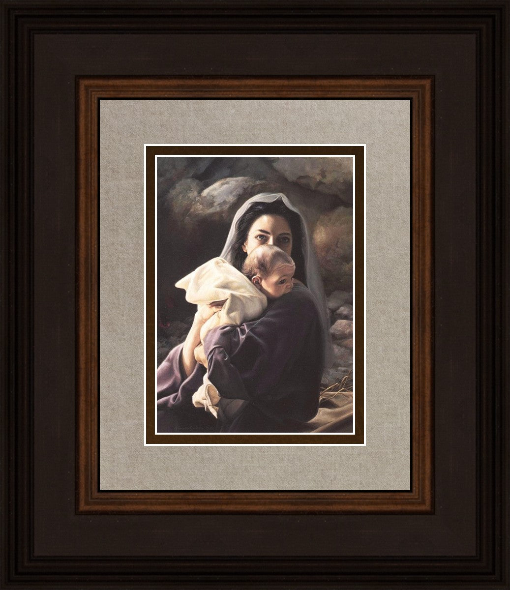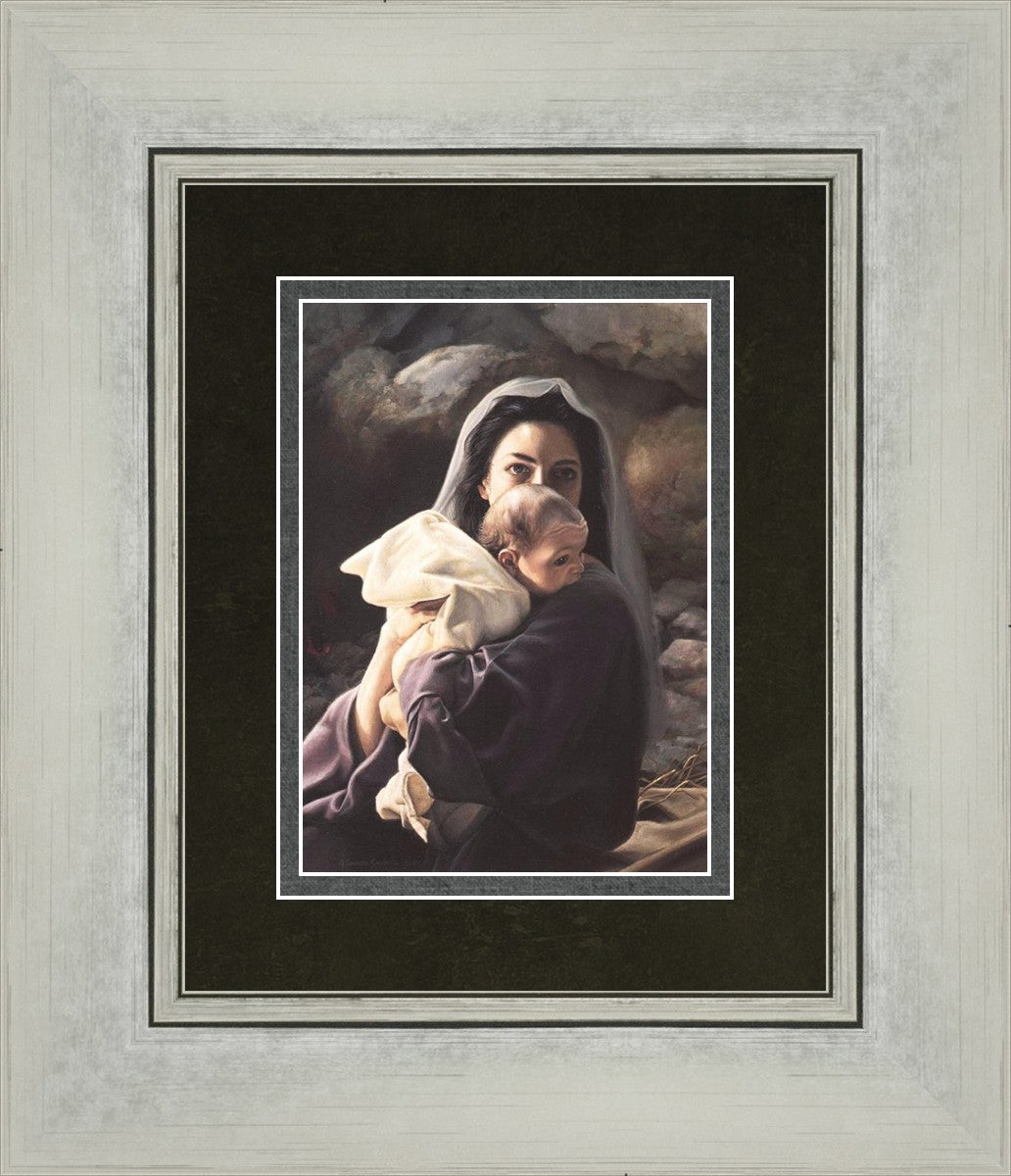 Be It Unto Me is a painting by Liz Lemon Swindle. This painting depicts Mary holding the baby Jesus in her arms.