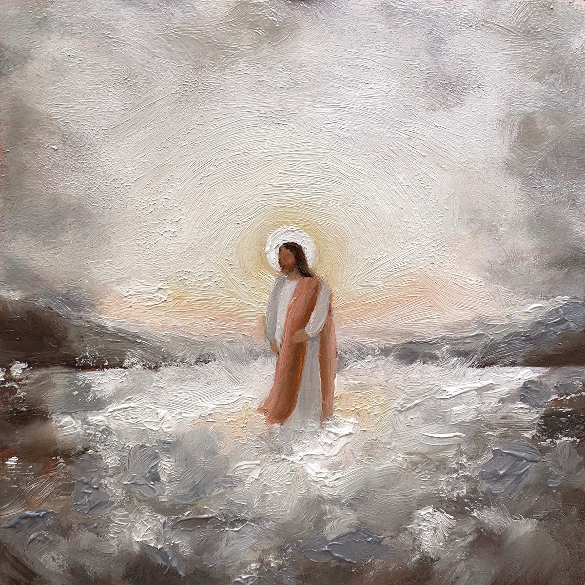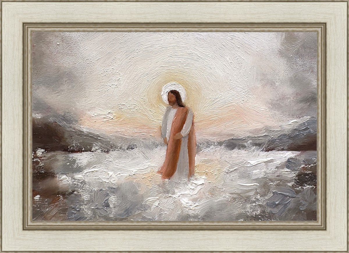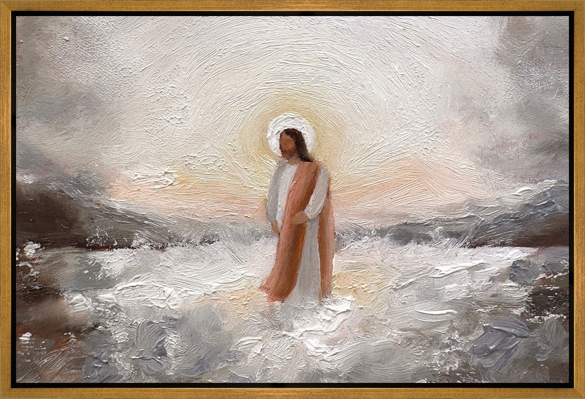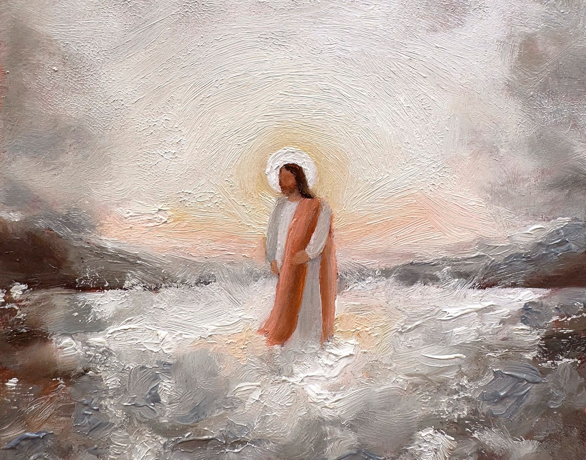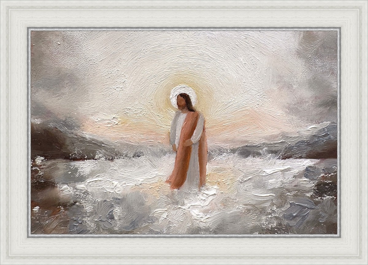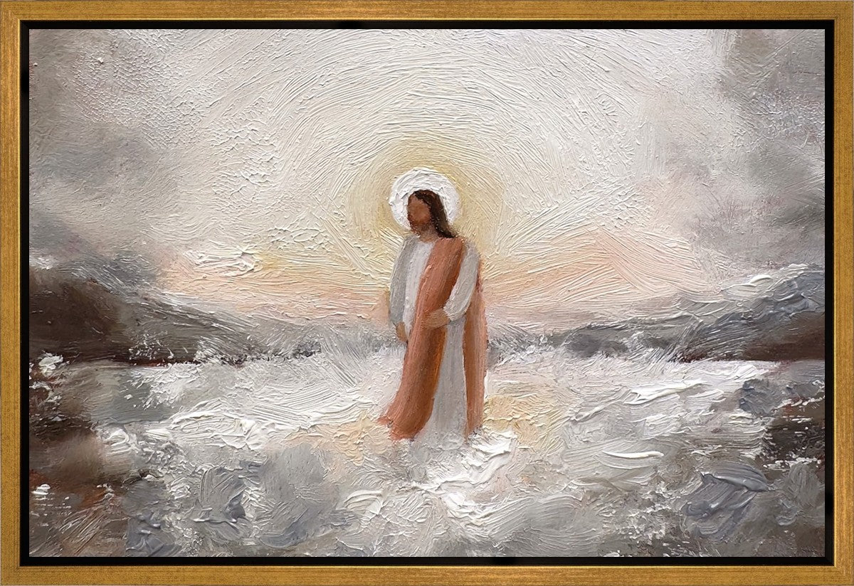 In Mark's version he adds one important detail-Jesus "saw them toiling in rowing They did not know how aware he was of them. And then "about the fourth watch of the night he cometh unto them, walking upon the sea...... [and] they...saw him and immediately he saith unto them, Be of good cheer: it is I. And he went up unto them into the ship; and the wind ceased