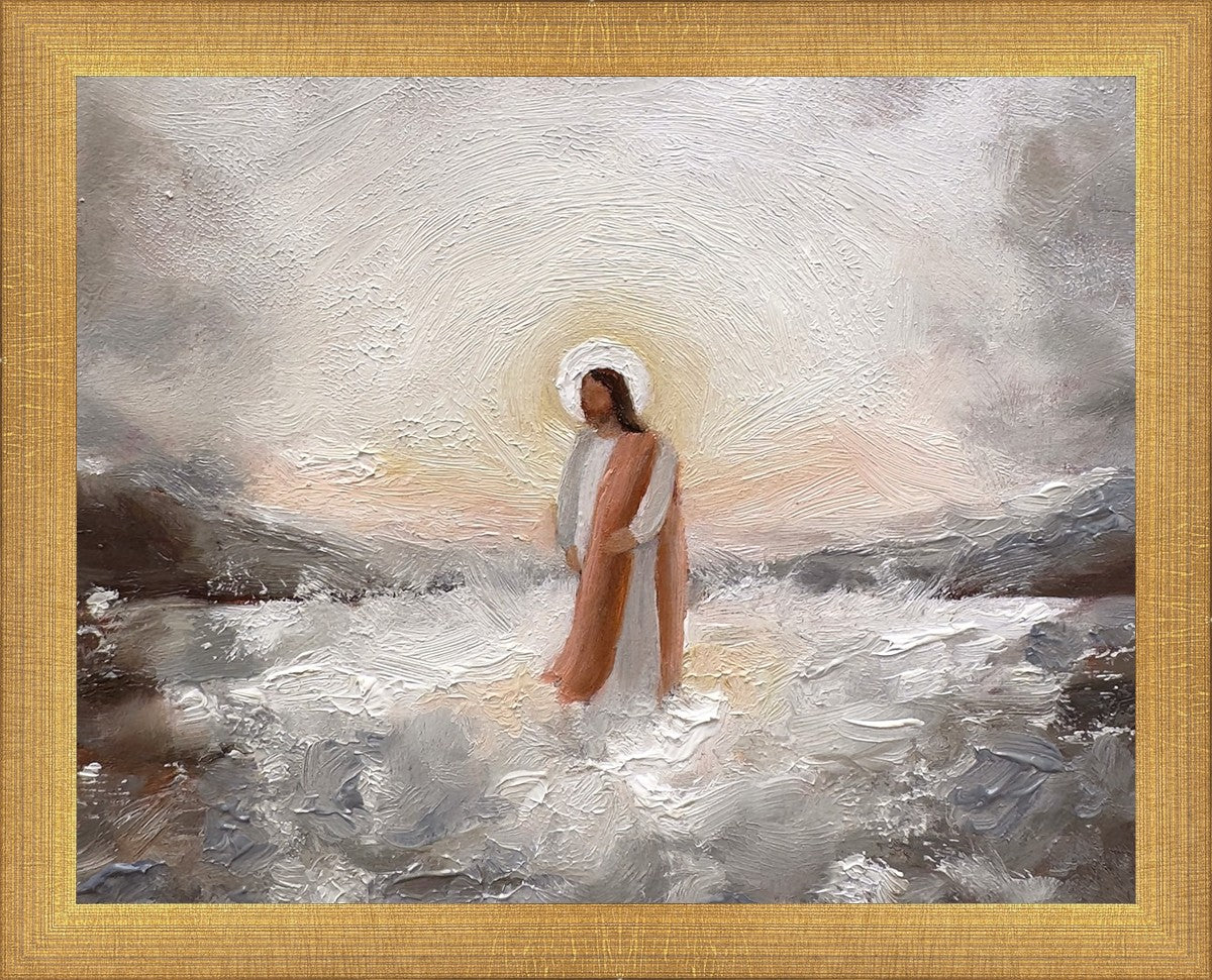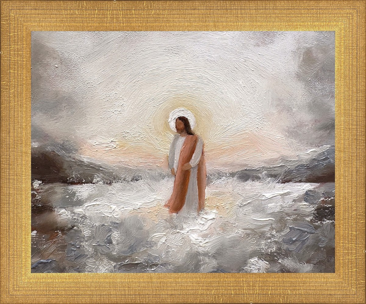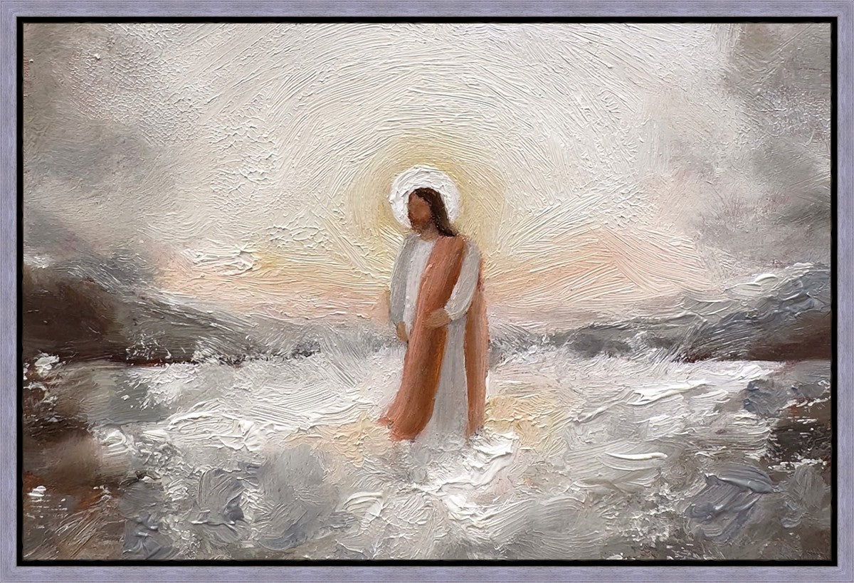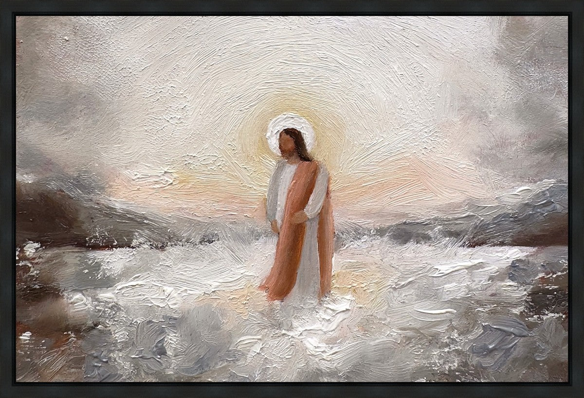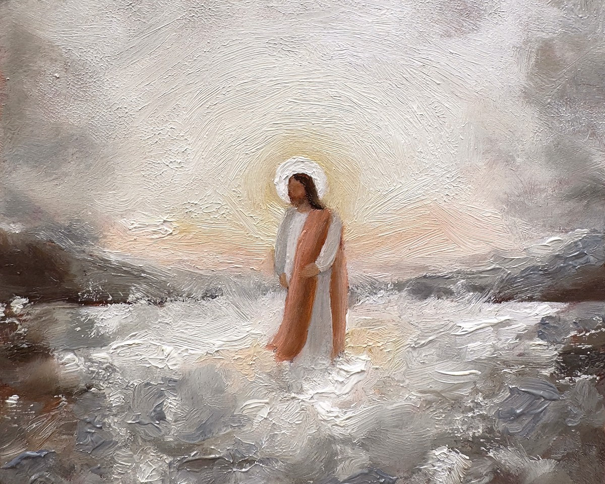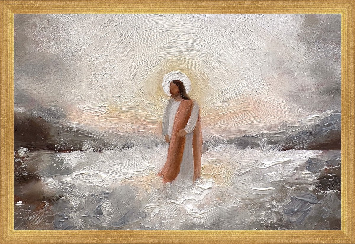 In Mark's version he adds one important detail-Jesus "saw them toiling in rowing They did not know how aware he was of them. And then "about the fourth watch of the night he cometh unto them, walking upon the sea...... [and] they...saw him and immediately he saith unto them, Be of good cheer: it is I. And he went up unto them into the ship; and the wind ceased