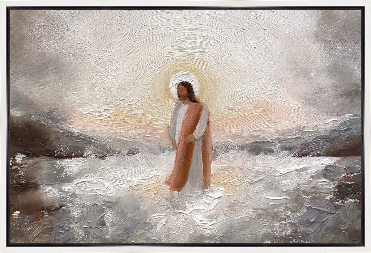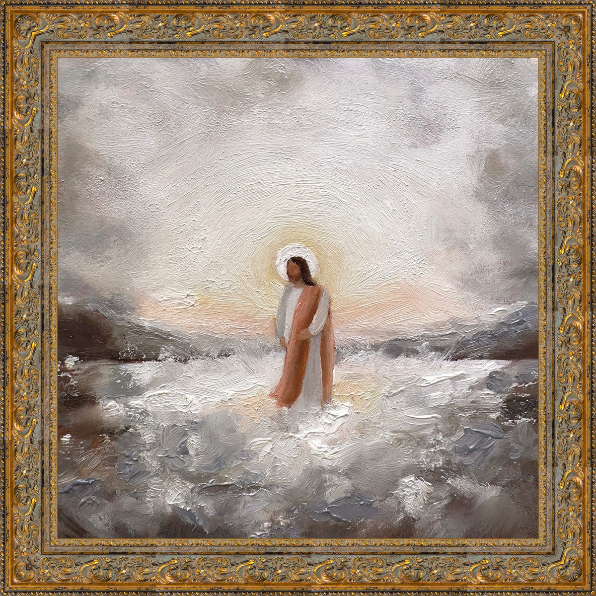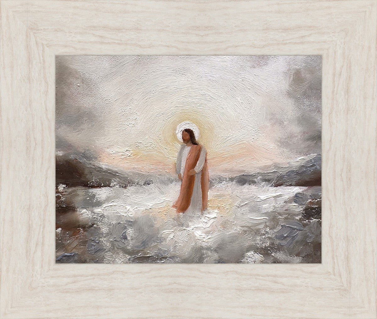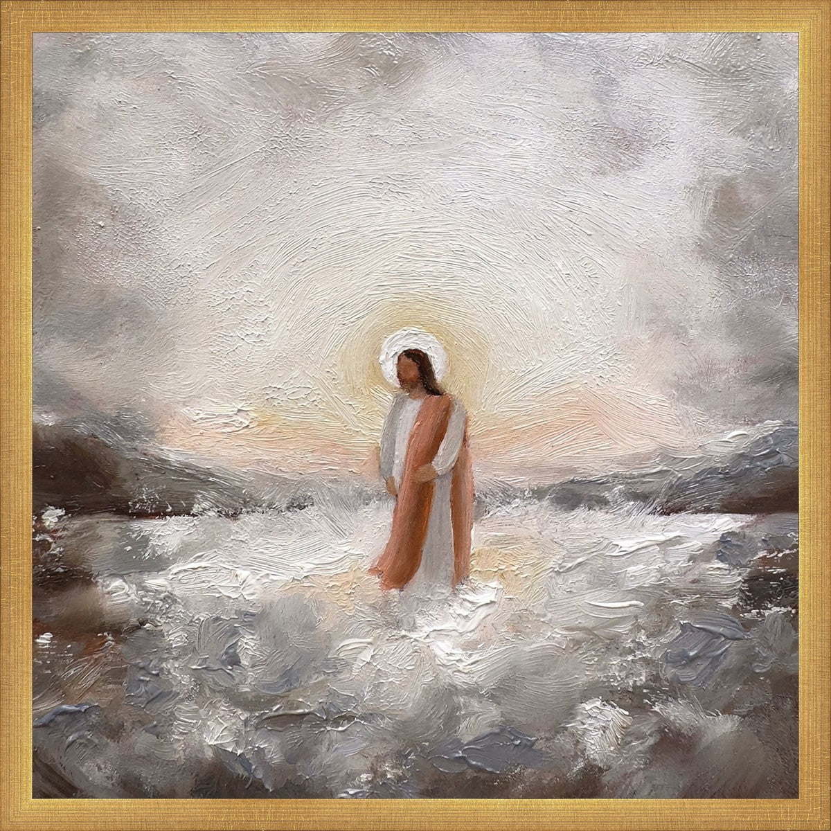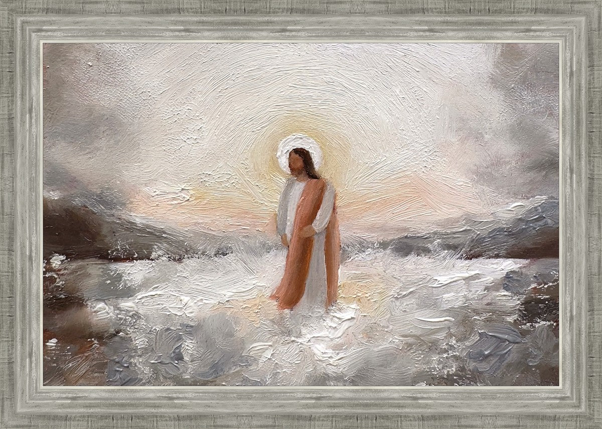 In Mark's version he adds one important detail-Jesus "saw them toiling in rowing They did not know how aware he was of them. And then "about the fourth watch of the night he cometh unto them, walking upon the sea...... [and] they...saw him and immediately he saith unto them, Be of good cheer: it is I. And he went up unto them into the ship; and the wind ceased