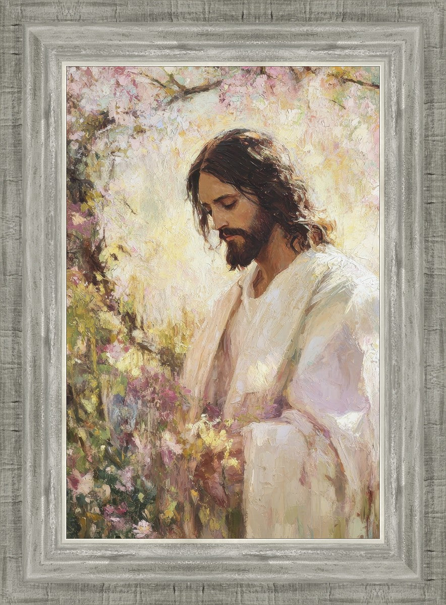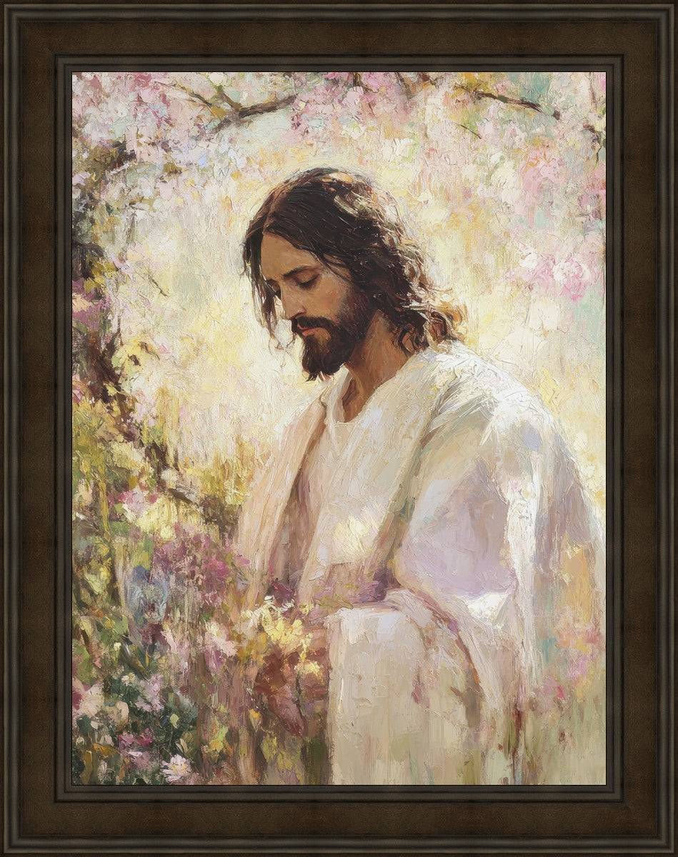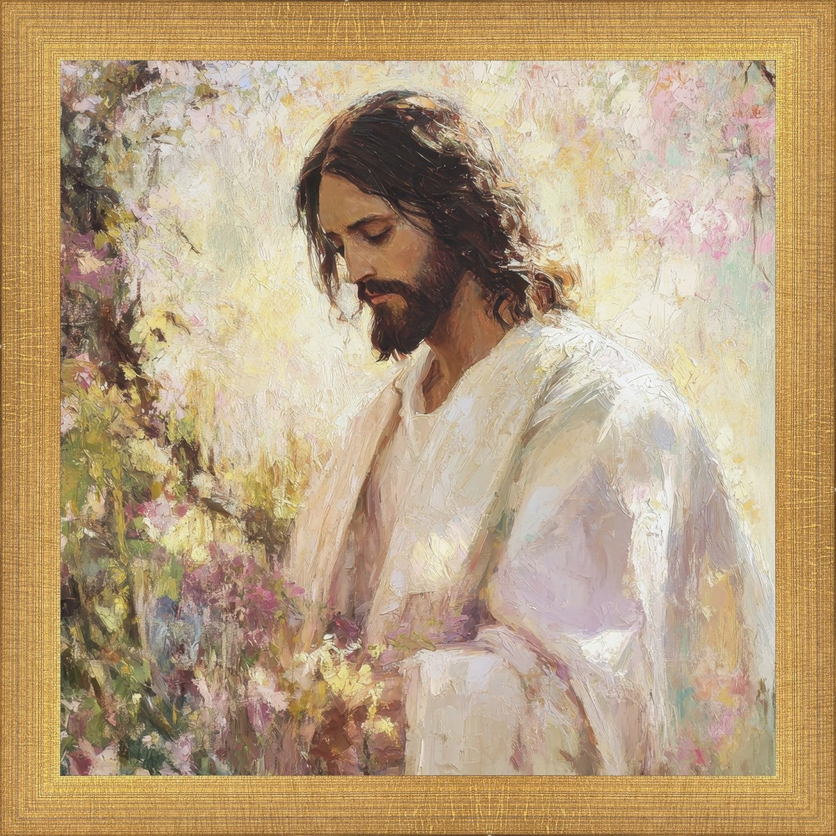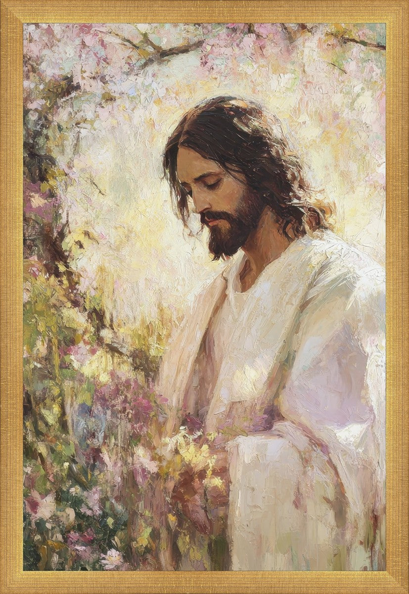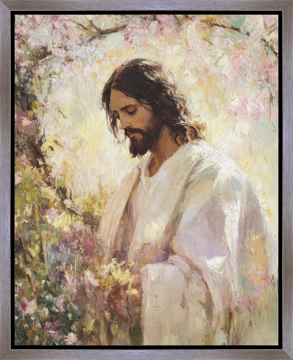 We wanted to capture the simple yet profound truth that we are all divinely created with love and purpose. Jesus stands among delicate flower blossoms, a reminder that just as God carefully forms each petal. He has created each of us with the same beauty and intention. This piece is a quiet nod to His infinite care—not just for the world around us, but for every soul.
