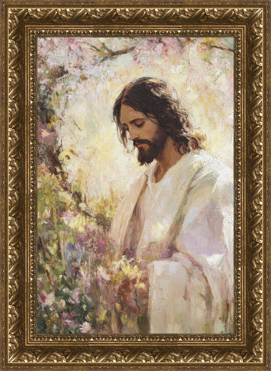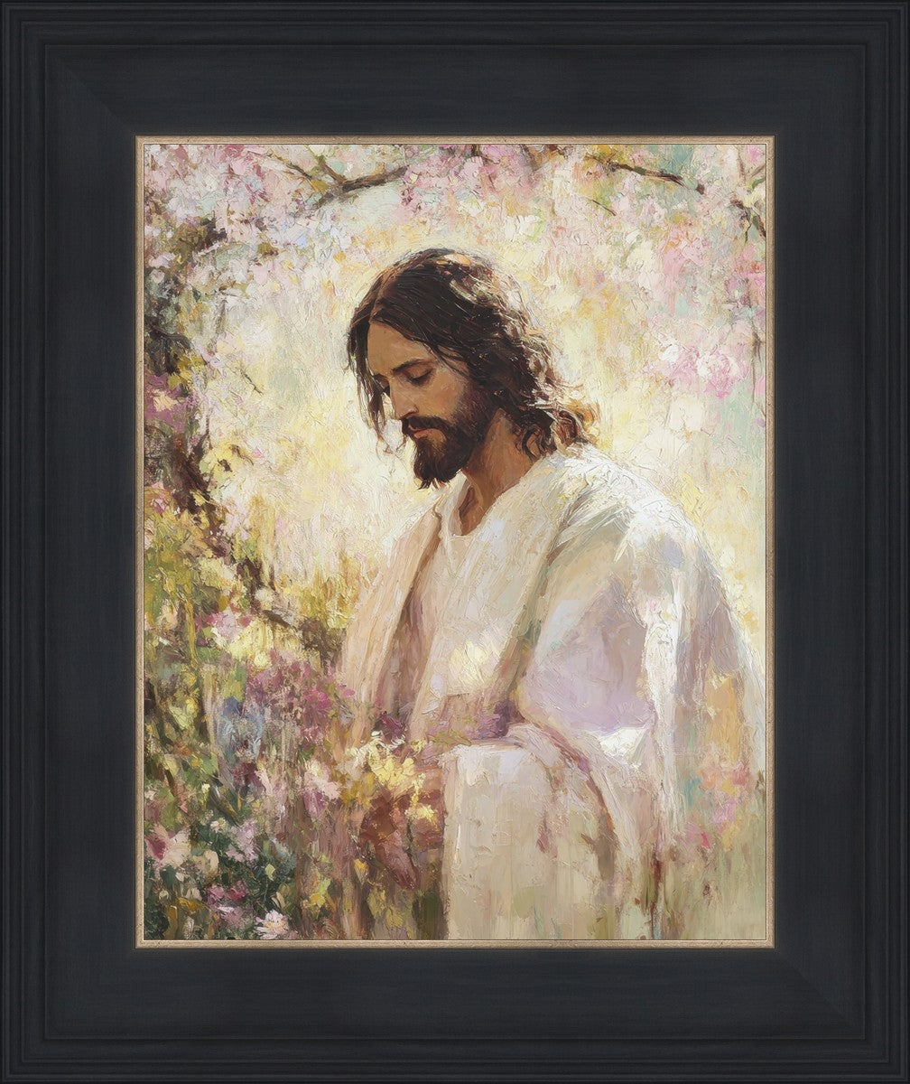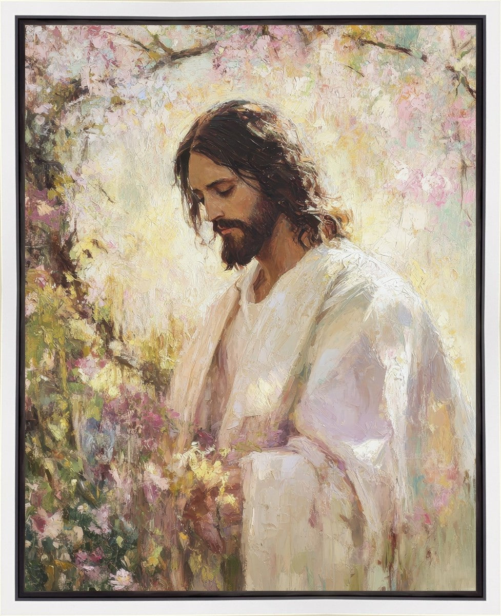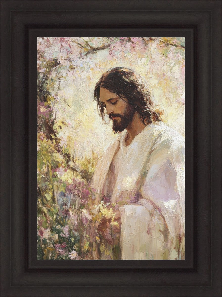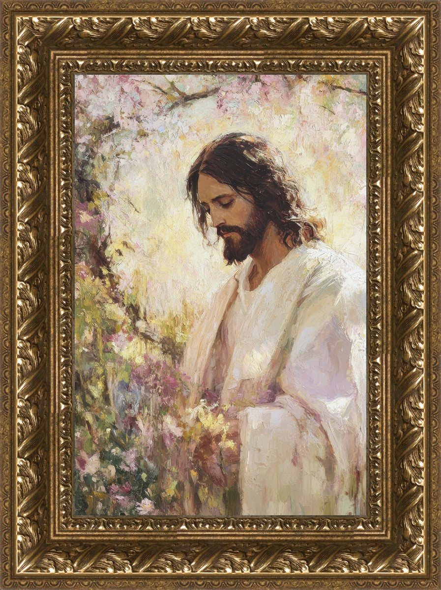 We wanted to capture the simple yet profound truth that we are all divinely created with love and purpose. Jesus stands among delicate flower blossoms, a reminder that just as God carefully forms each petal. He has created each of us with the same beauty and intention. This piece is a quiet nod to His infinite care—not just for the world around us, but for every soul.