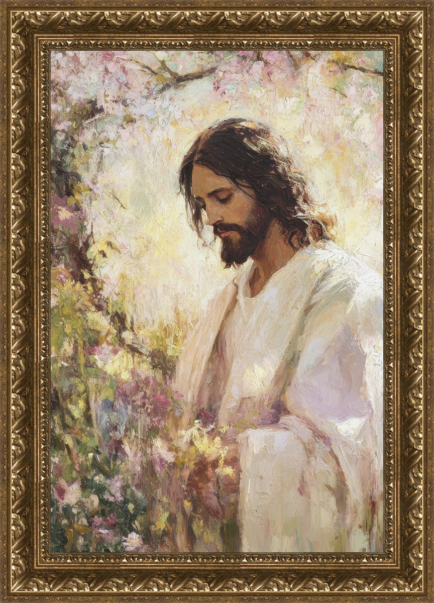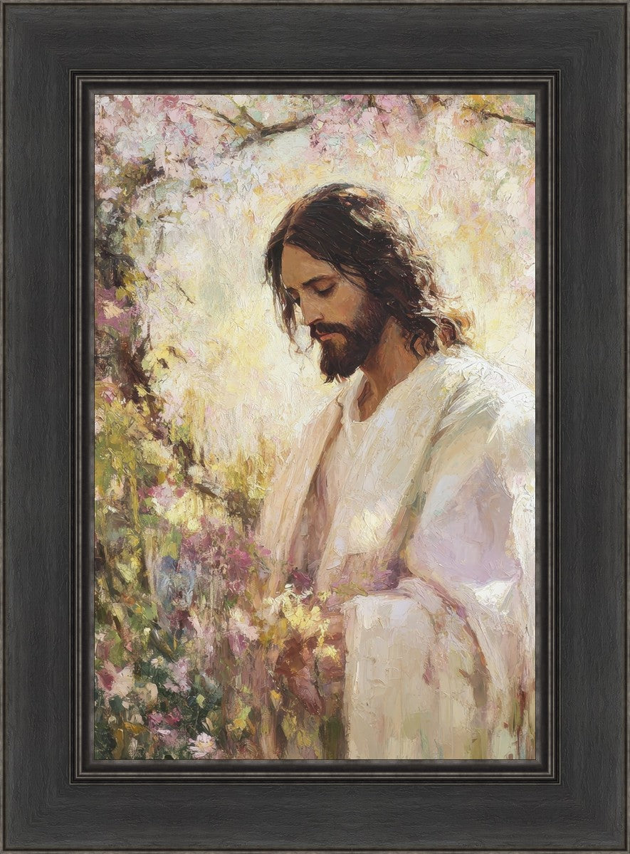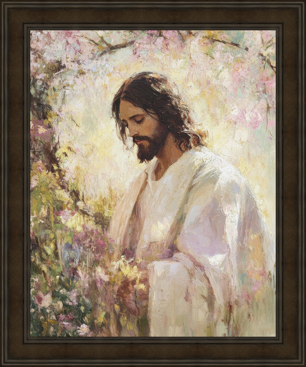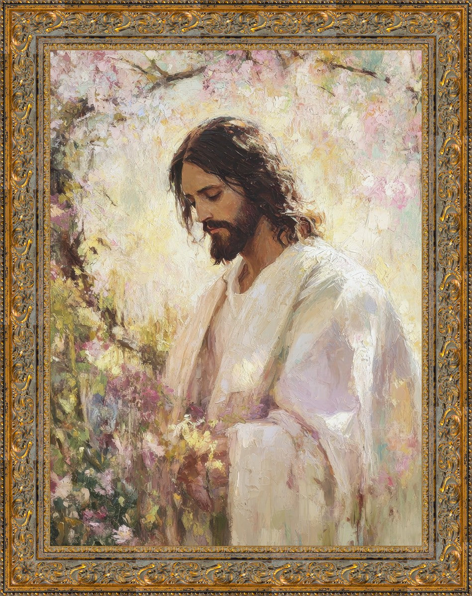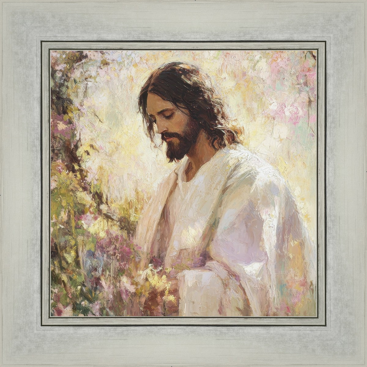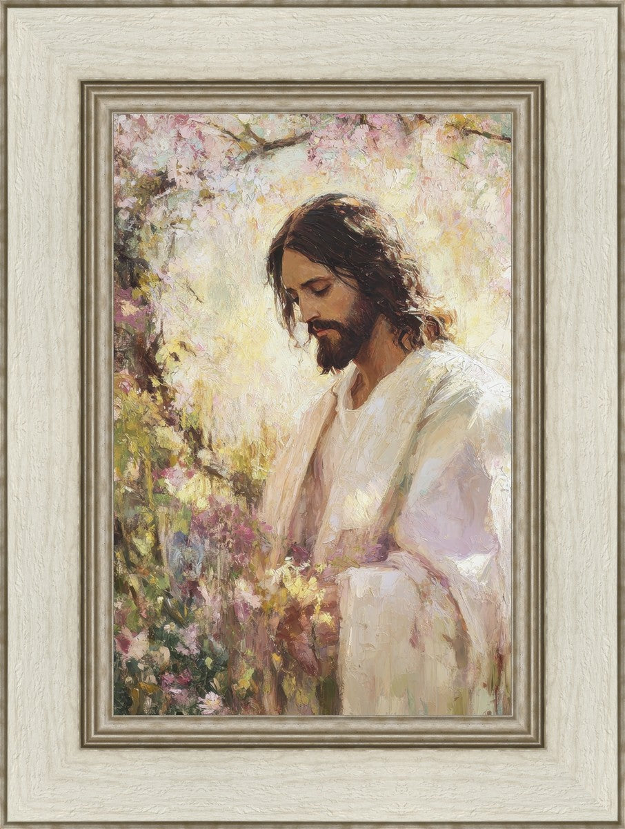 We wanted to capture the simple yet profound truth that we are all divinely created with love and purpose. Jesus stands among delicate flower blossoms, a reminder that just as God carefully forms each petal. He has created each of us with the same beauty and intention. This piece is a quiet nod to His infinite care—not just for the world around us, but for every soul.