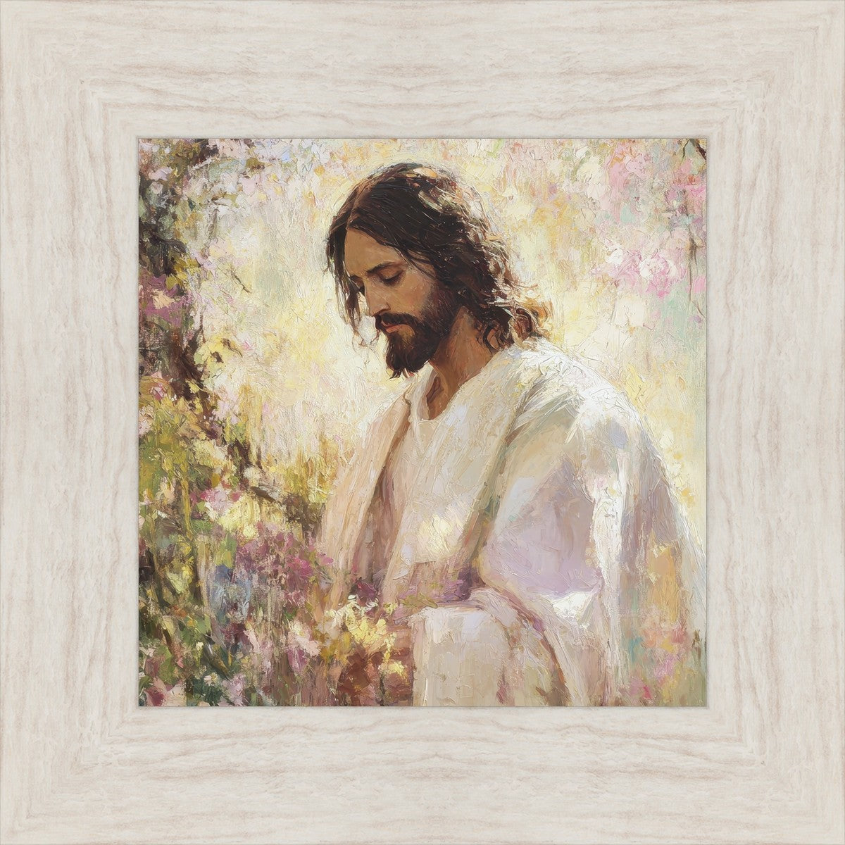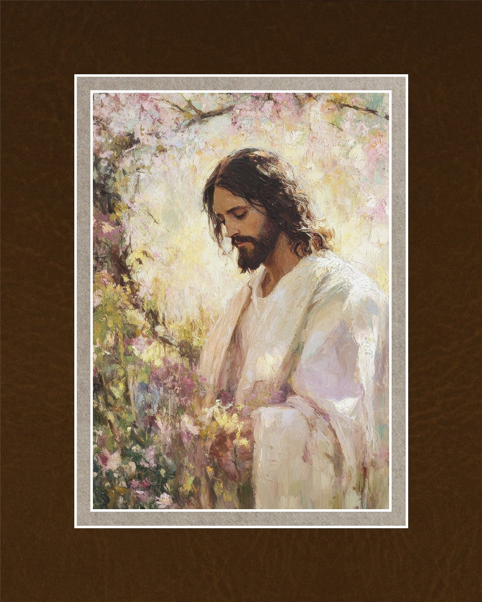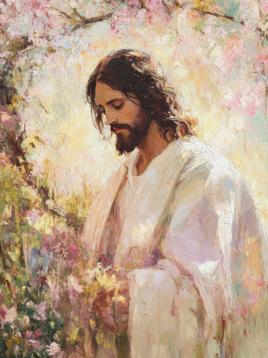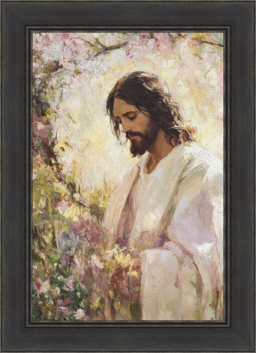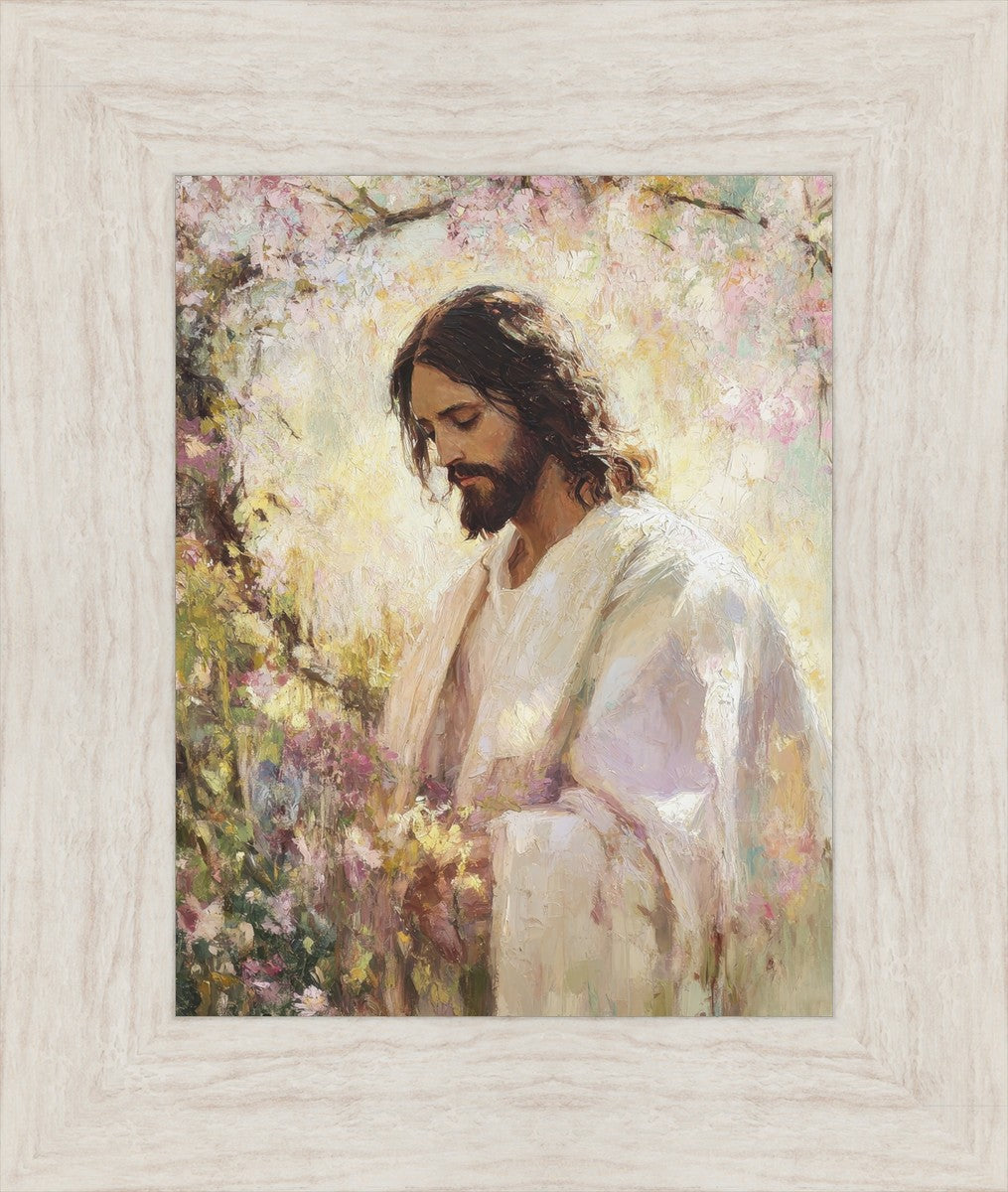 We wanted to capture the simple yet profound truth that we are all divinely created with love and purpose. Jesus stands among delicate flower blossoms, a reminder that just as God carefully forms each petal. He has created each of us with the same beauty and intention. This piece is a quiet nod to His infinite care—not just for the world around us, but for every soul.