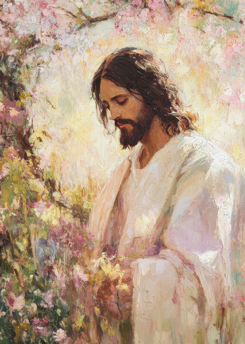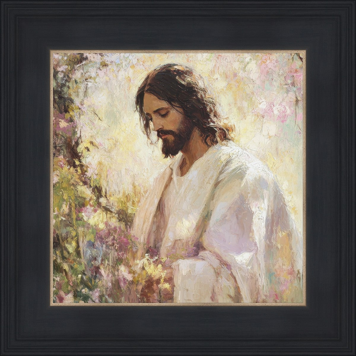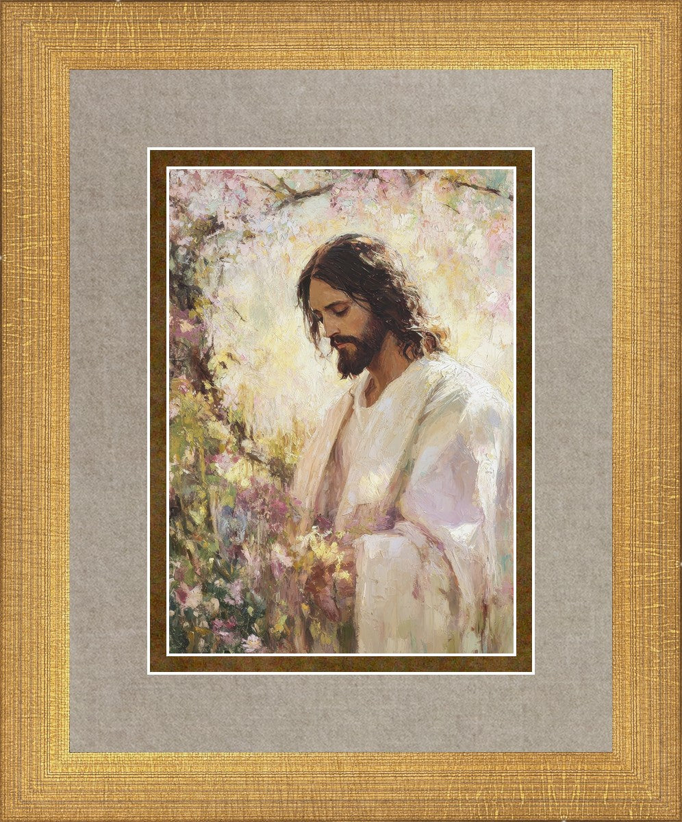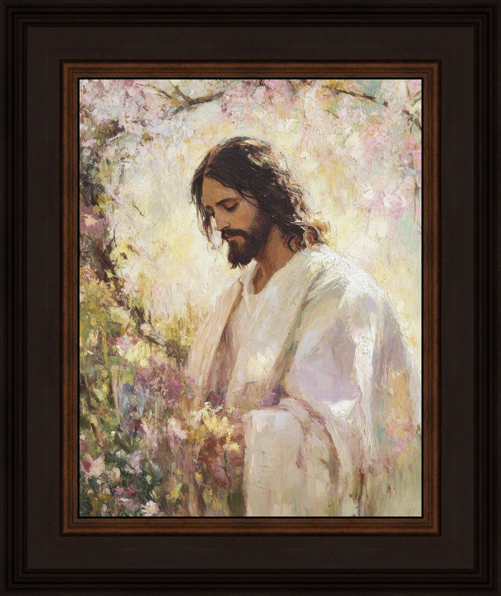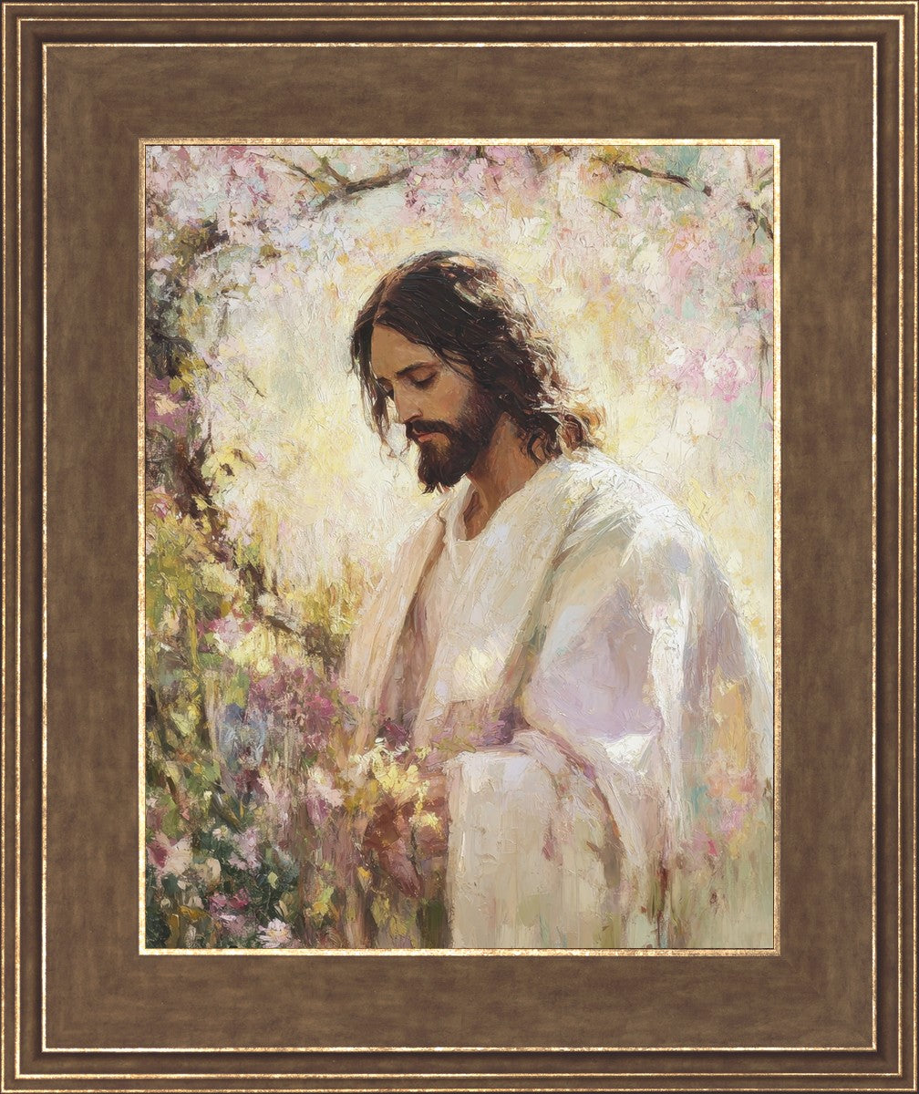 We wanted to capture the simple yet profound truth that we are all divinely created with love and purpose. Jesus stands among delicate flower blossoms, a reminder that just as God carefully forms each petal. He has created each of us with the same beauty and intention. This piece is a quiet nod to His infinite care—not just for the world around us, but for every soul.