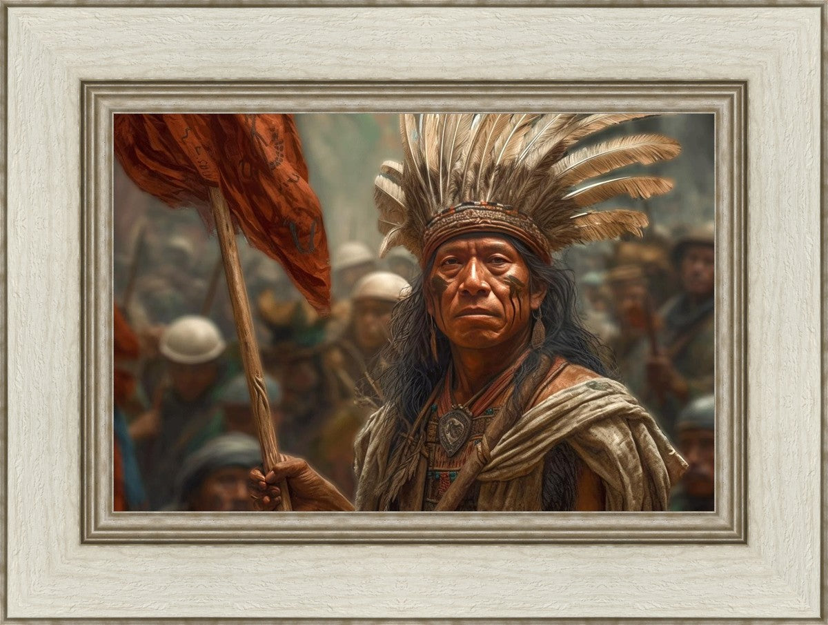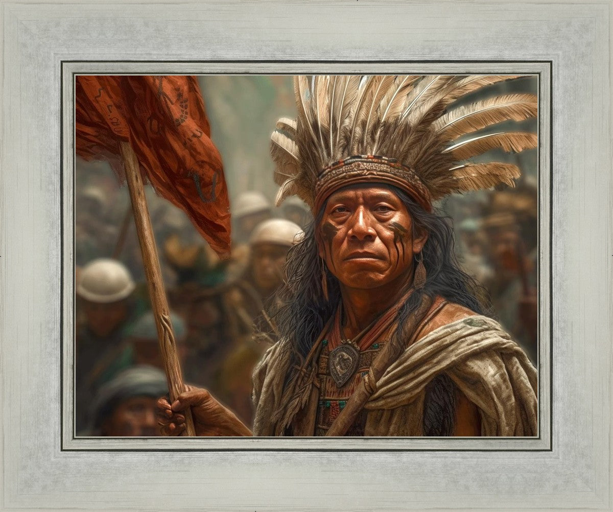 Captain Moroni has always been a hero of mine. He was a patriot and a man of great faith. Despite his great power and influence he only sought to secure freedom and security for his people to worship God and support their families in peace. Here I wanted to portray his confidence and steadiness, along with the Mesoamerican influence that I think is sometimes forgotten when we portray Book of Mormon scenes.