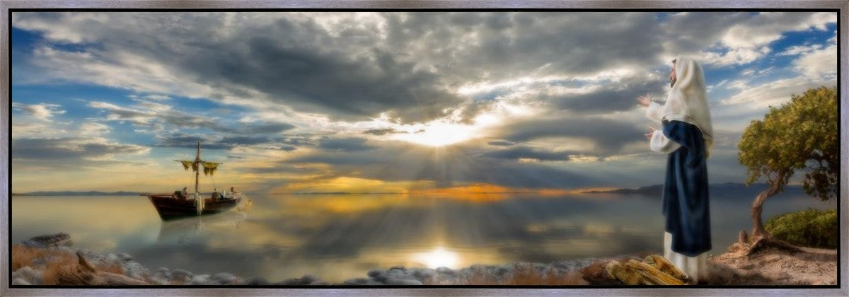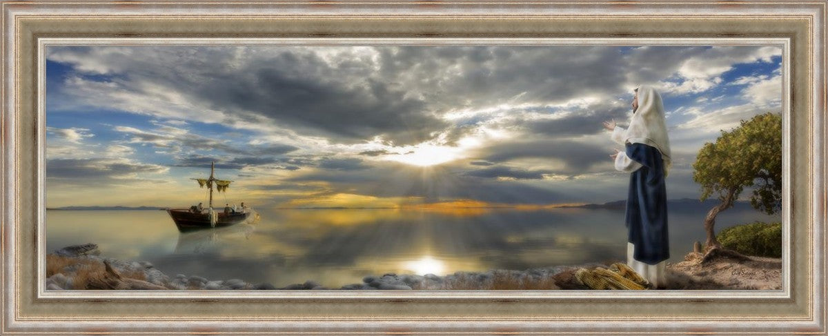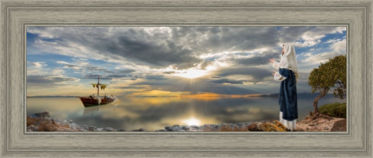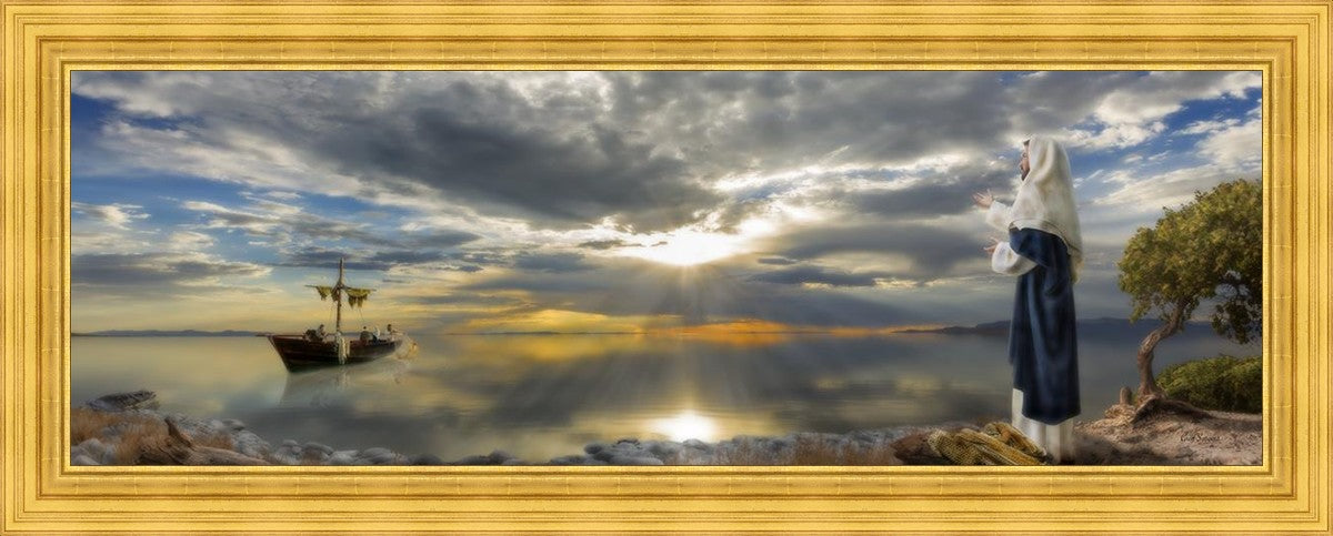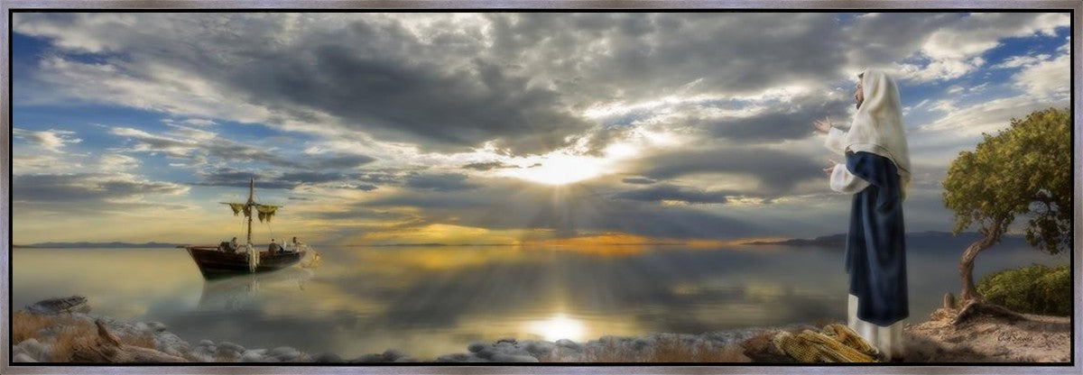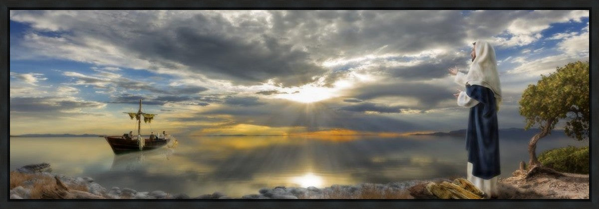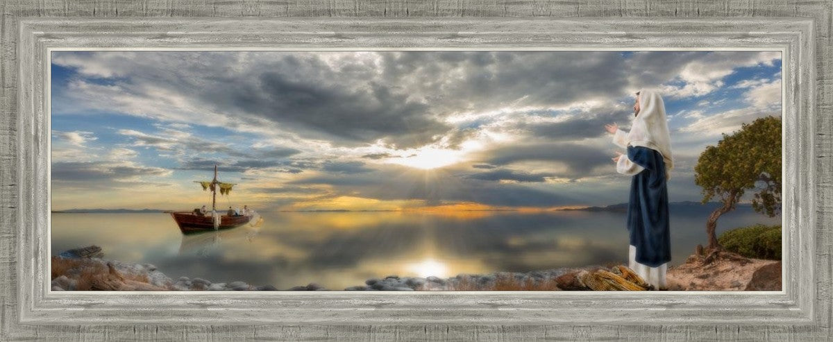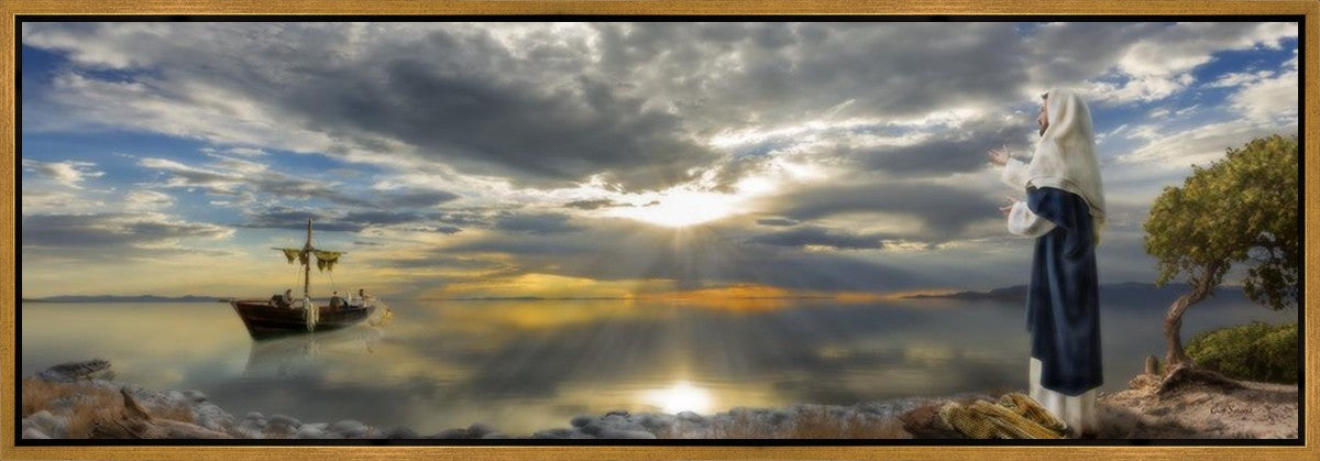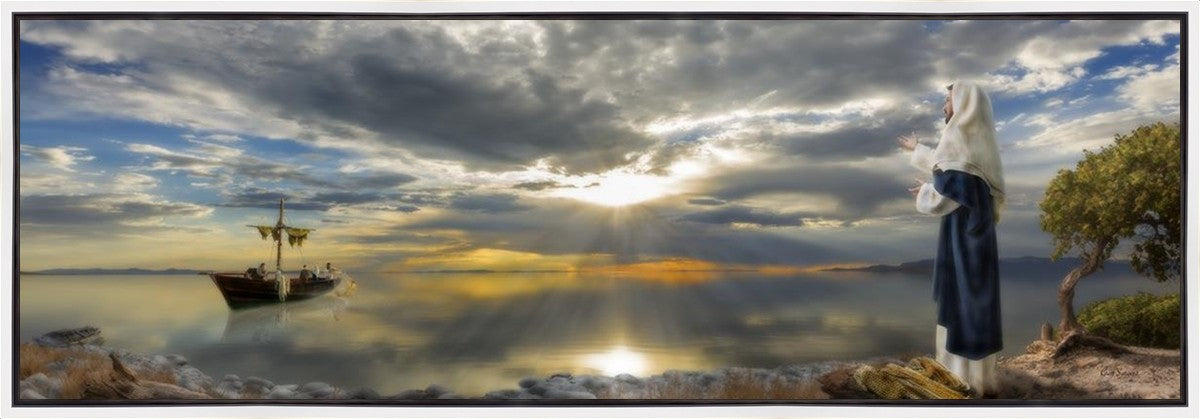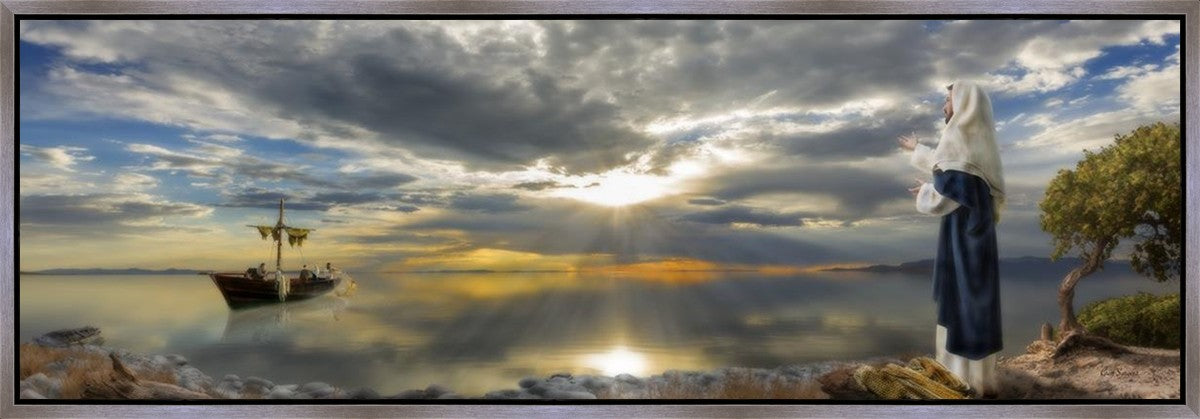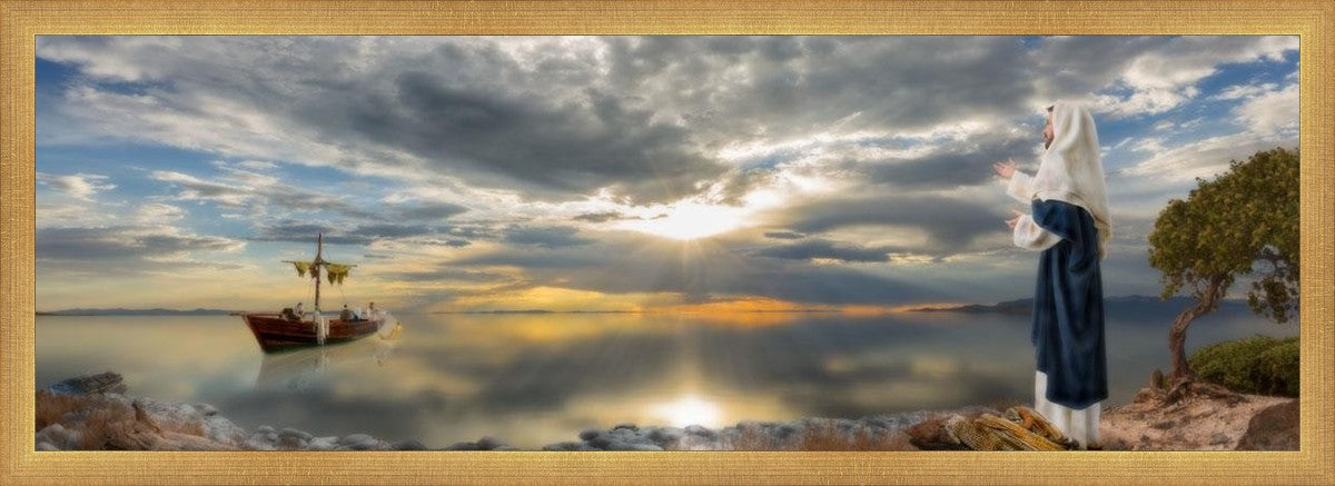 Then as the morning sun broke through the clouds they saw a figure on the distant shore and heard the voice suggesting they should cast their nets to the other side of the boat.****