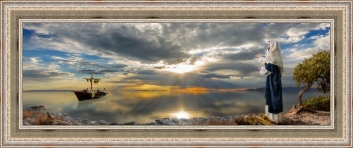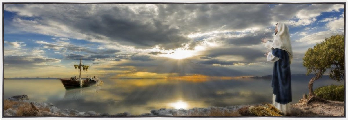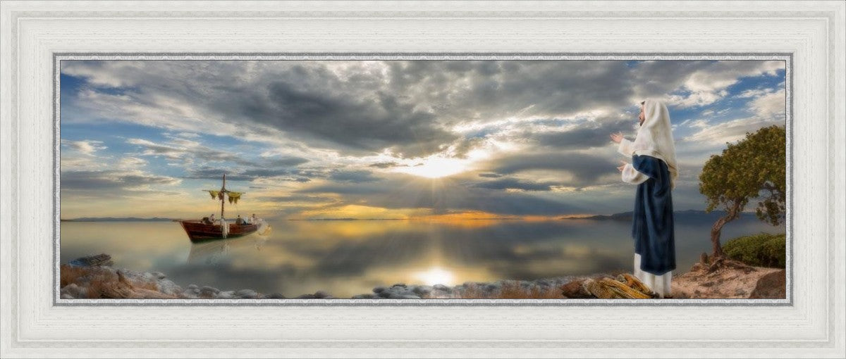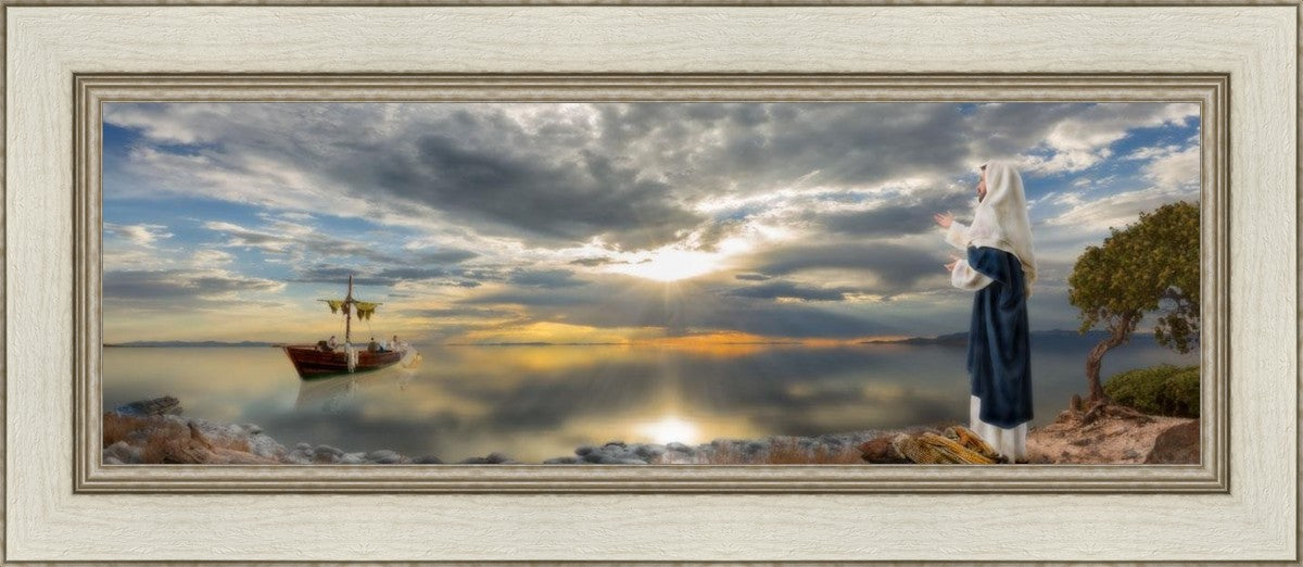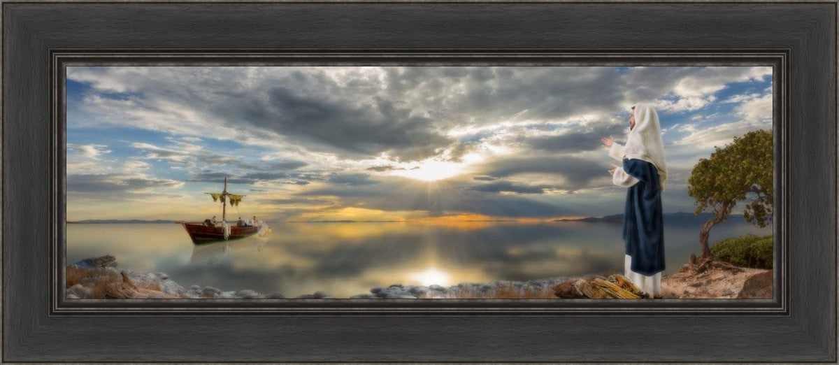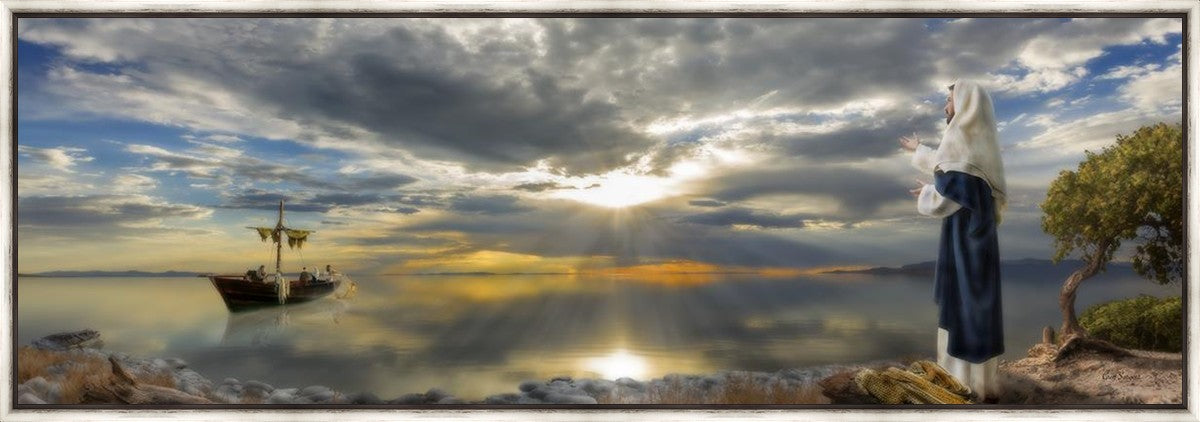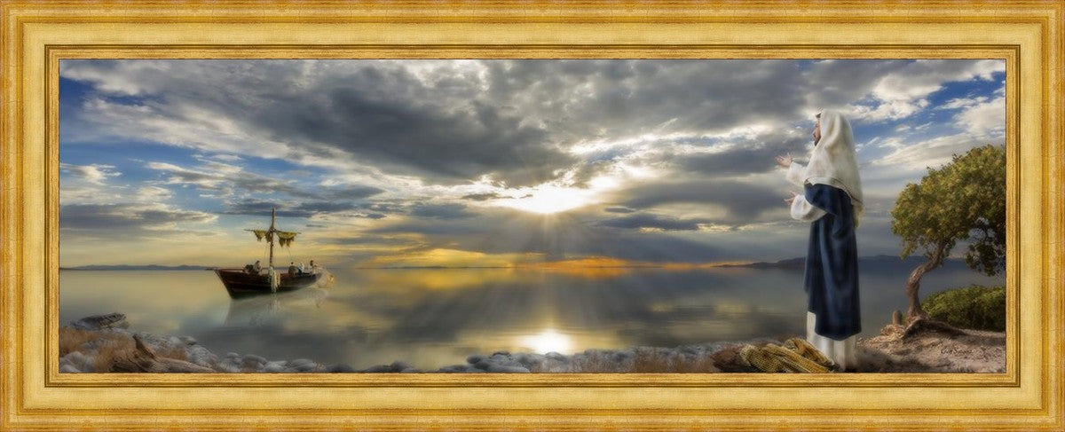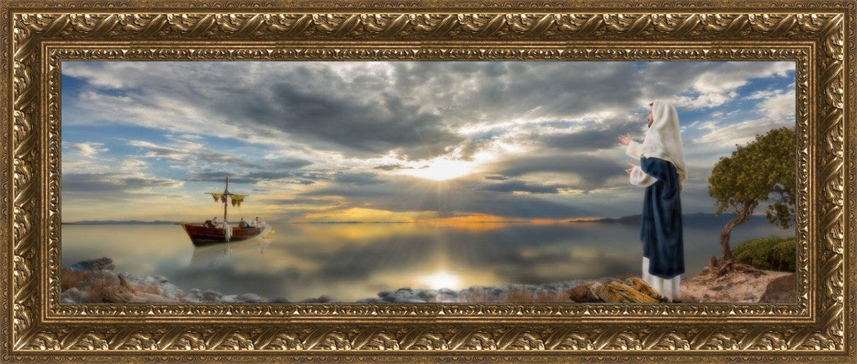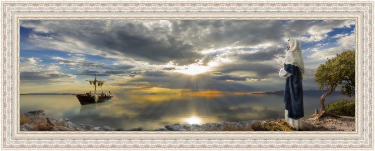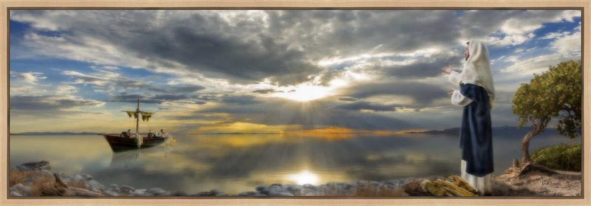 Then as the morning sun broke through the clouds they saw a figure on the distant shore and heard the voice suggesting they should cast their nets to the other side of the boat.****