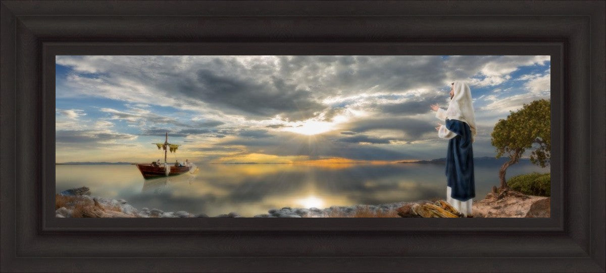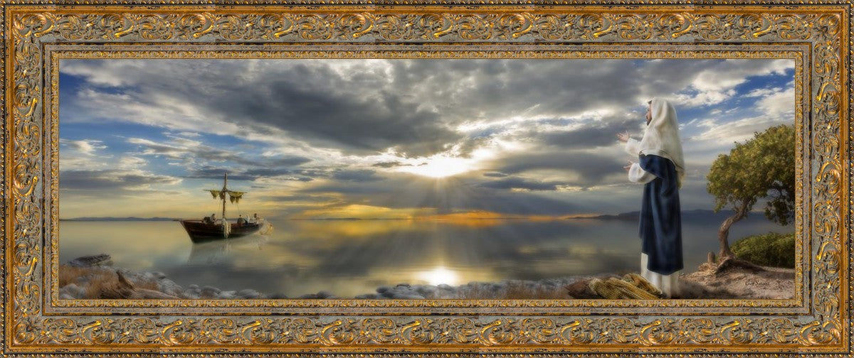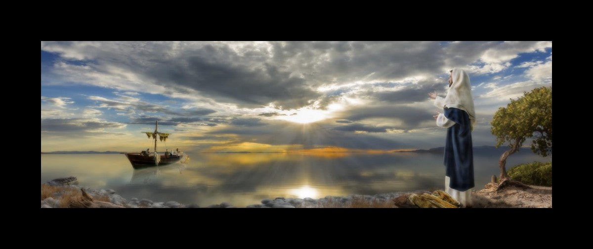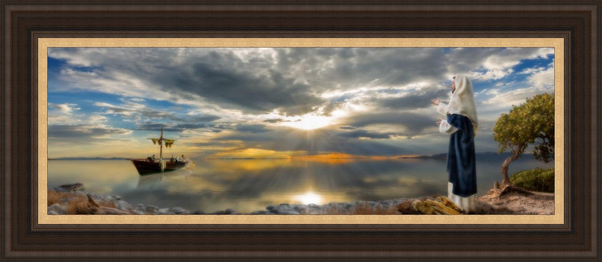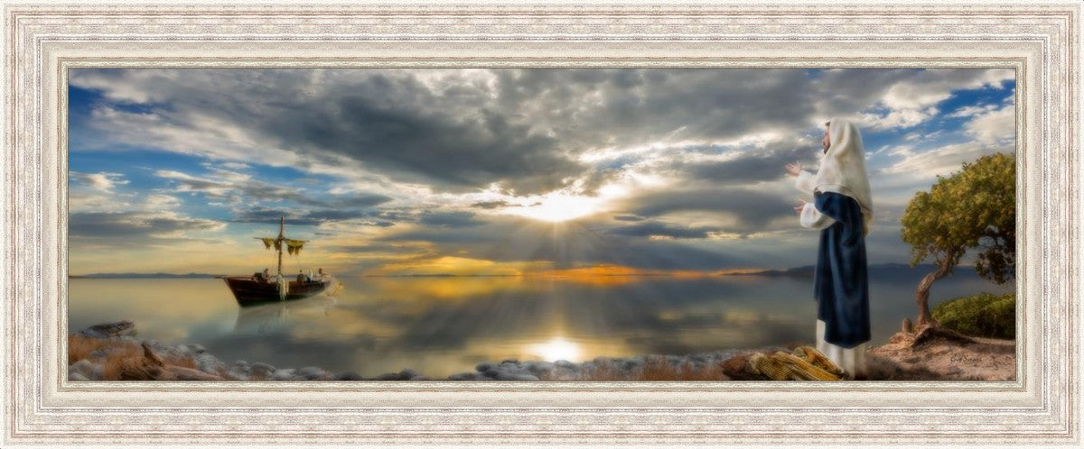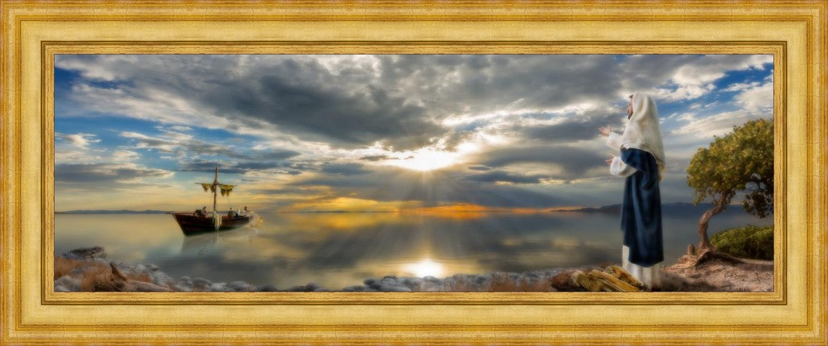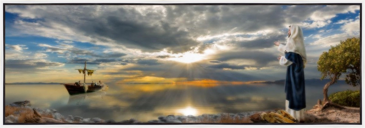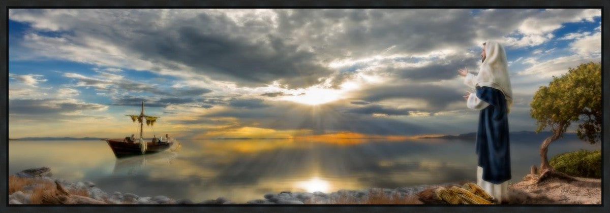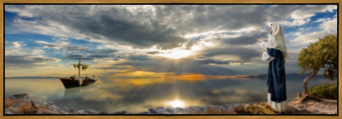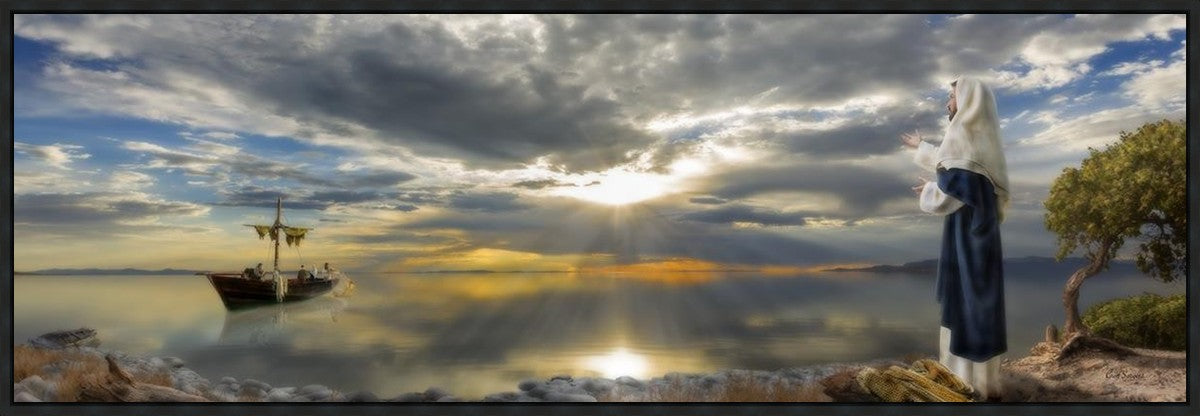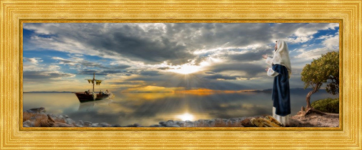 Then as the morning sun broke through the clouds they saw a figure on the distant shore and heard the voice suggesting they should cast their nets to the other side of the boat.****