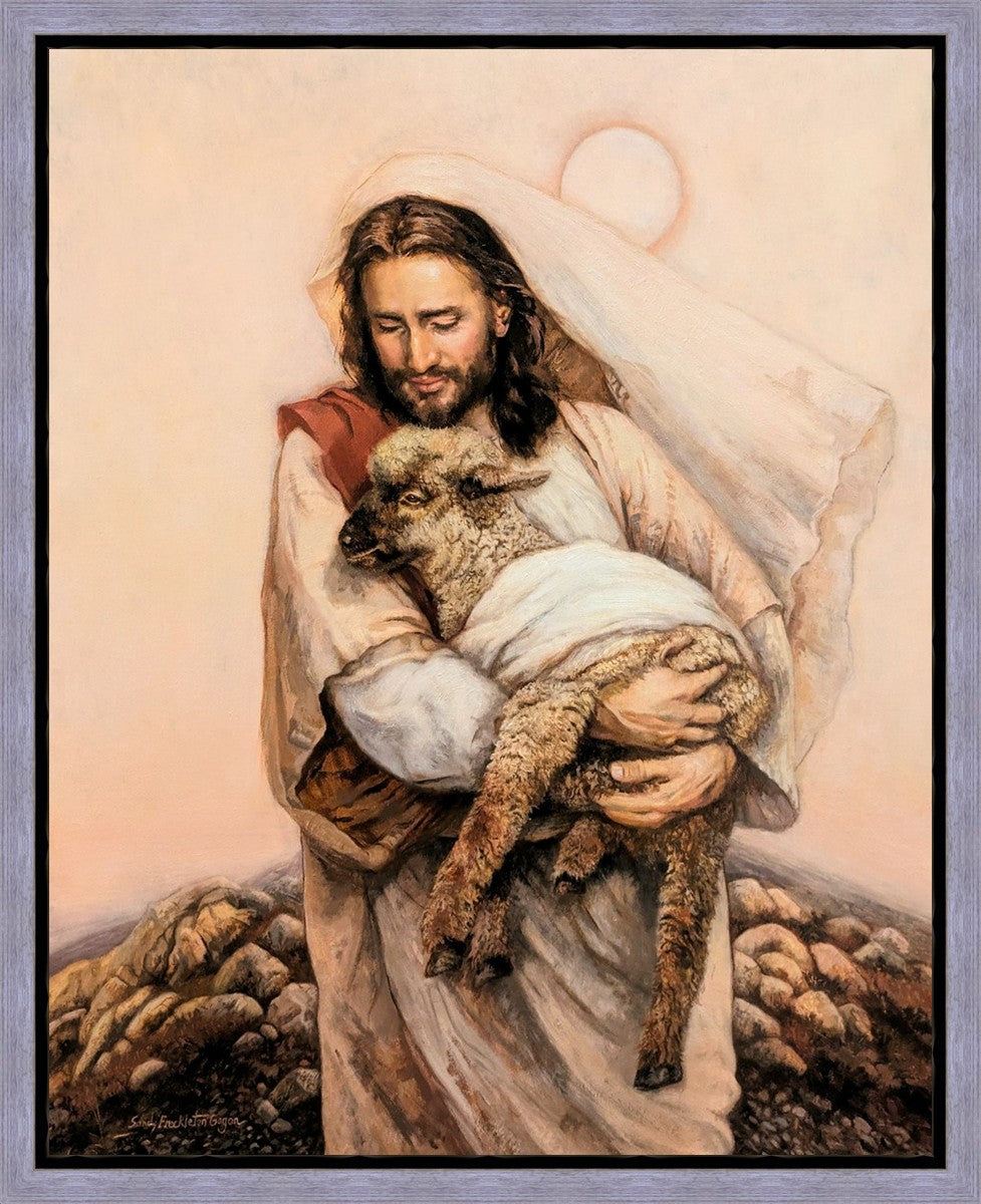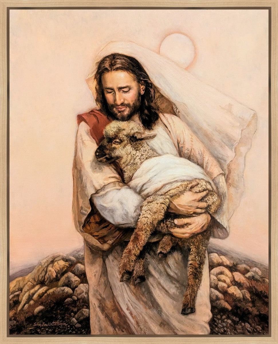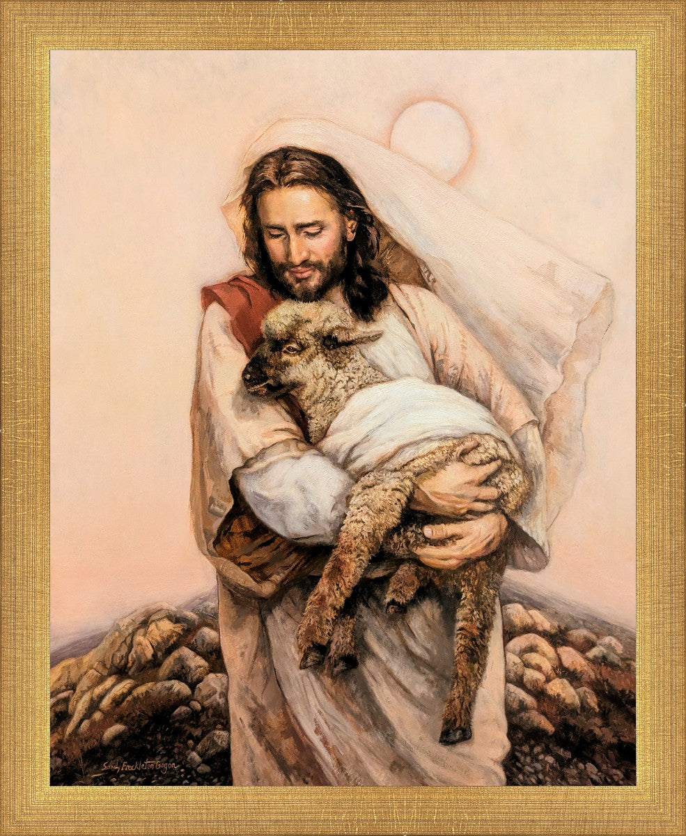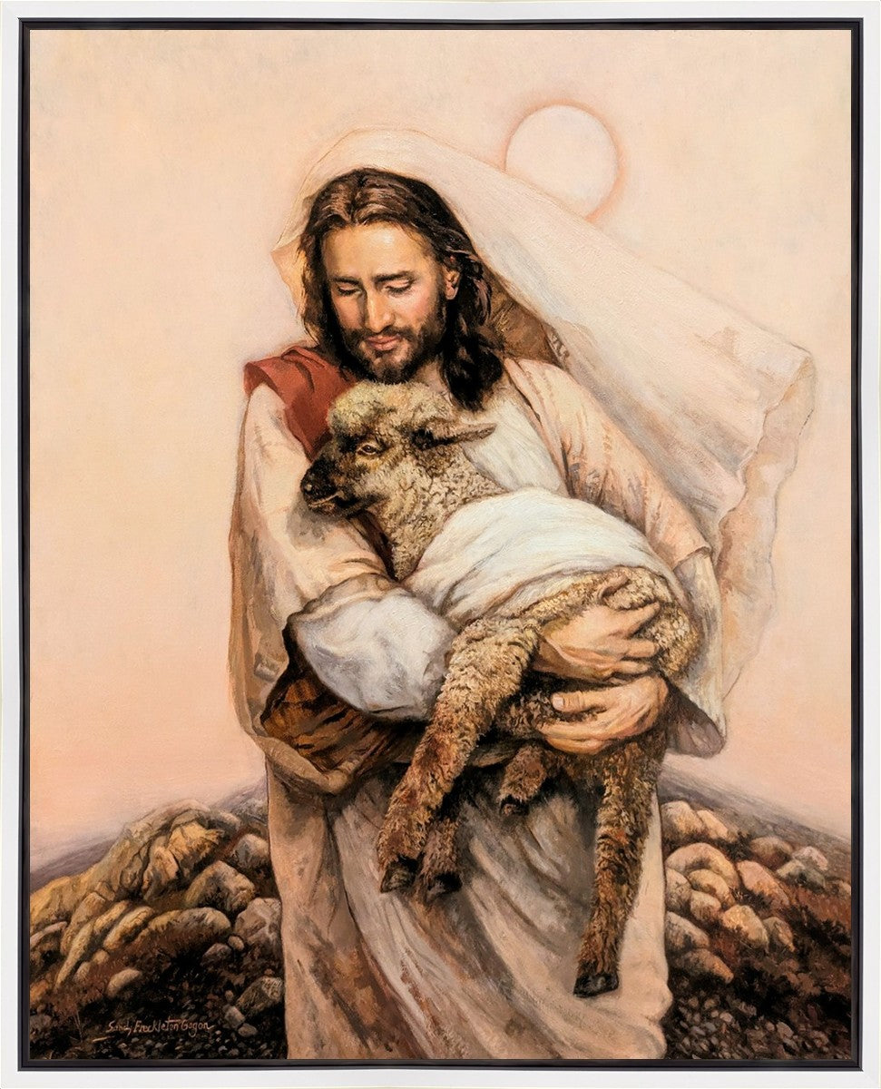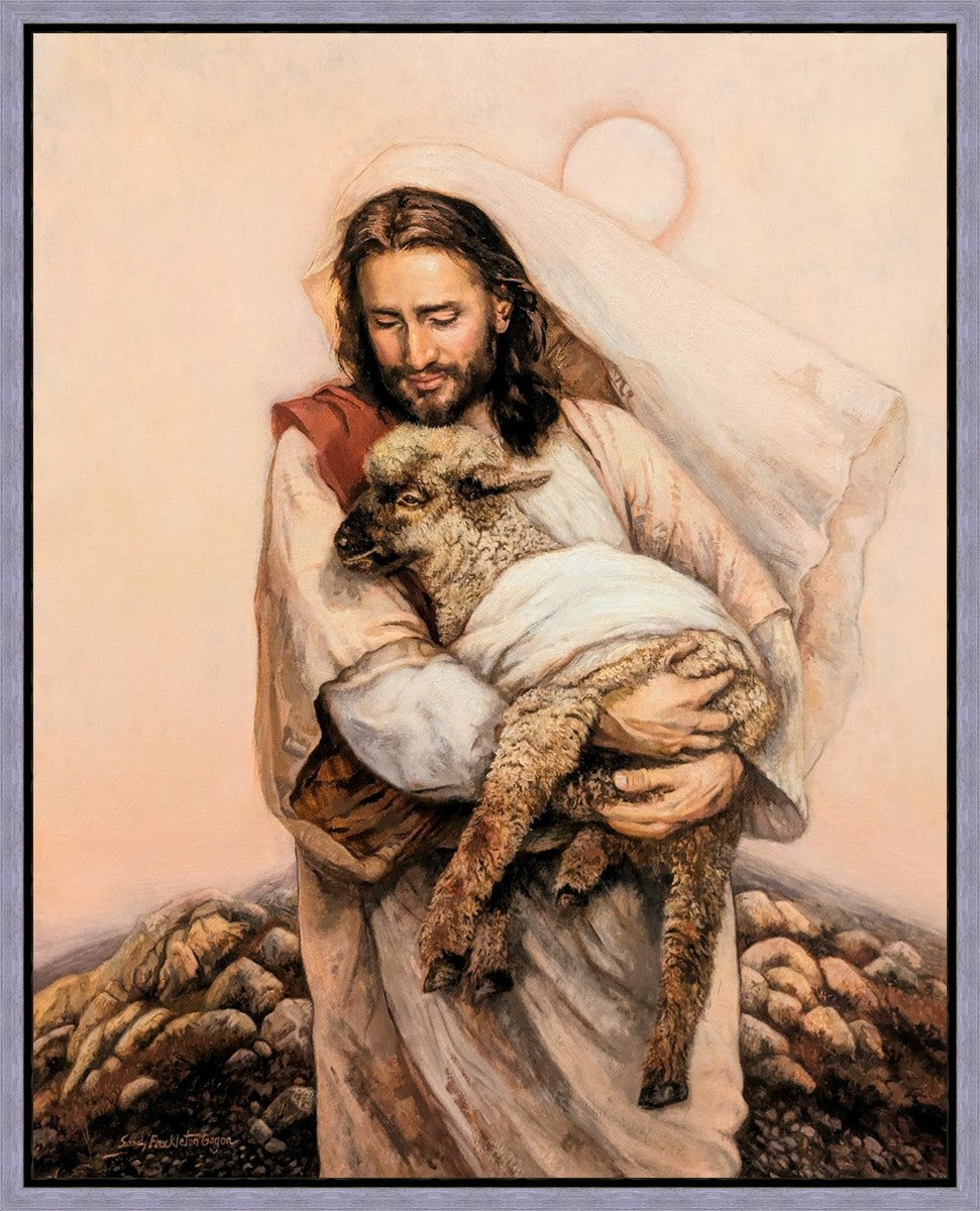Many things coalesce visually for me when I see a painting in my mind. Once, I had experienced a painting by N. C. Wyeth: a man standing on a mountain peak, the wind whipping his cloak about him. I then envisioned the Savior, blanketing His precious lamb with His redeeming strength and power.