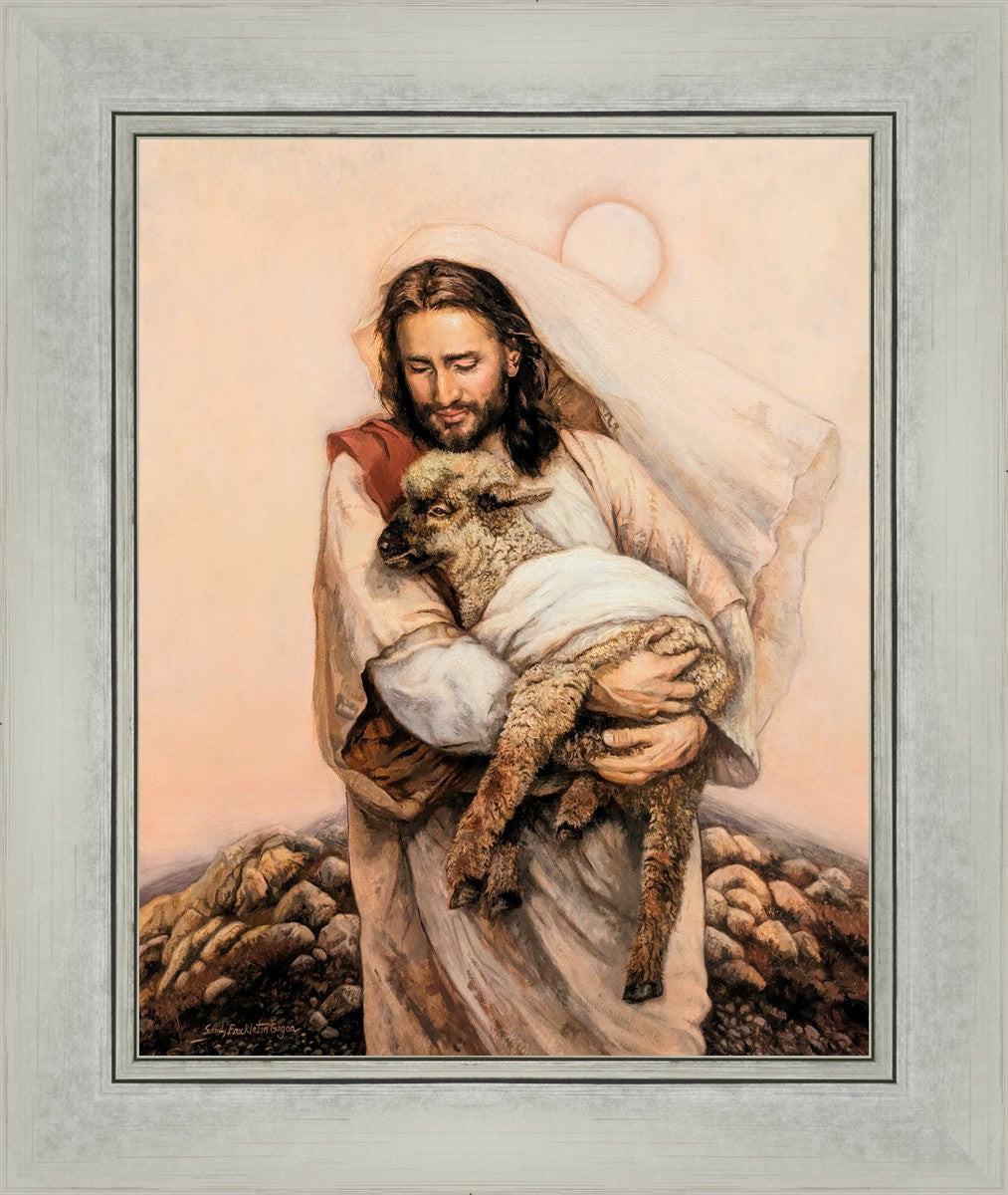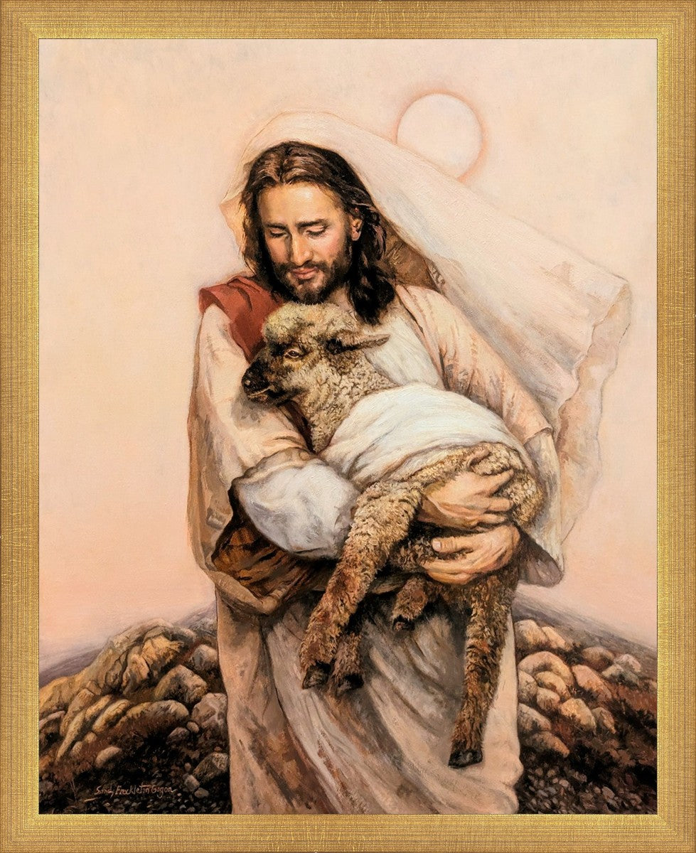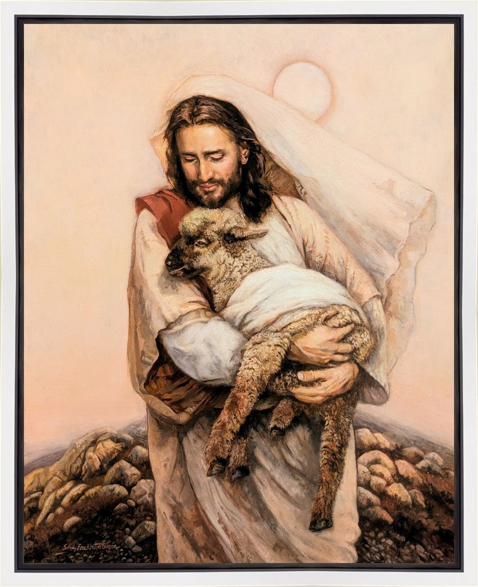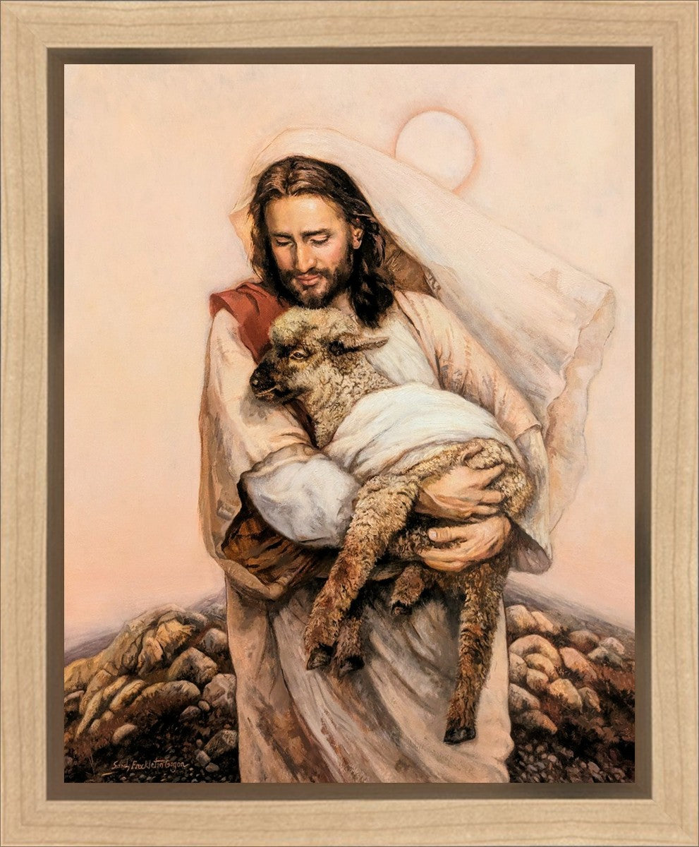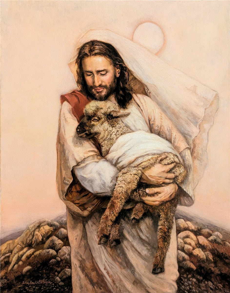 Many things coalesce visually for me when I see a painting in my mind. Once, I had experienced a painting by N. C. Wyeth: a man standing on a mountain peak, the wind whipping his cloak about him. I then envisioned the Savior, blanketing His precious lamb with His redeeming strength and power.