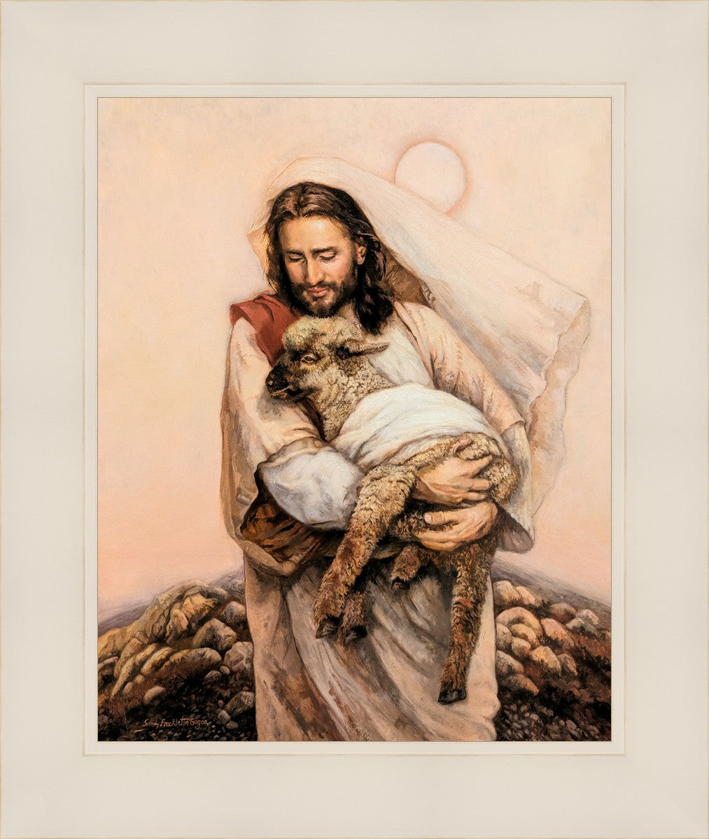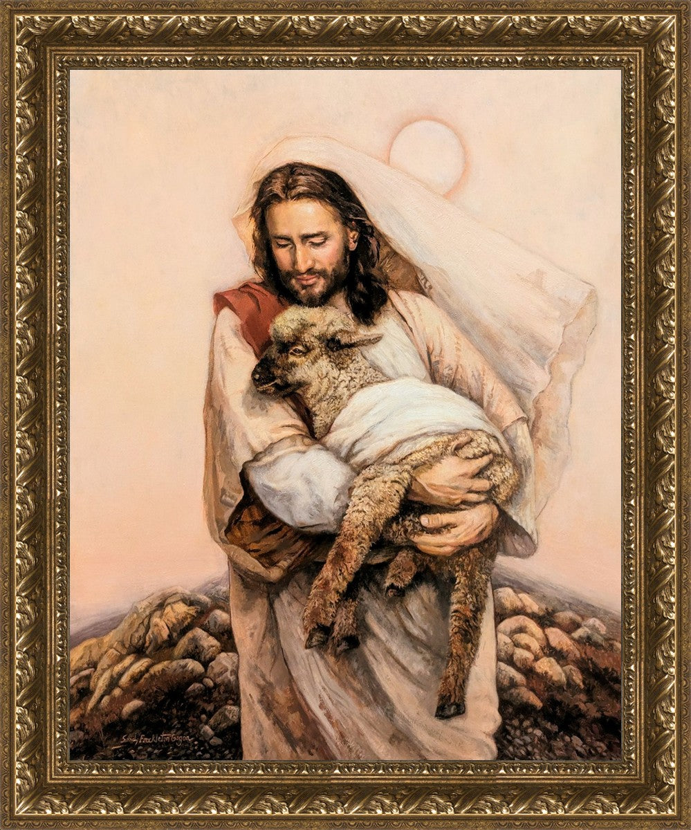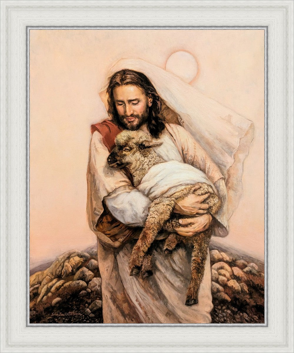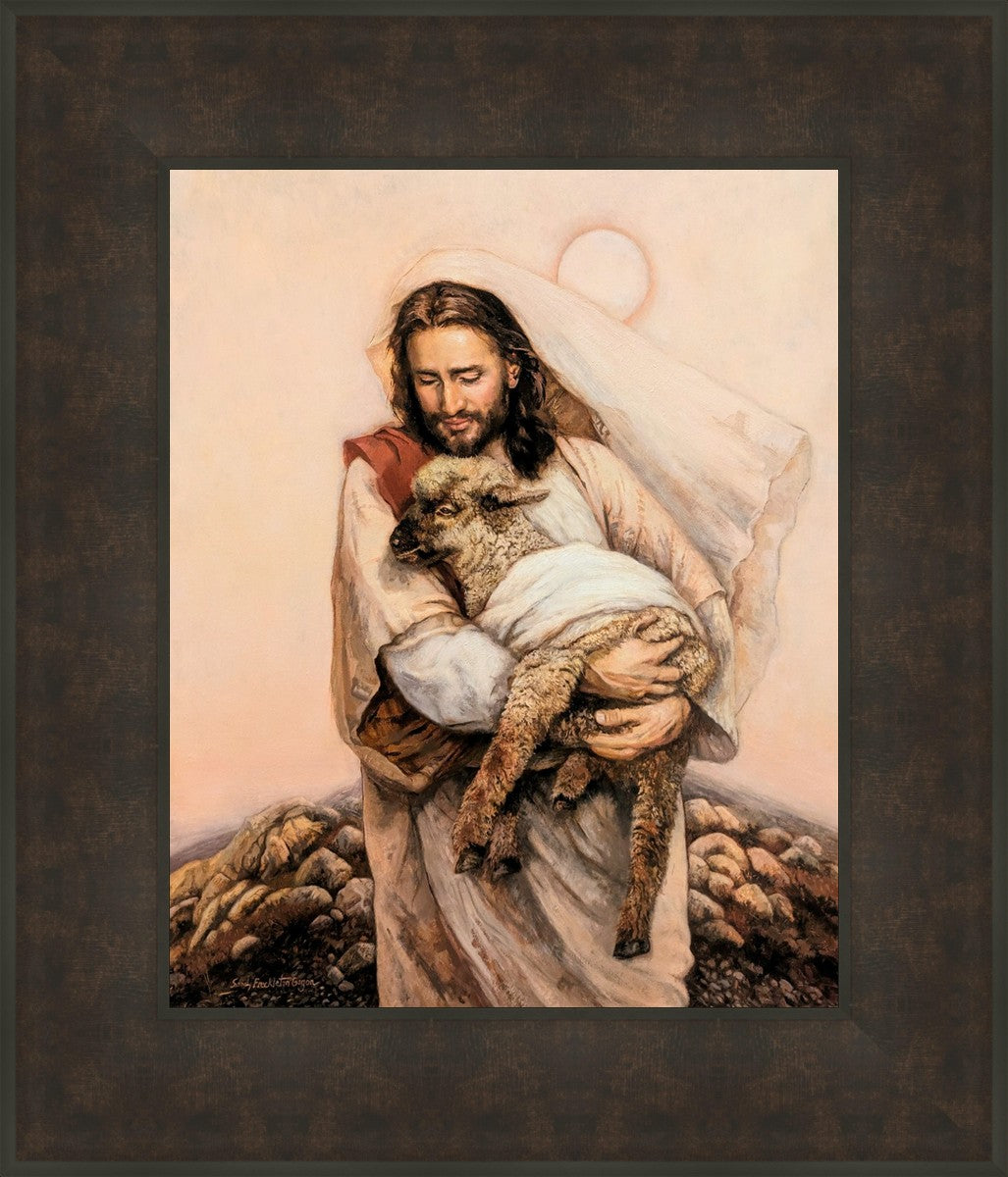 Many things coalesce visually for me when I see a painting in my mind. Once, I had experienced a painting by N. C. Wyeth: a man standing on a mountain peak, the wind whipping his cloak about him. I then envisioned the Savior, blanketing His precious lamb with His redeeming strength and power.