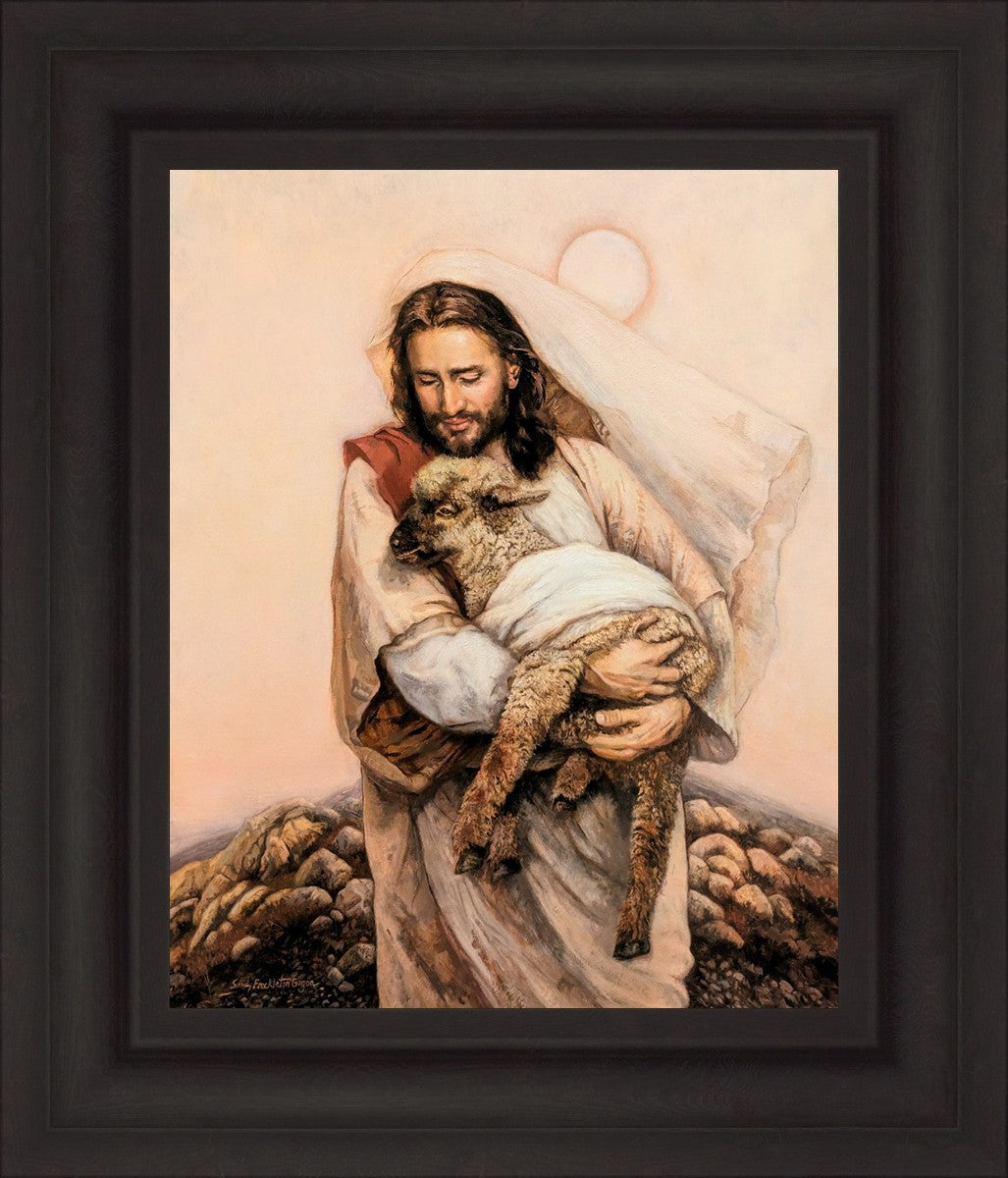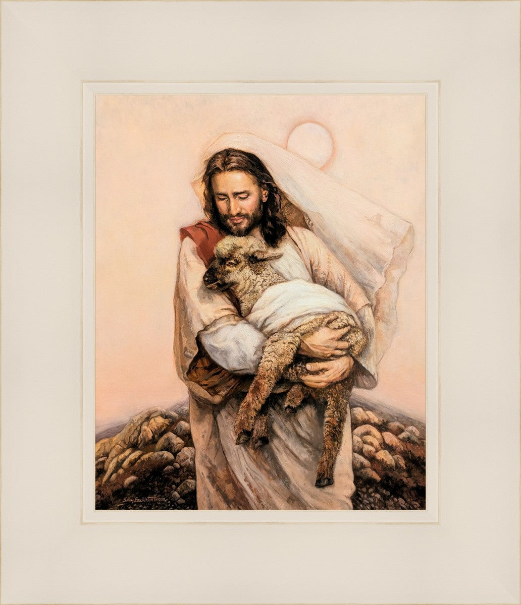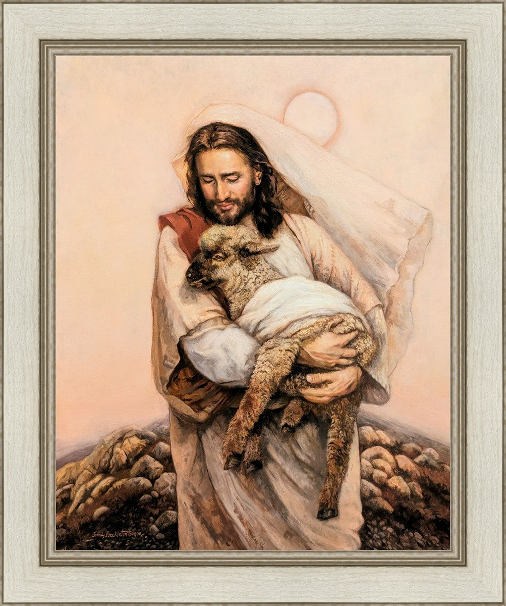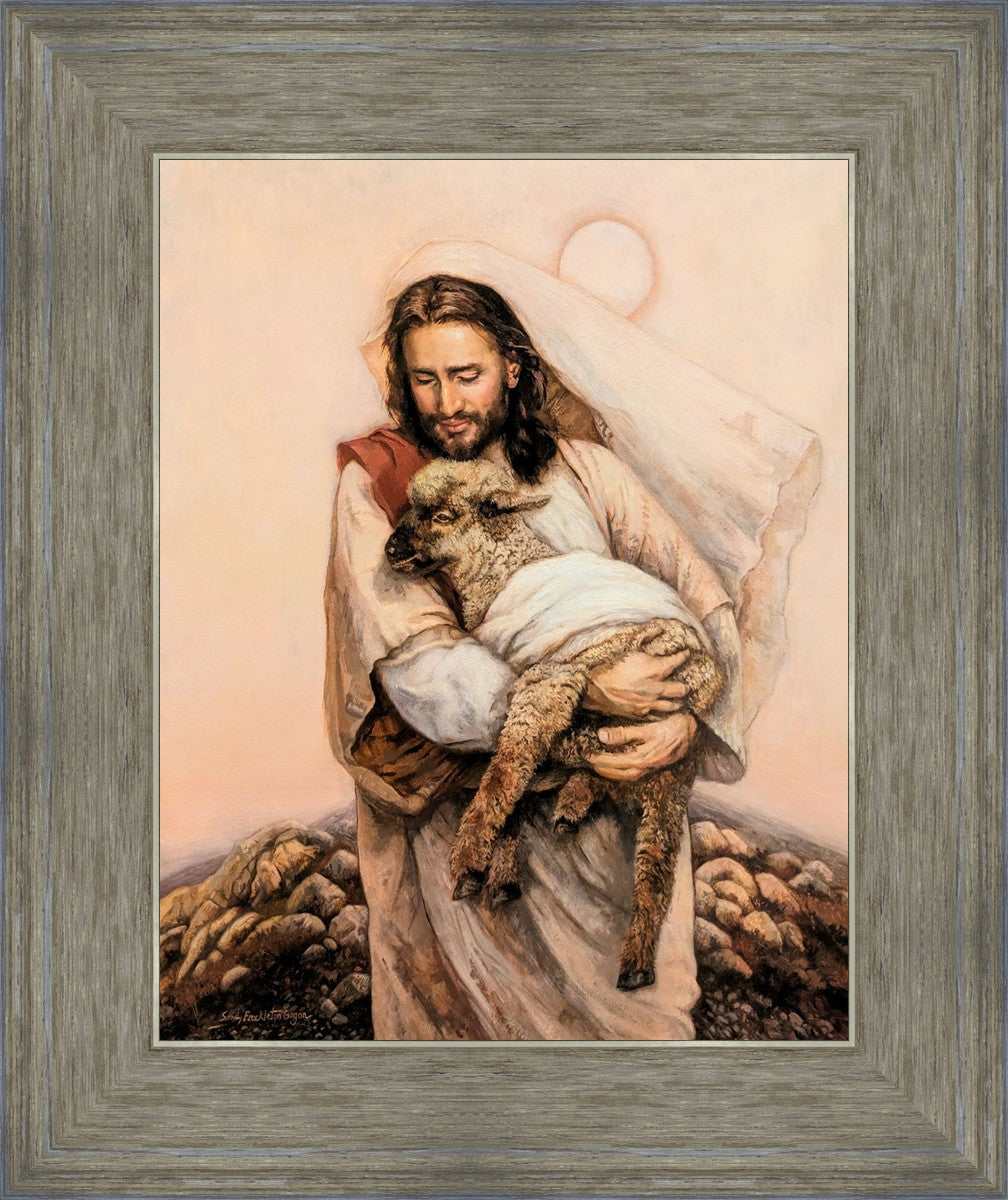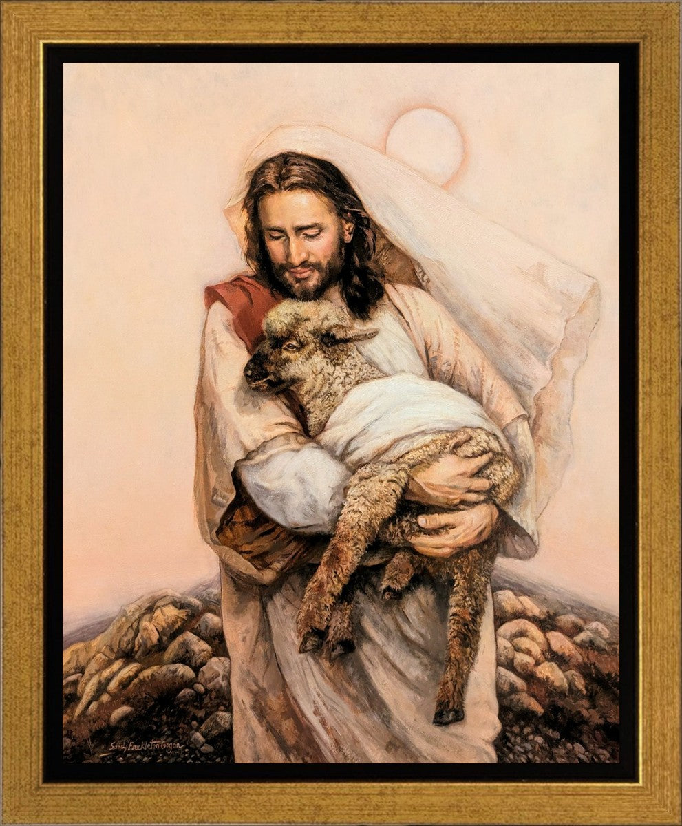 Many things coalesce visually for me when I see a painting in my mind. Once, I had experienced a painting by N. C. Wyeth: a man standing on a mountain peak, the wind whipping his cloak about him. I then envisioned the Savior, blanketing His precious lamb with His redeeming strength and power.