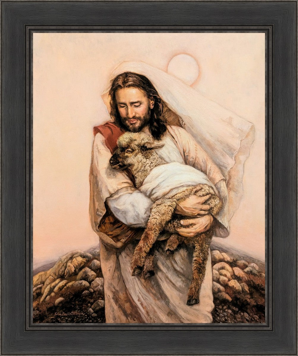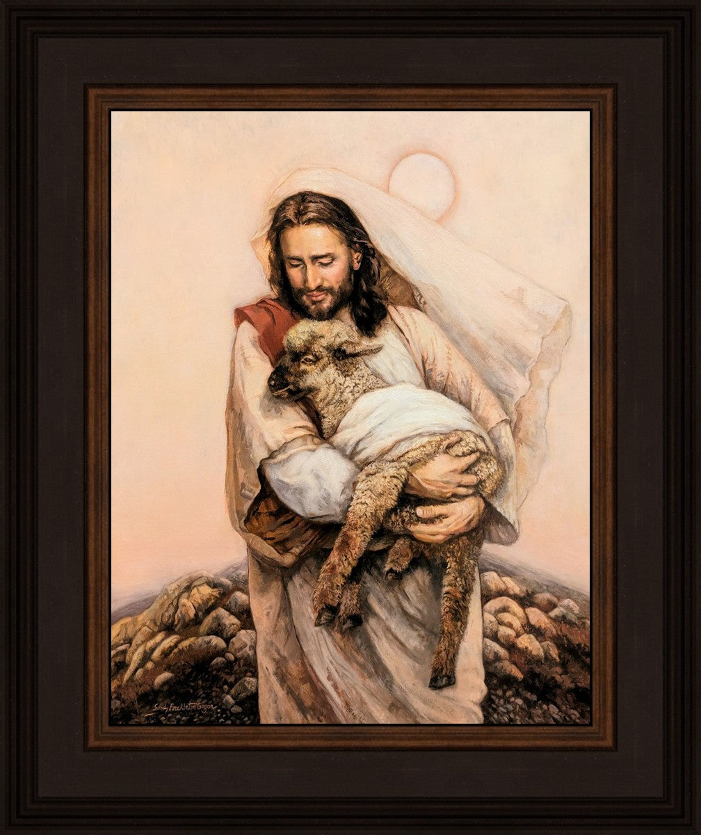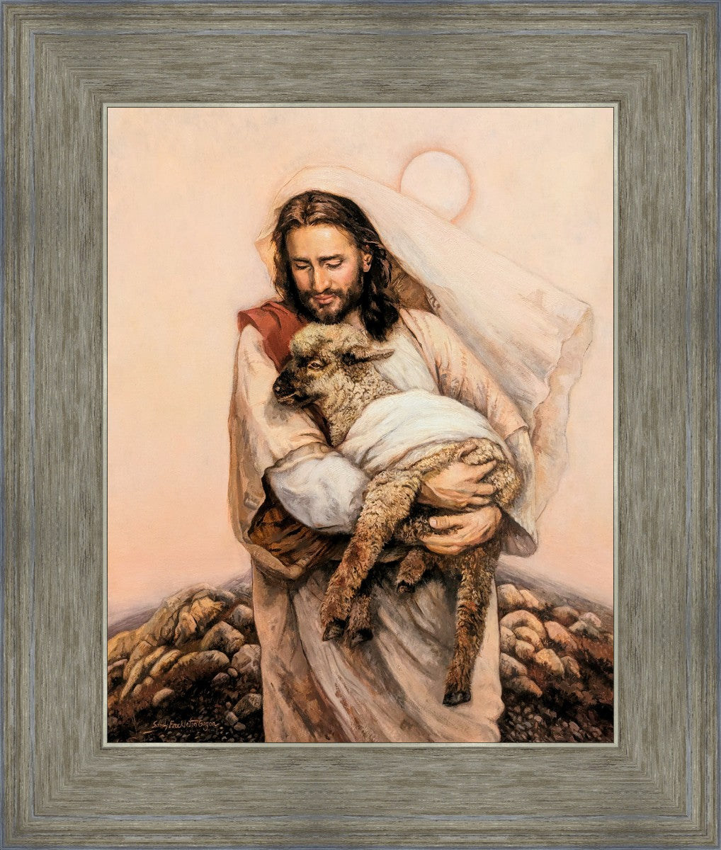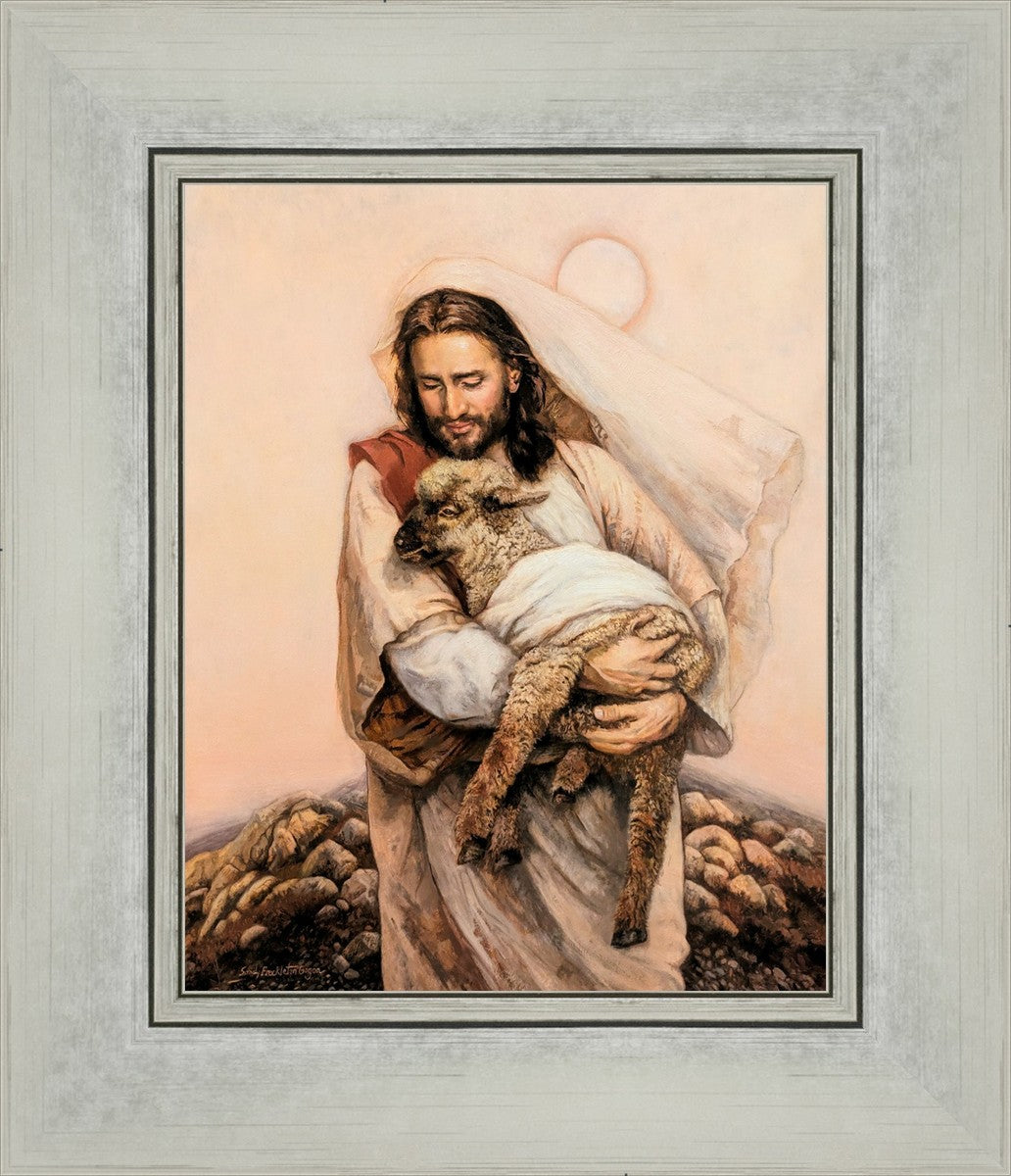 Many things coalesce visually for me when I see a painting in my mind. Once, I had experienced a painting by N. C. Wyeth: a man standing on a mountain peak, the wind whipping his cloak about him. I then envisioned the Savior, blanketing His precious lamb with His redeeming strength and power.