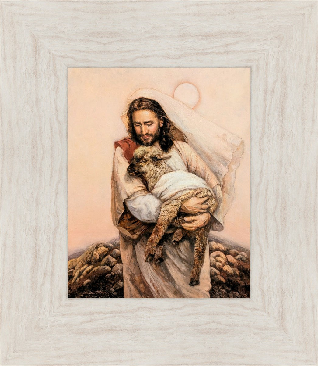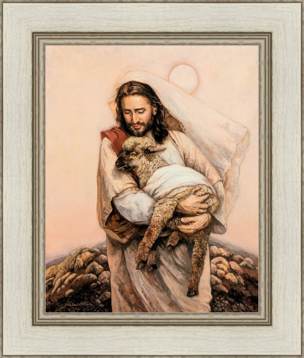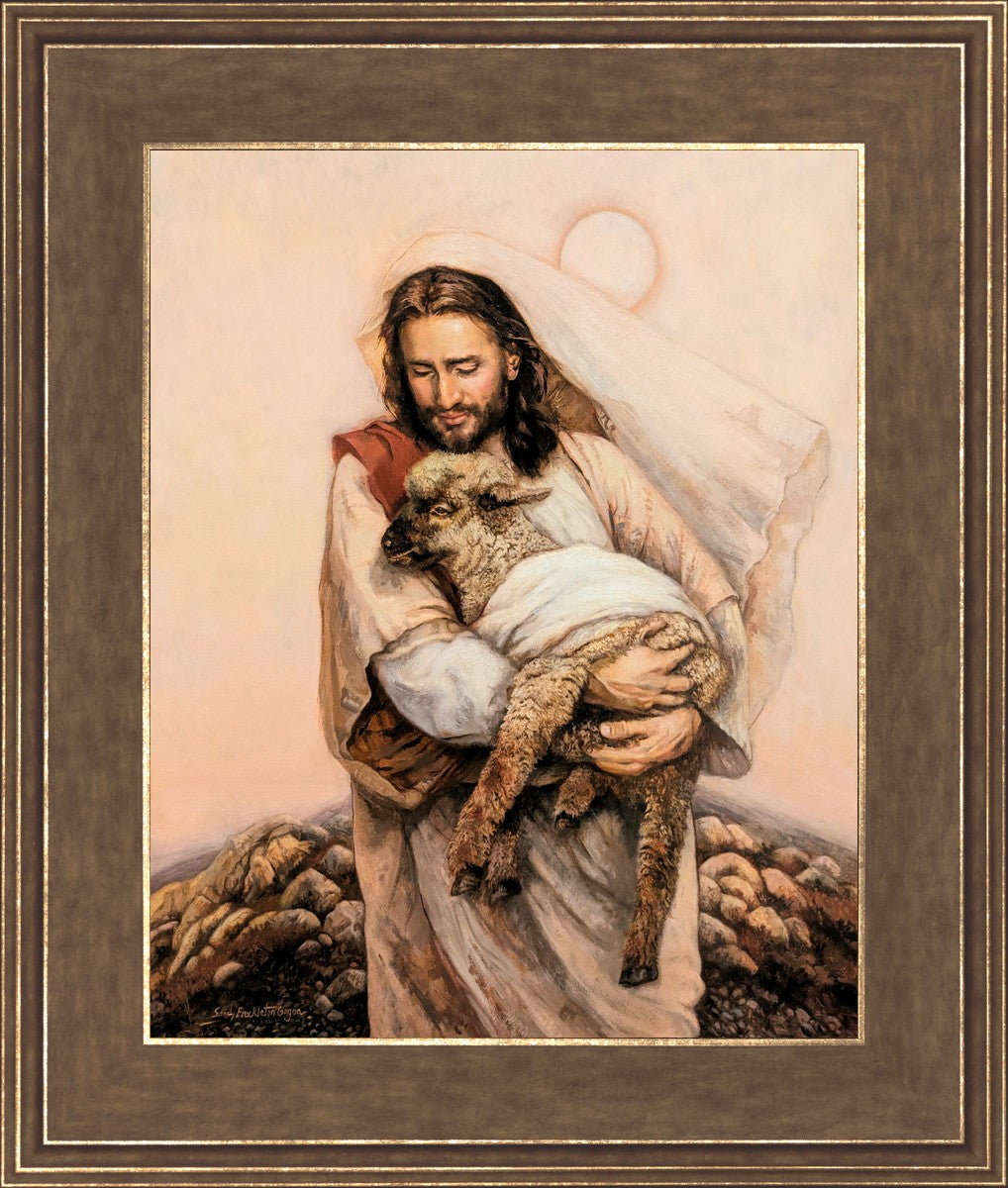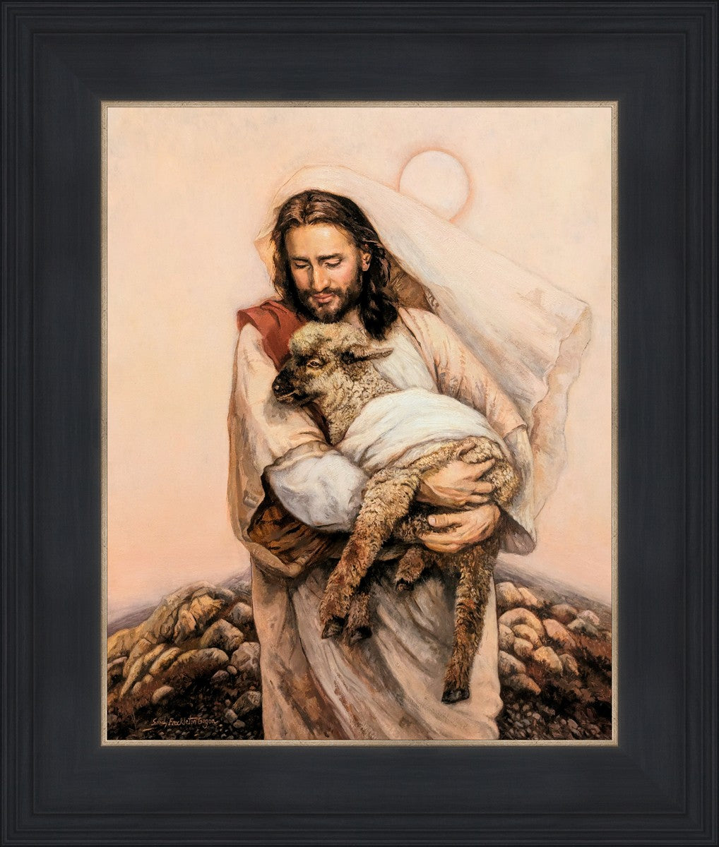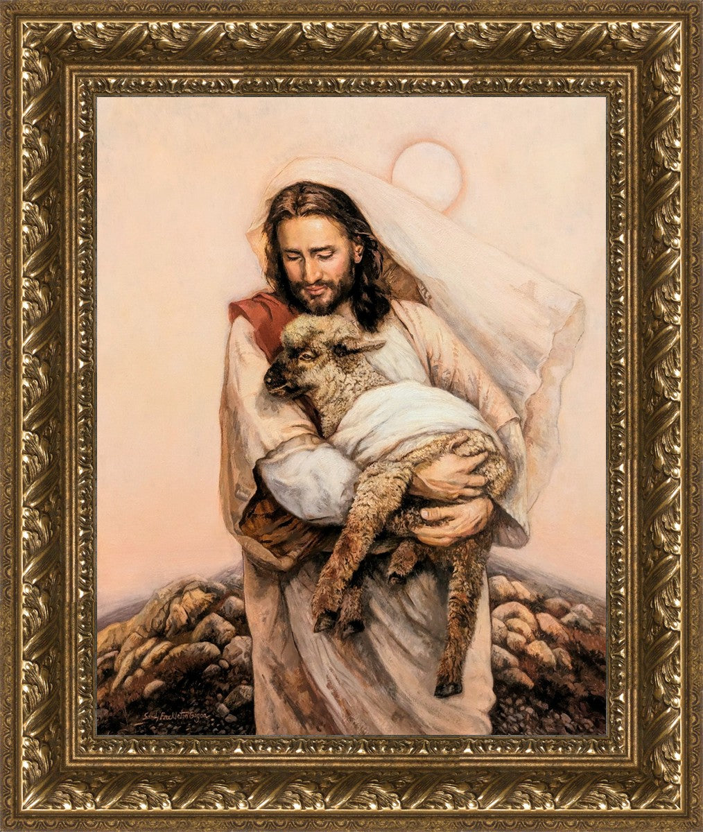 Many things coalesce visually for me when I see a painting in my mind. Once, I had experienced a painting by N. C. Wyeth: a man standing on a mountain peak, the wind whipping his cloak about him. I then envisioned the Savior, blanketing His precious lamb with His redeeming strength and power.