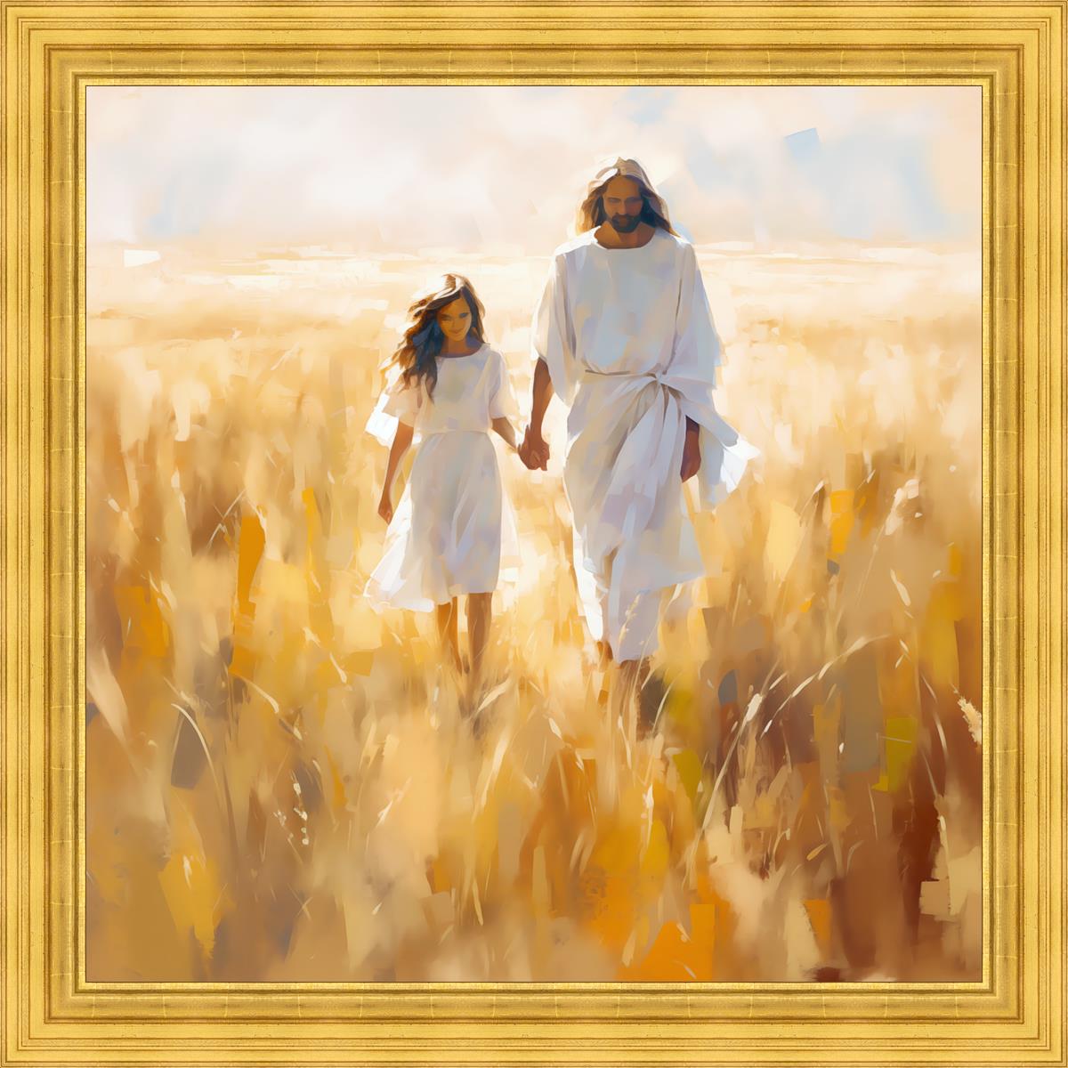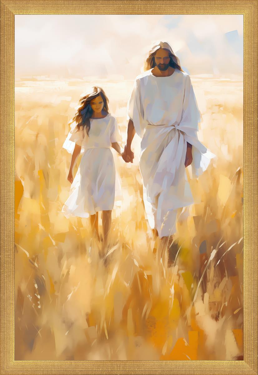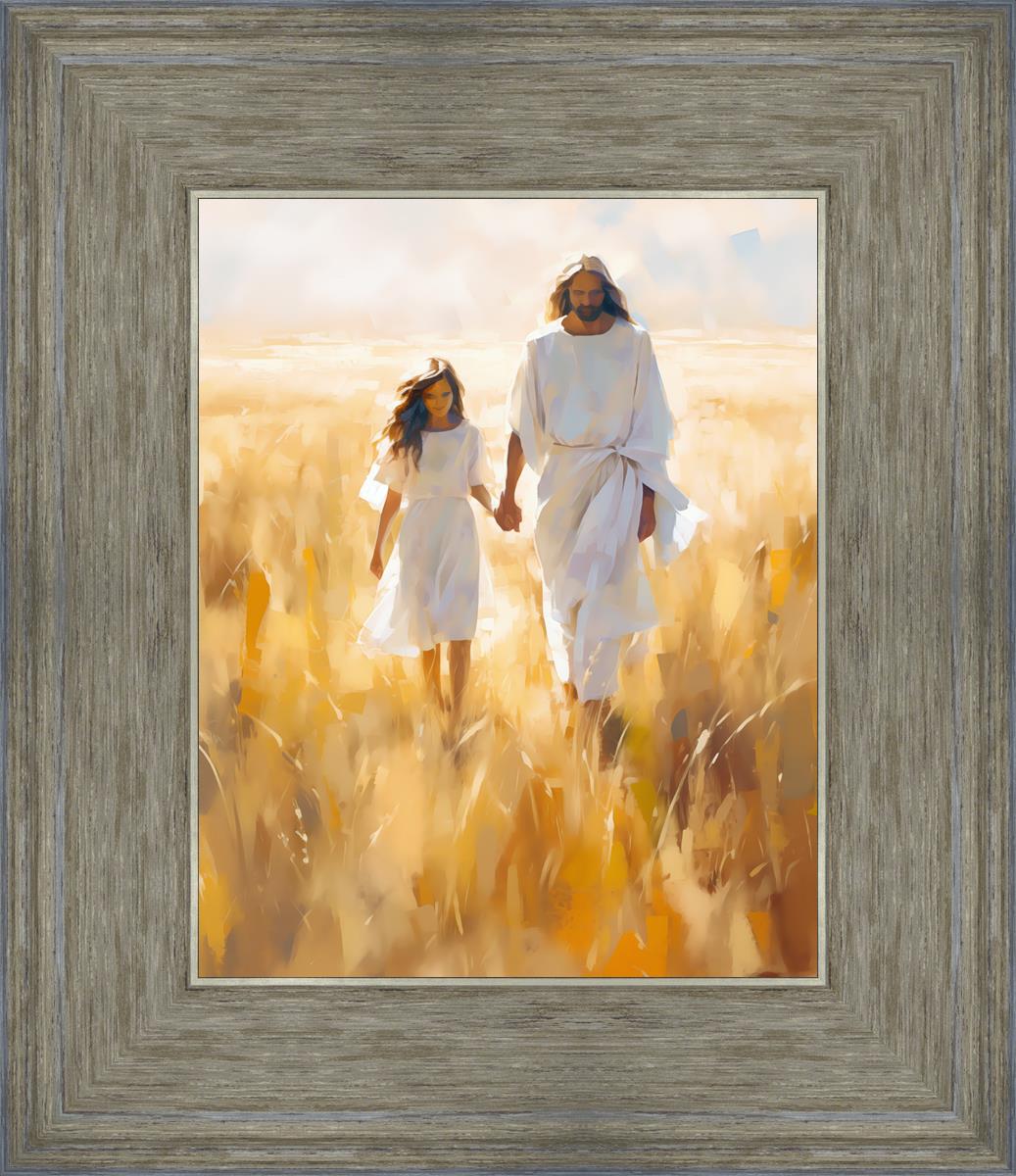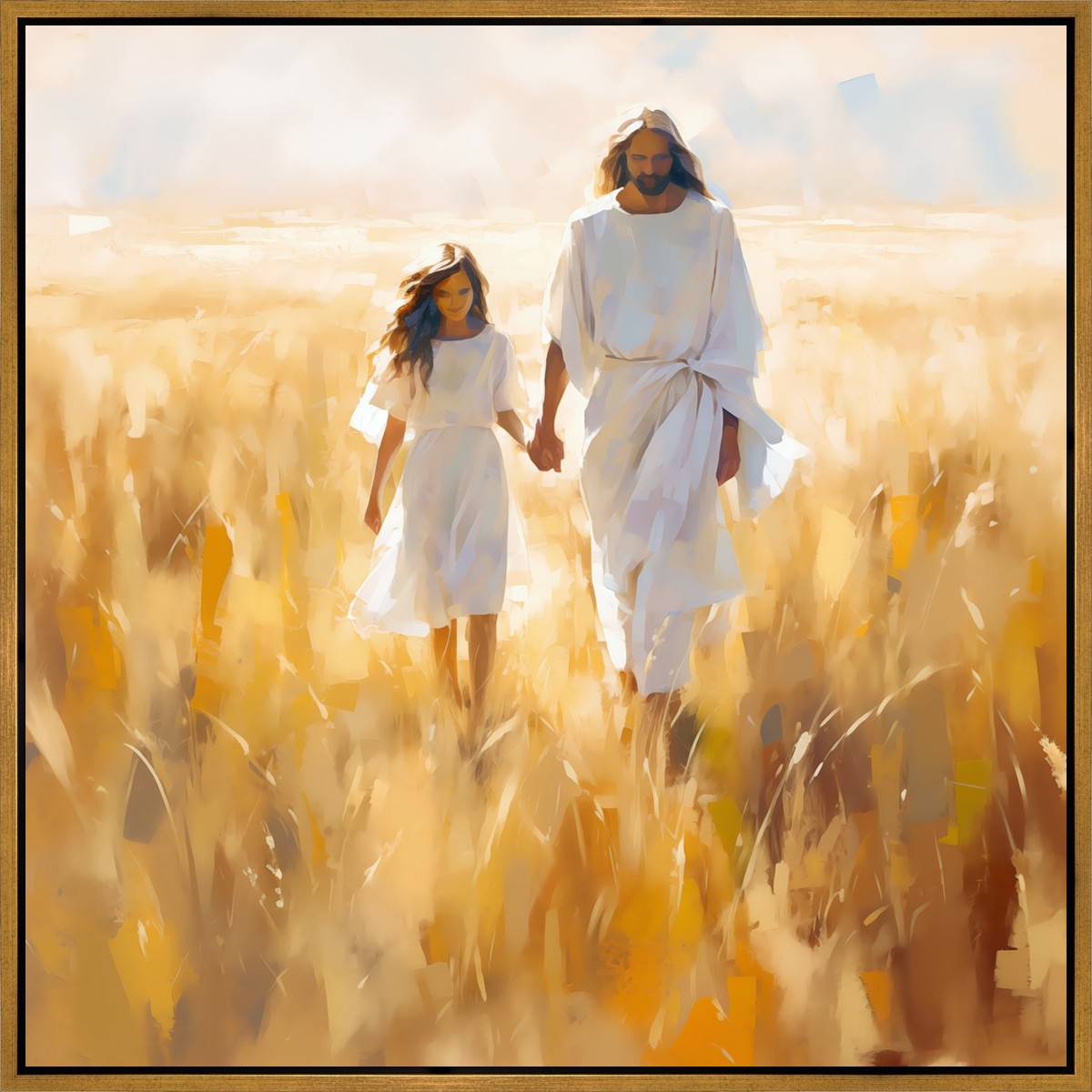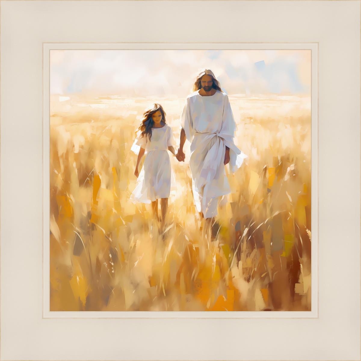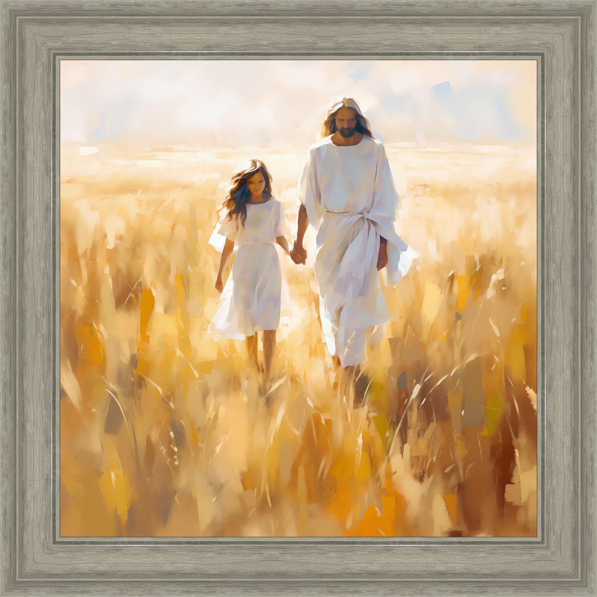 This piece was meant to be more abstract with a modern look. I love the bright golden field that reminds us of the beauty we are striving towards in our lives and the lives afterward. A walk with Christ produces that beauty and will eternally propel that beauty into the next life.