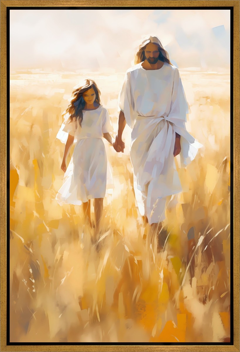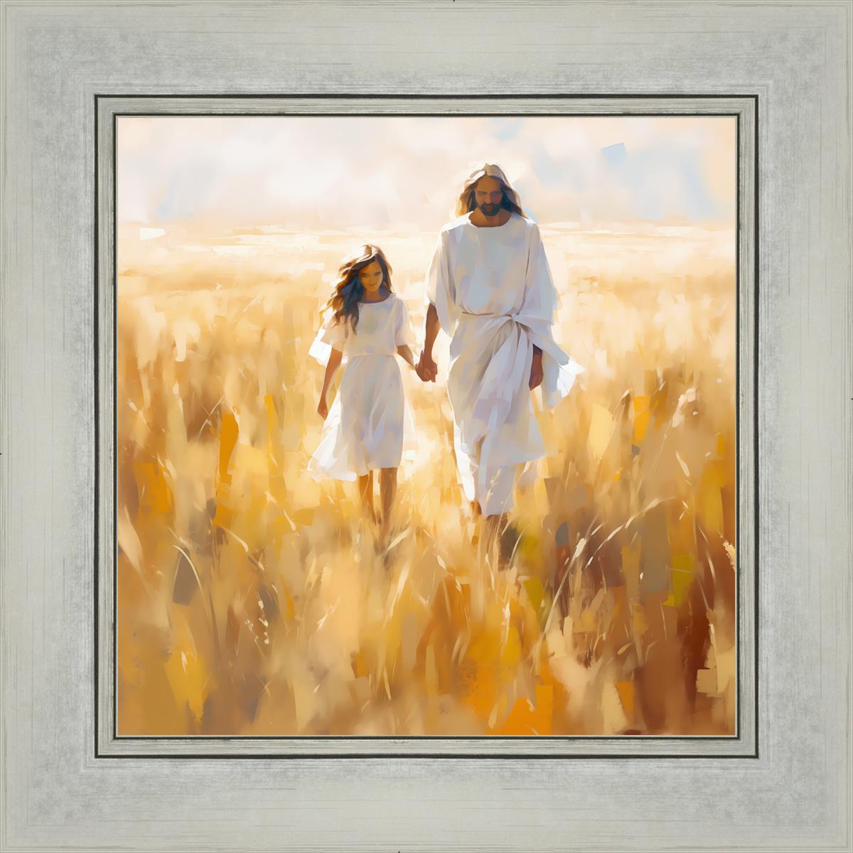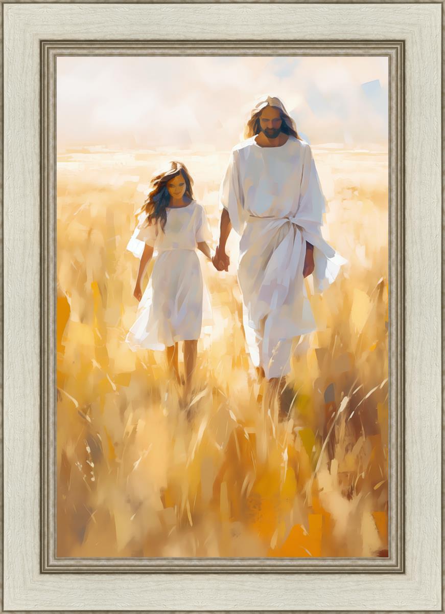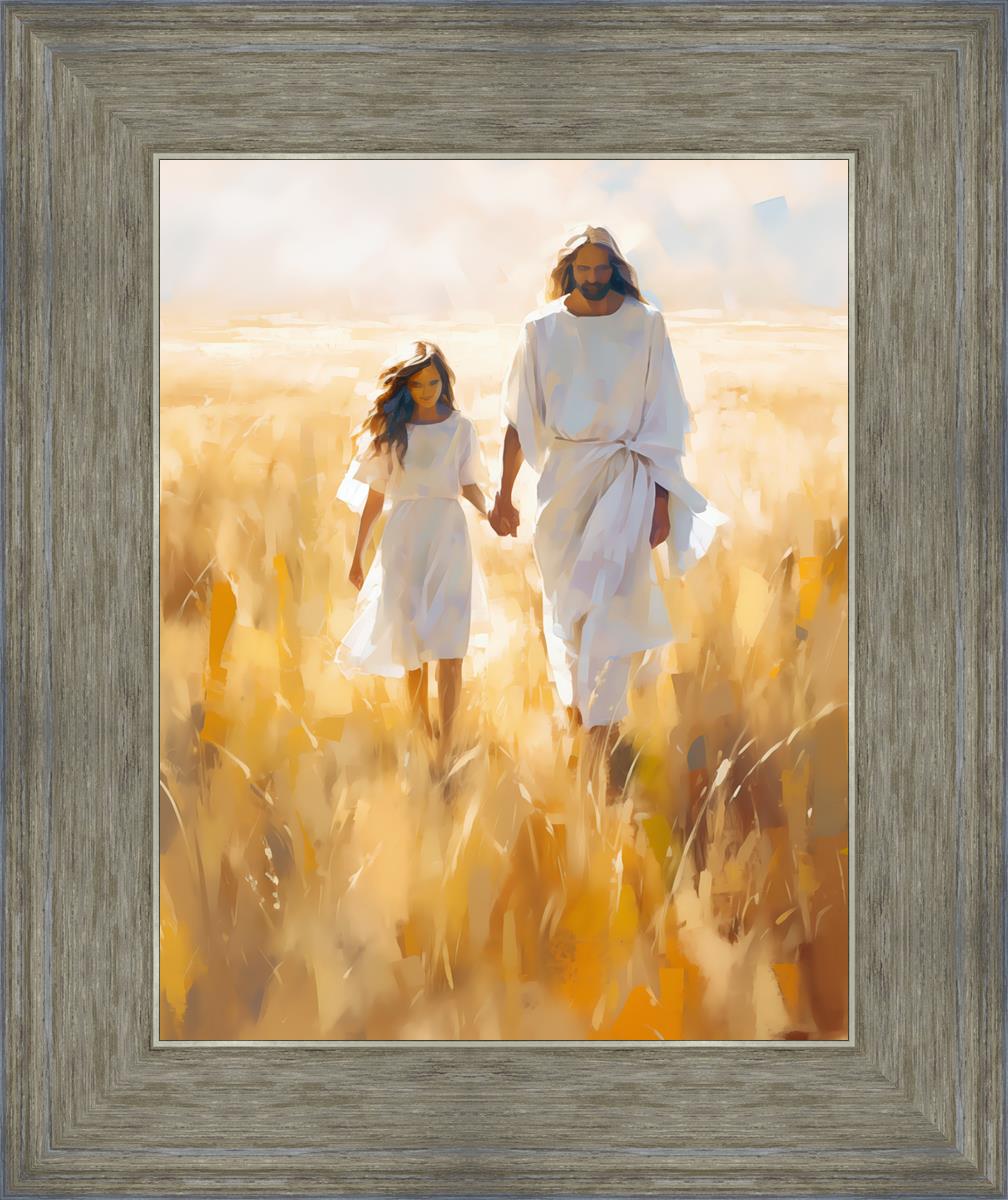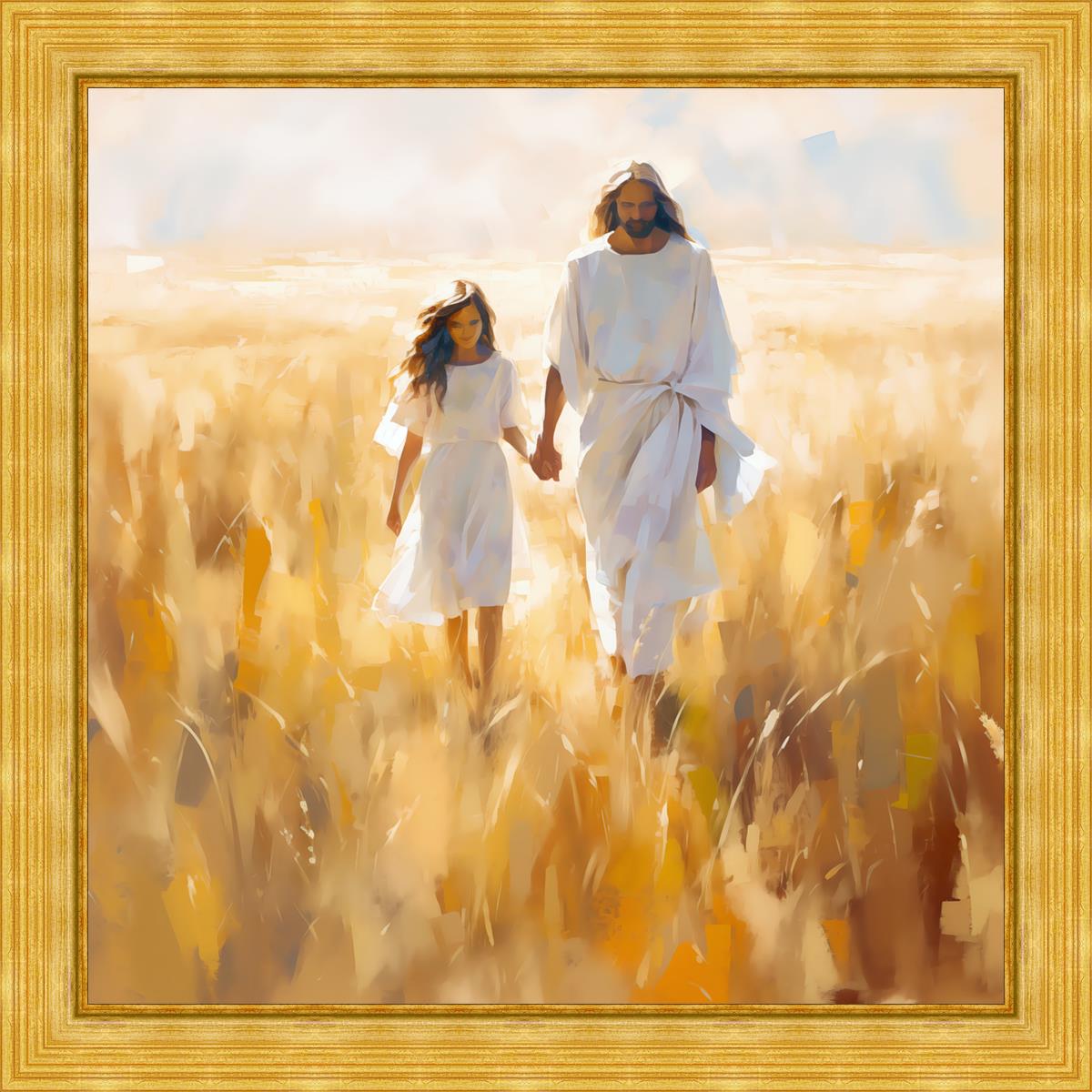 This piece was meant to be more abstract with a modern look. I love the bright golden field that reminds us of the beauty we are striving towards in our lives and the lives afterward. A walk with Christ produces that beauty and will eternally propel that beauty into the next life.