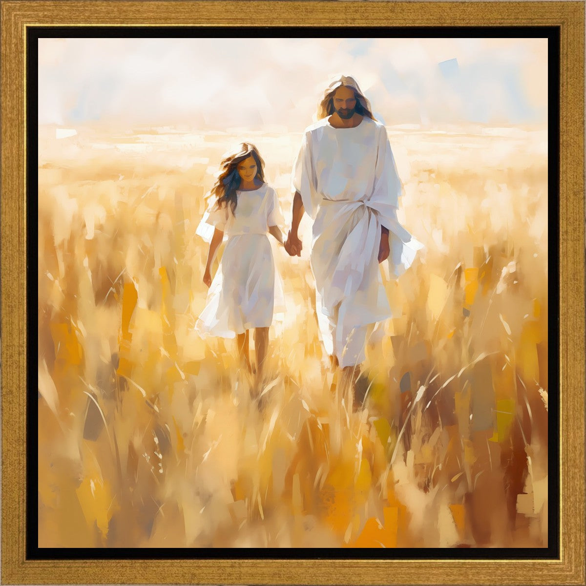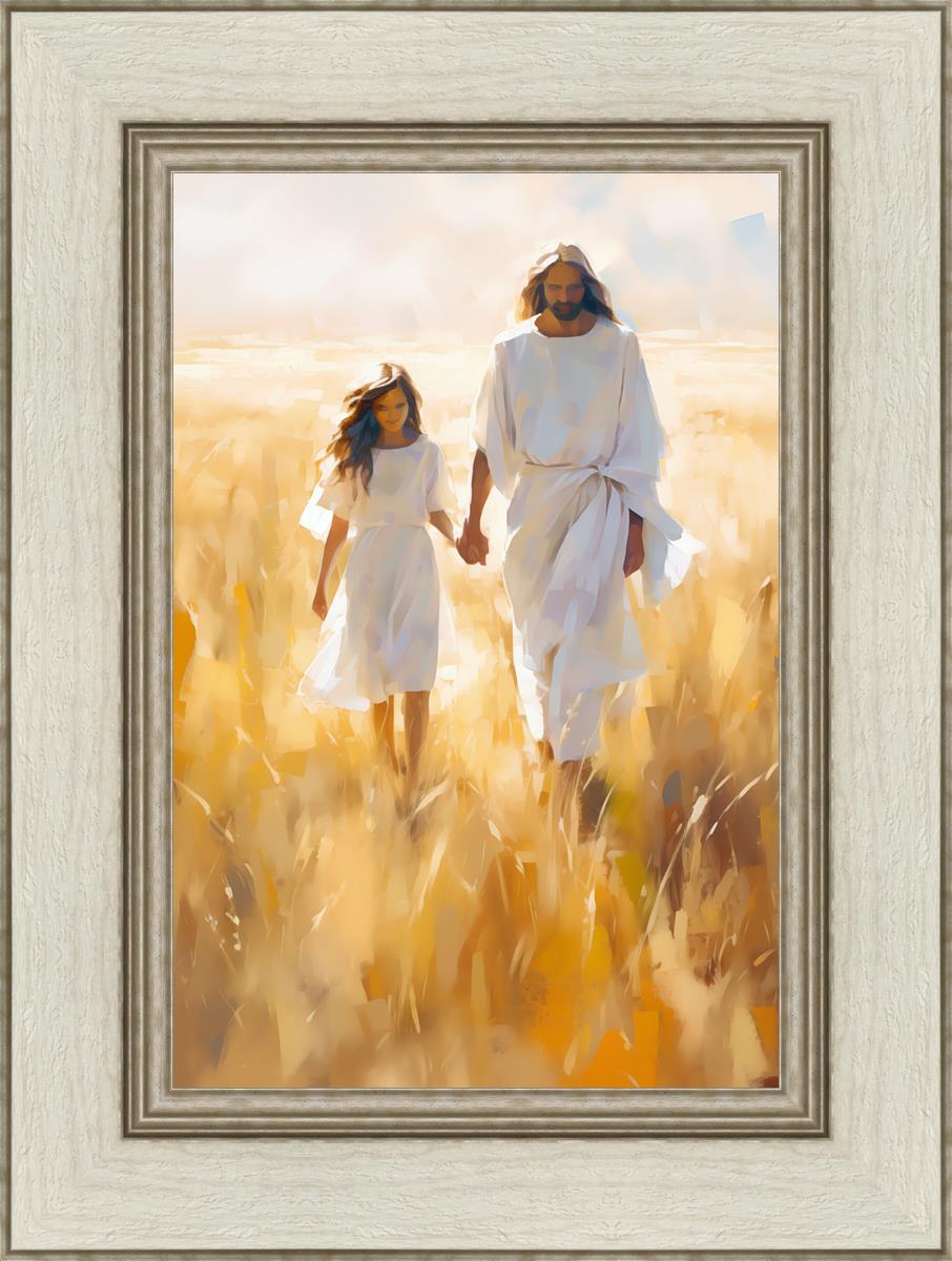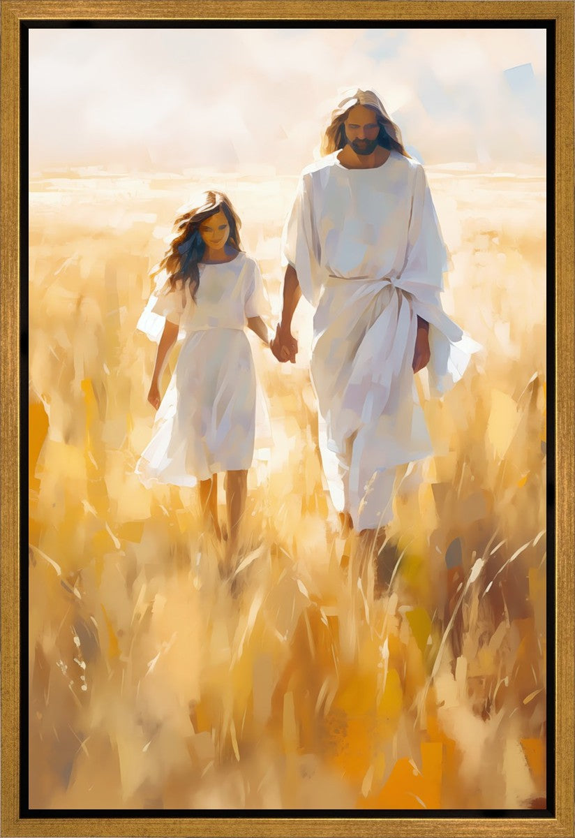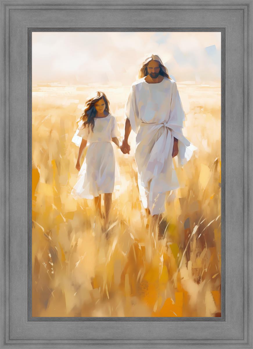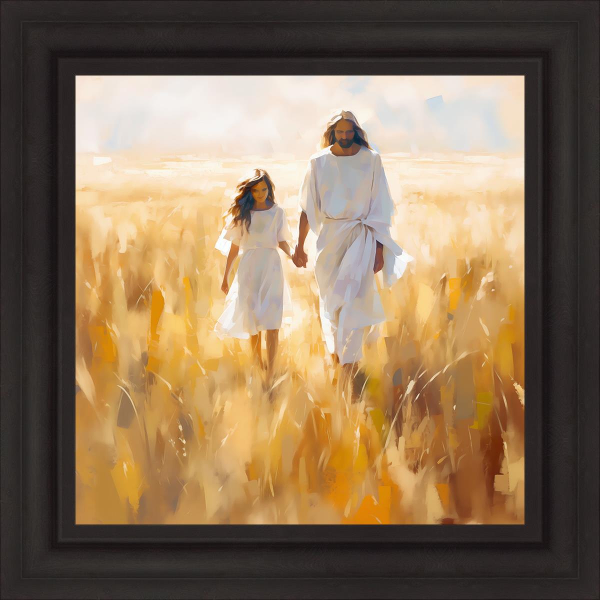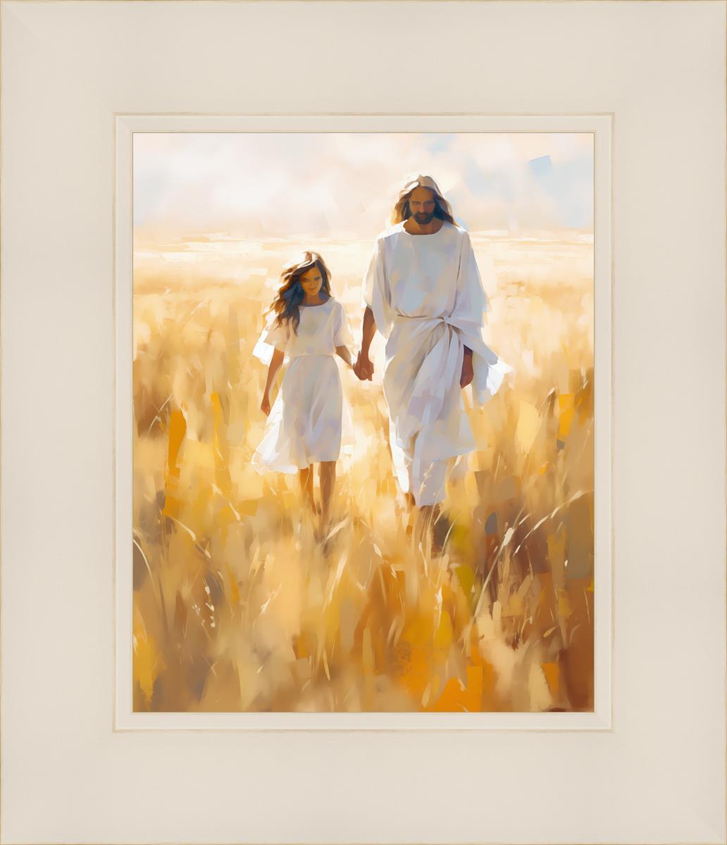This piece was meant to be more abstract with a modern look. I love the bright golden field that reminds us of the beauty we are striving towards in our lives and the lives afterward. A walk with Christ produces that beauty and will eternally propel that beauty into the next life.
