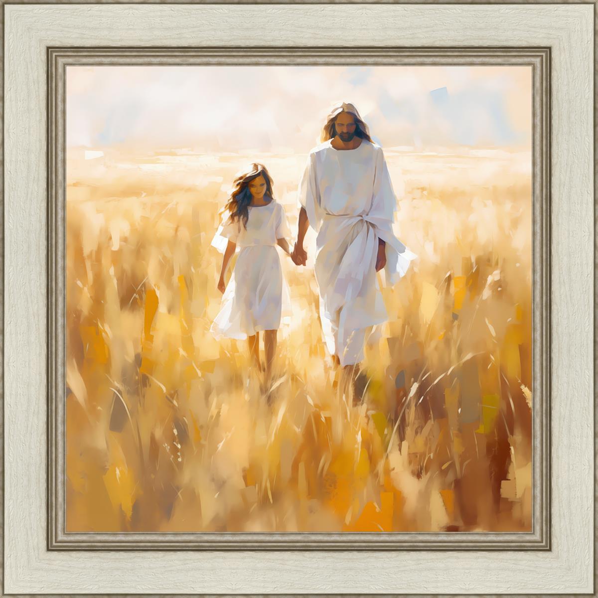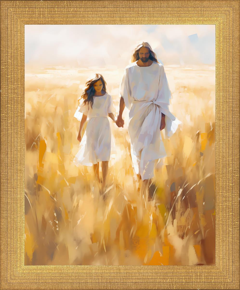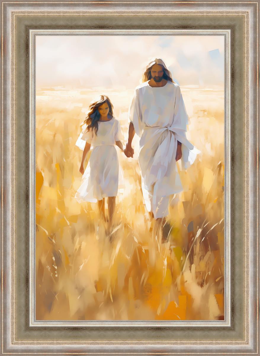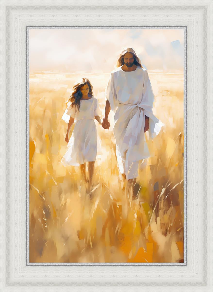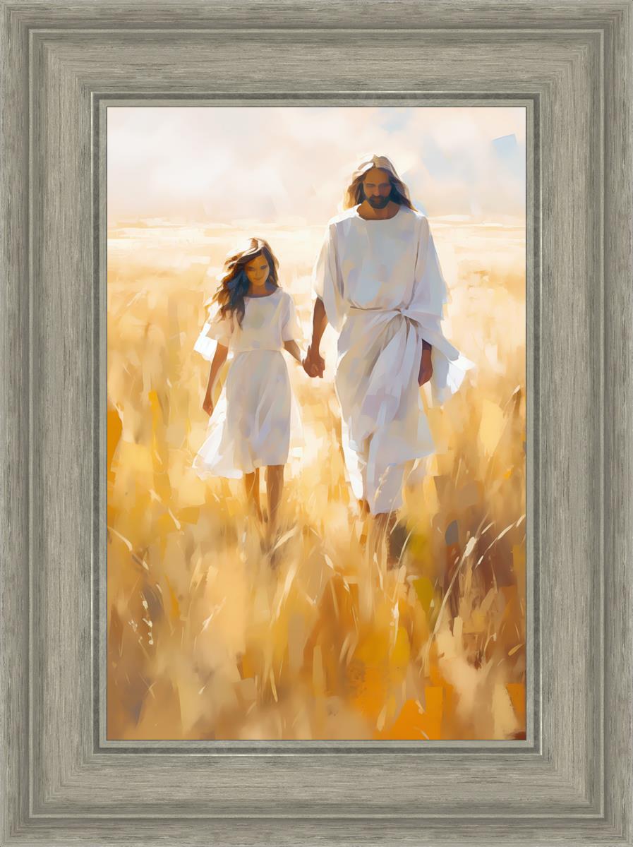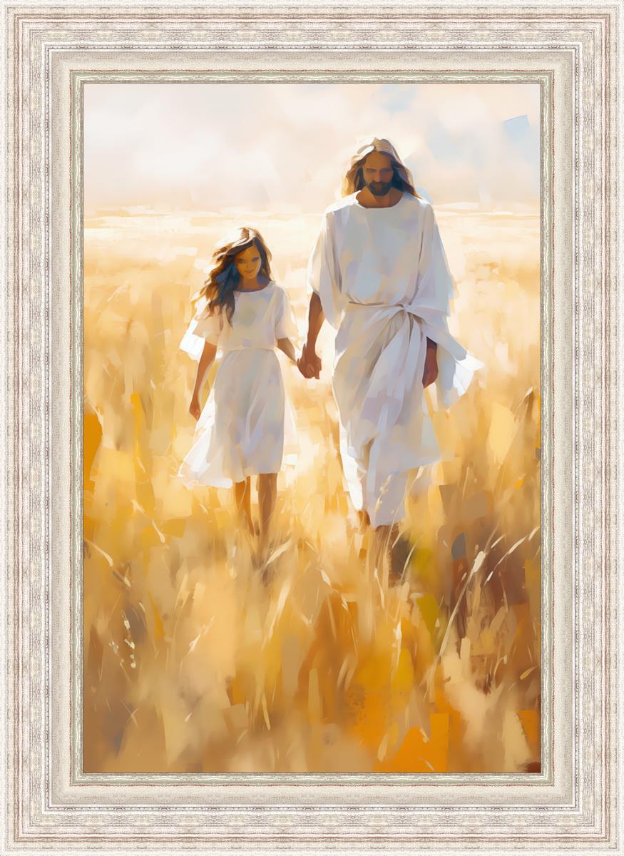 This piece was meant to be more abstract with a modern look. I love the bright golden field that reminds us of the beauty we are striving towards in our lives and the lives afterward. A walk with Christ produces that beauty and will eternally propel that beauty into the next life.