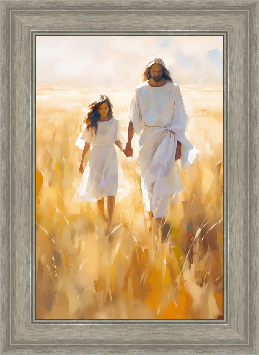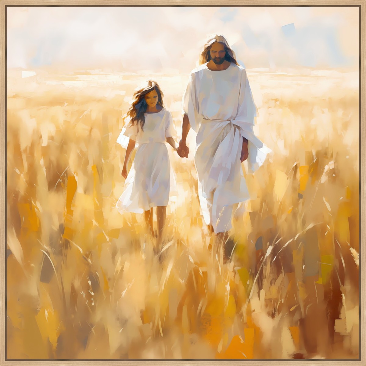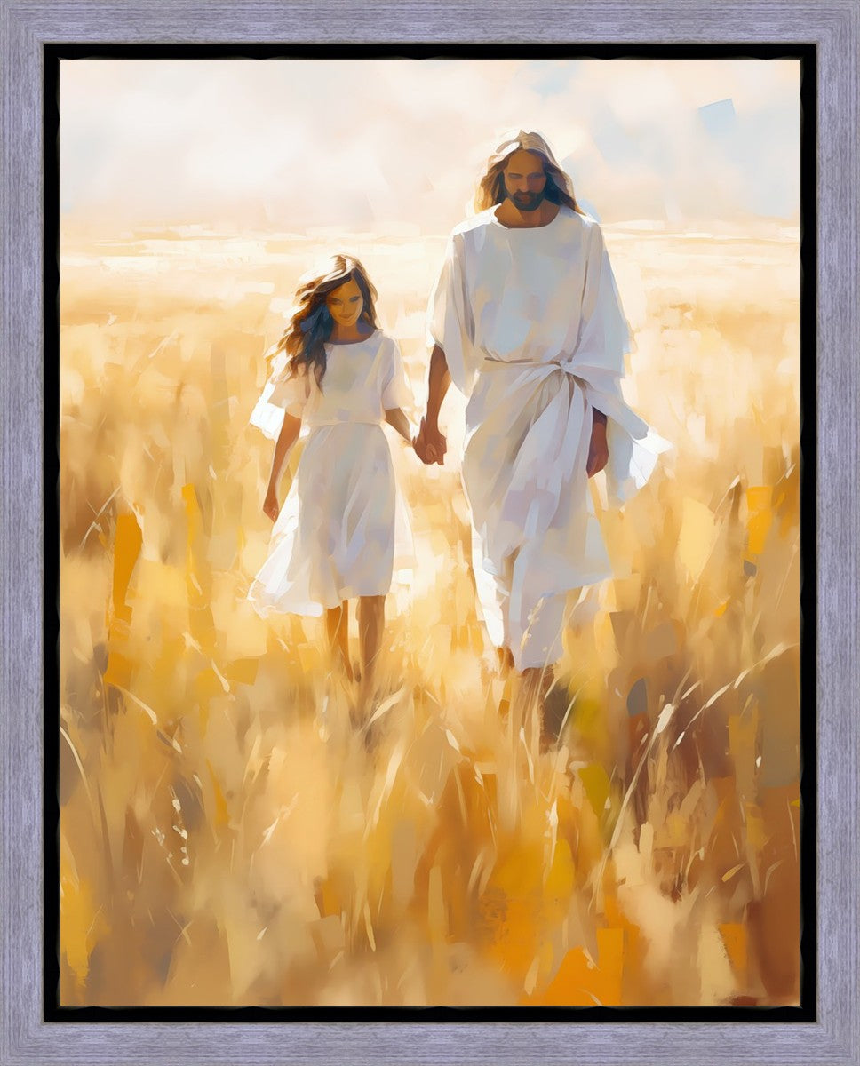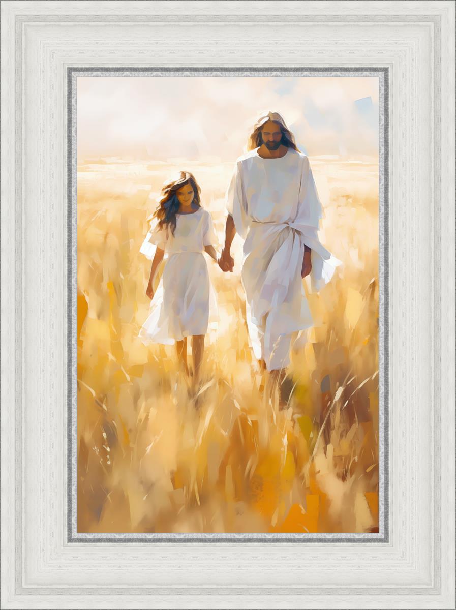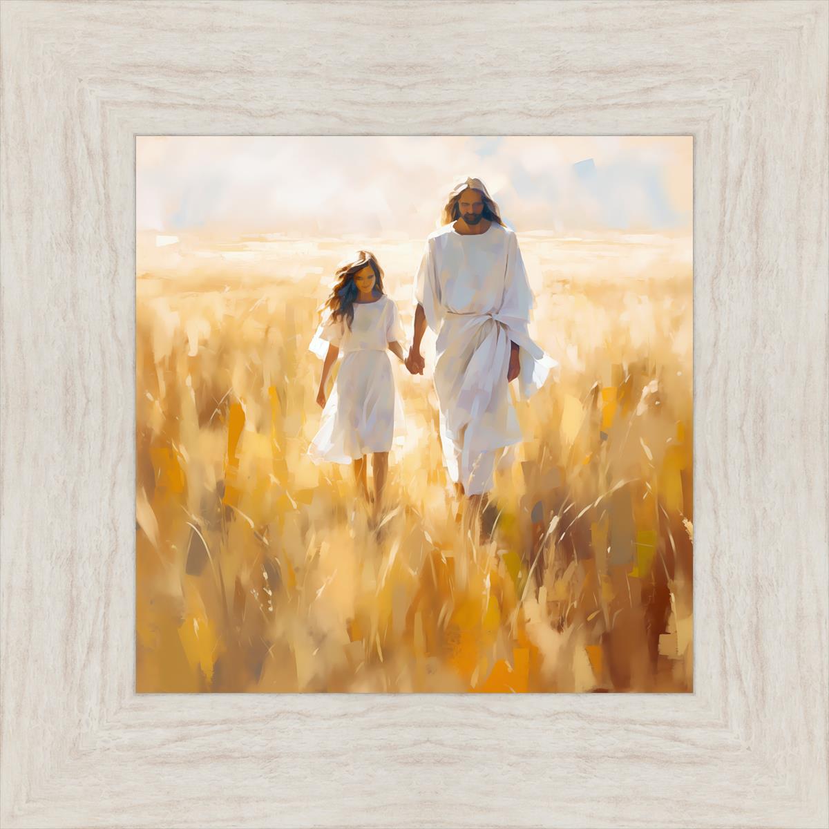This piece was meant to be more abstract with a modern look. I love the bright golden field that reminds us of the beauty we are striving towards in our lives and the lives afterward. A walk with Christ produces that beauty and will eternally propel that beauty into the next life.