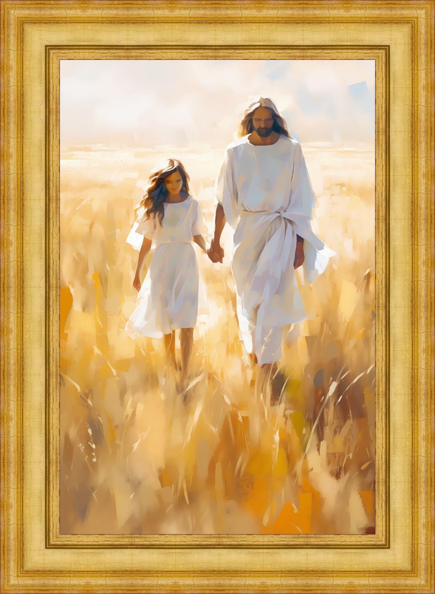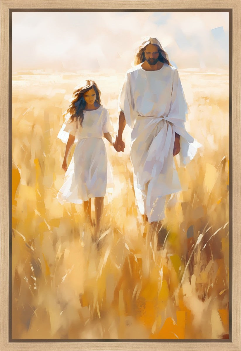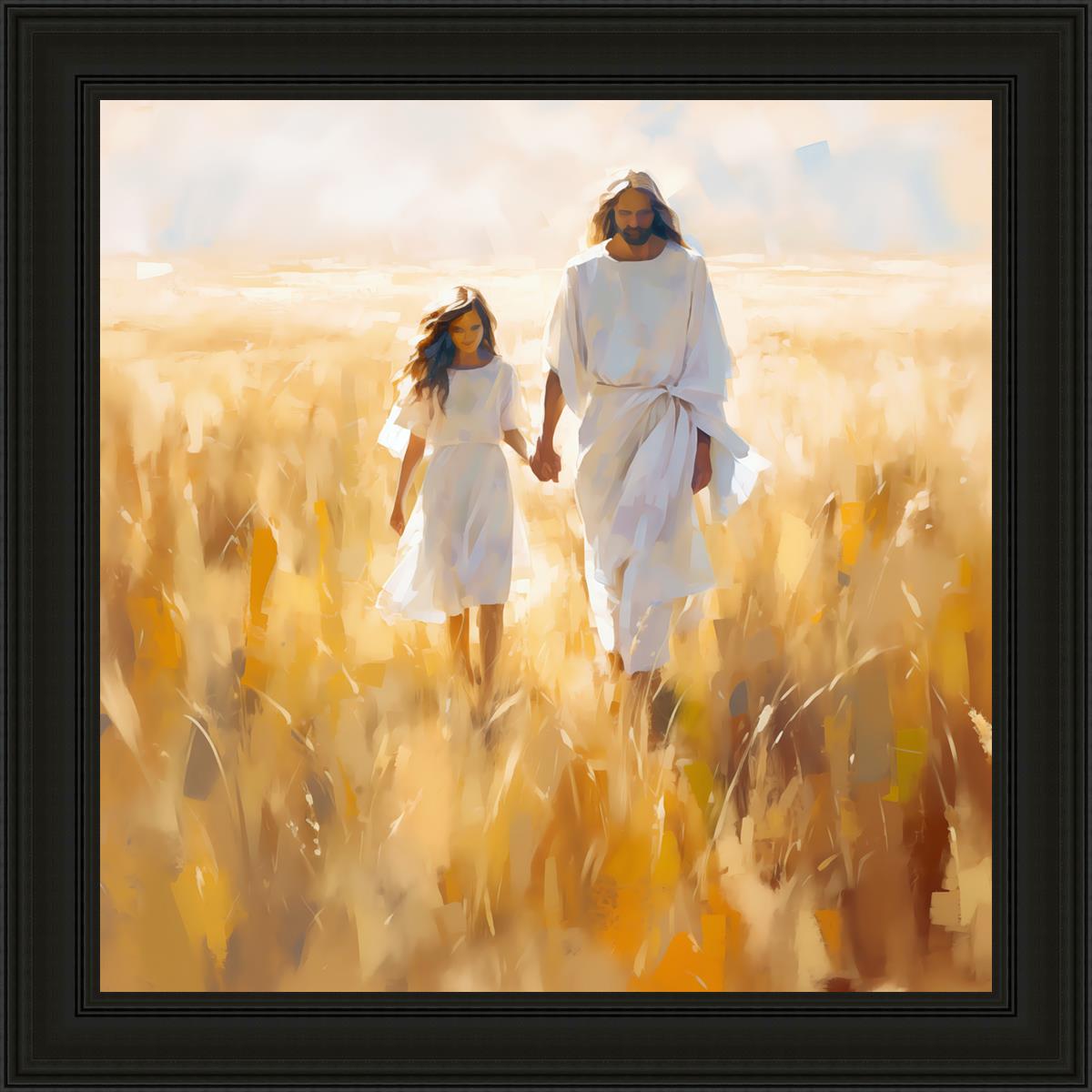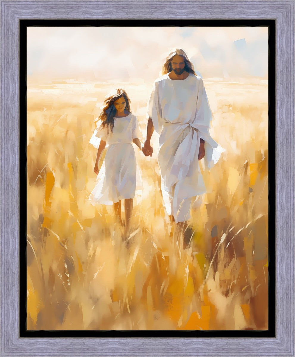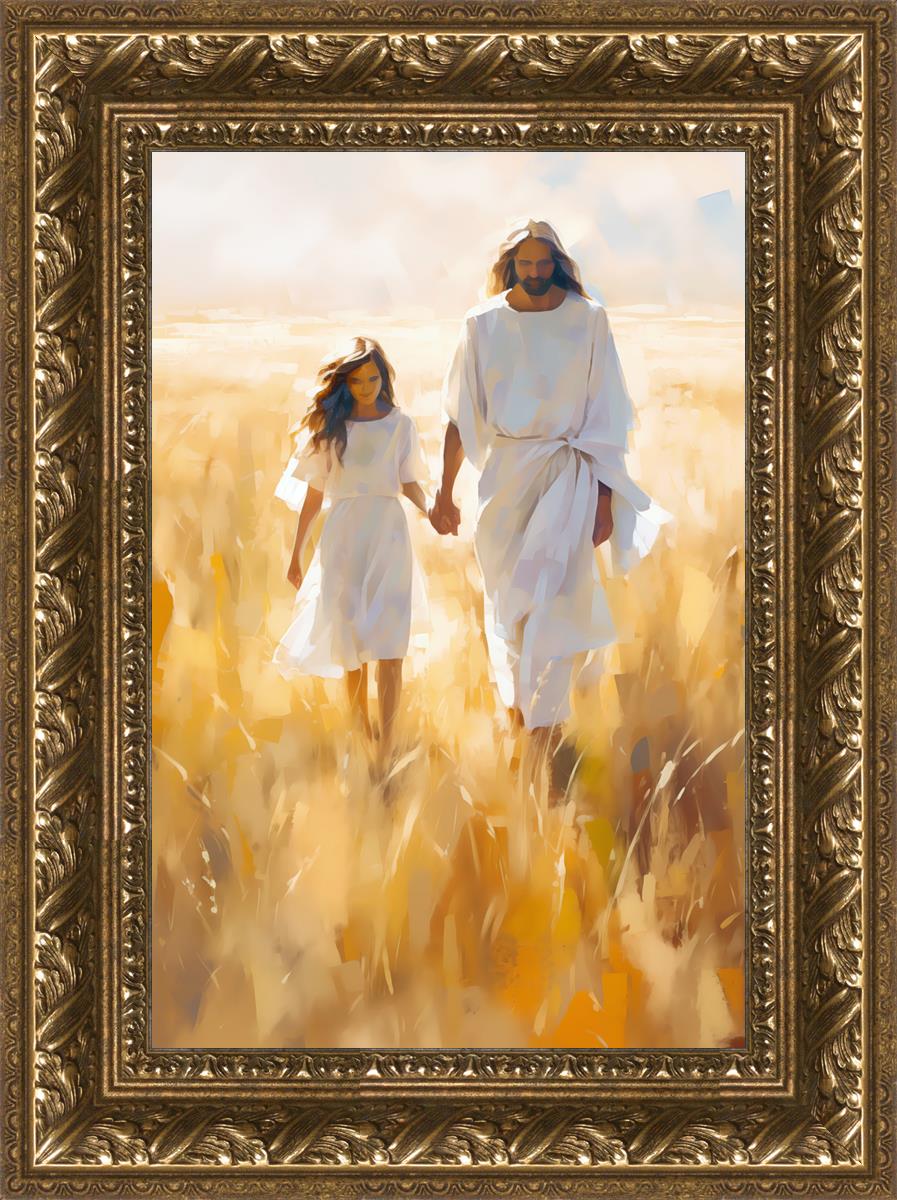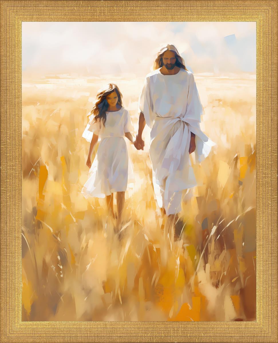 This piece was meant to be more abstract with a modern look. I love the bright golden field that reminds us of the beauty we are striving towards in our lives and the lives afterward. A walk with Christ produces that beauty and will eternally propel that beauty into the next life.