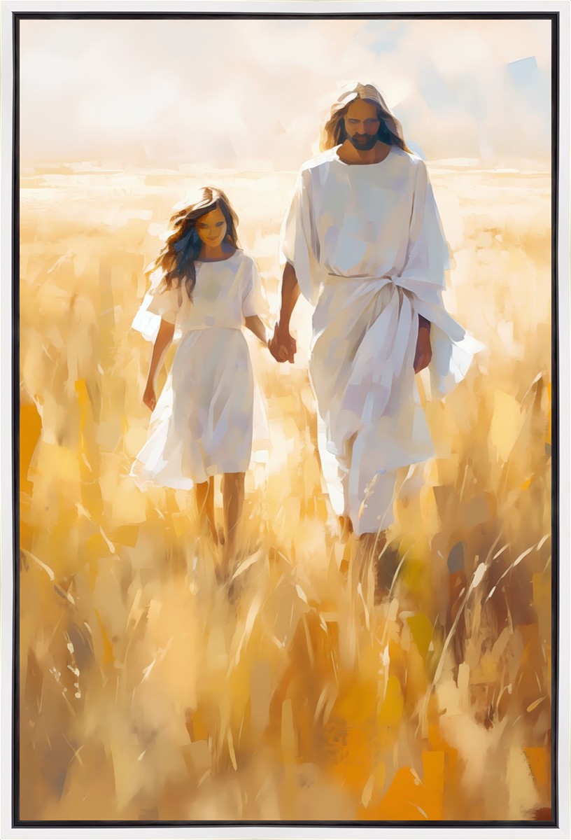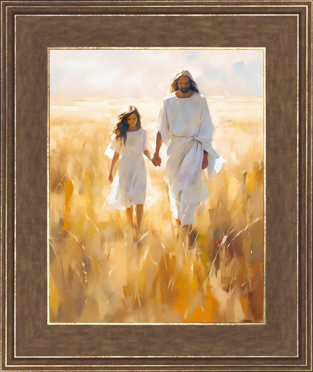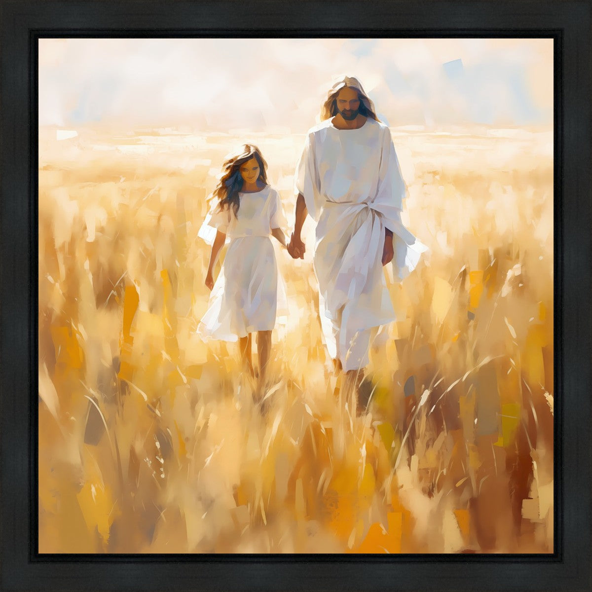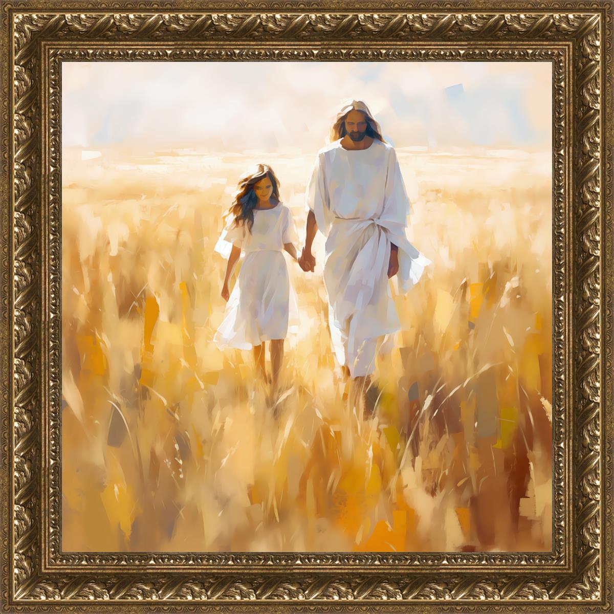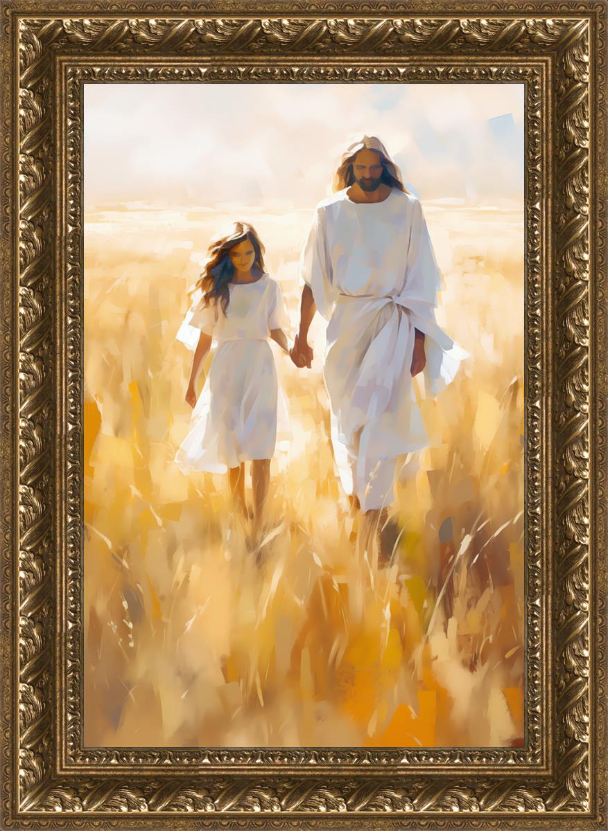 This piece was meant to be more abstract with a modern look. I love the bright golden field that reminds us of the beauty we are striving towards in our lives and the lives afterward. A walk with Christ produces that beauty and will eternally propel that beauty into the next life.