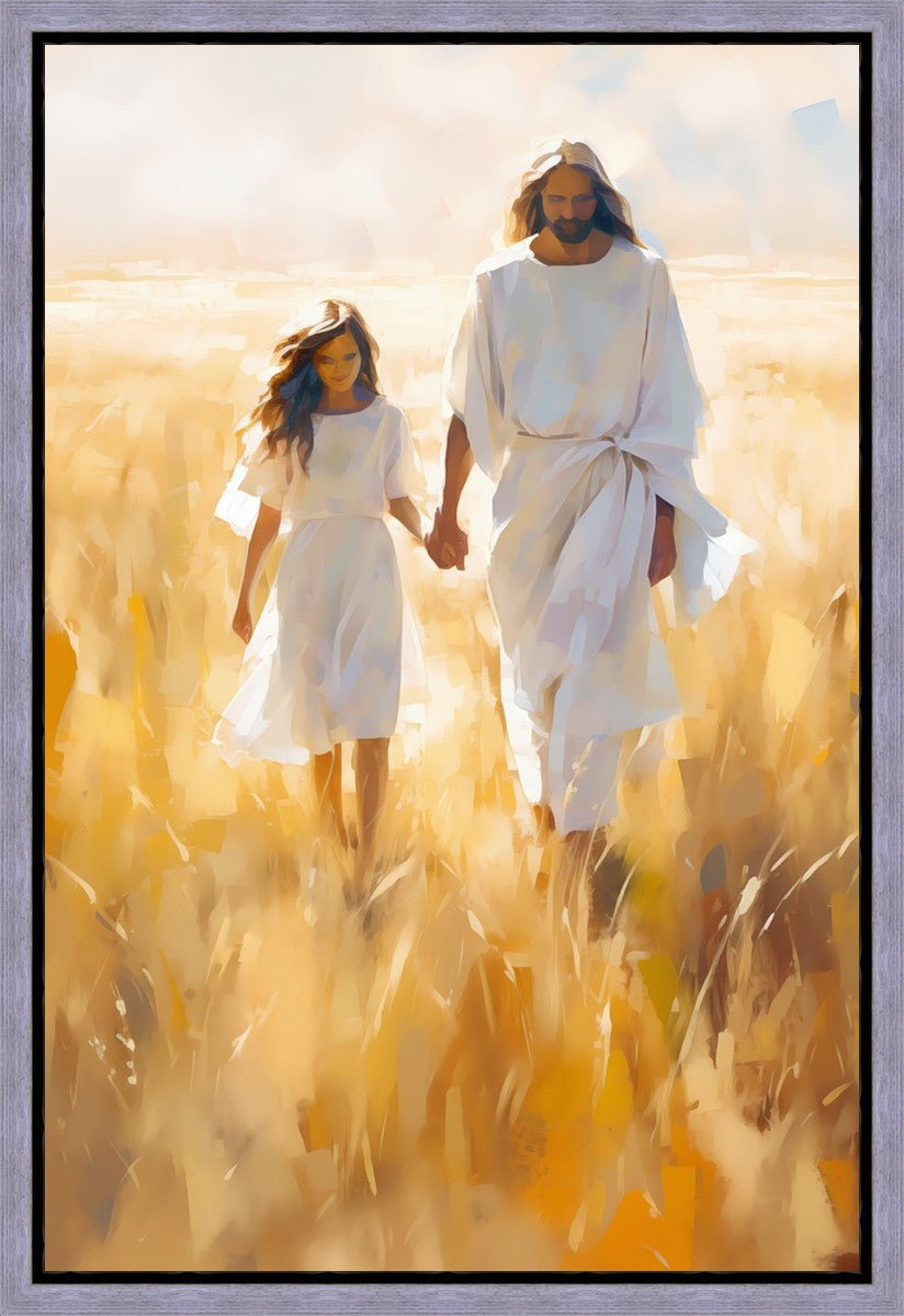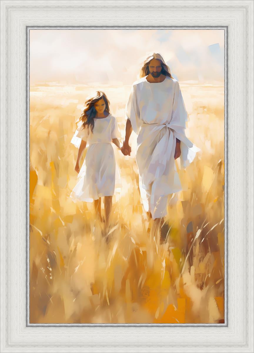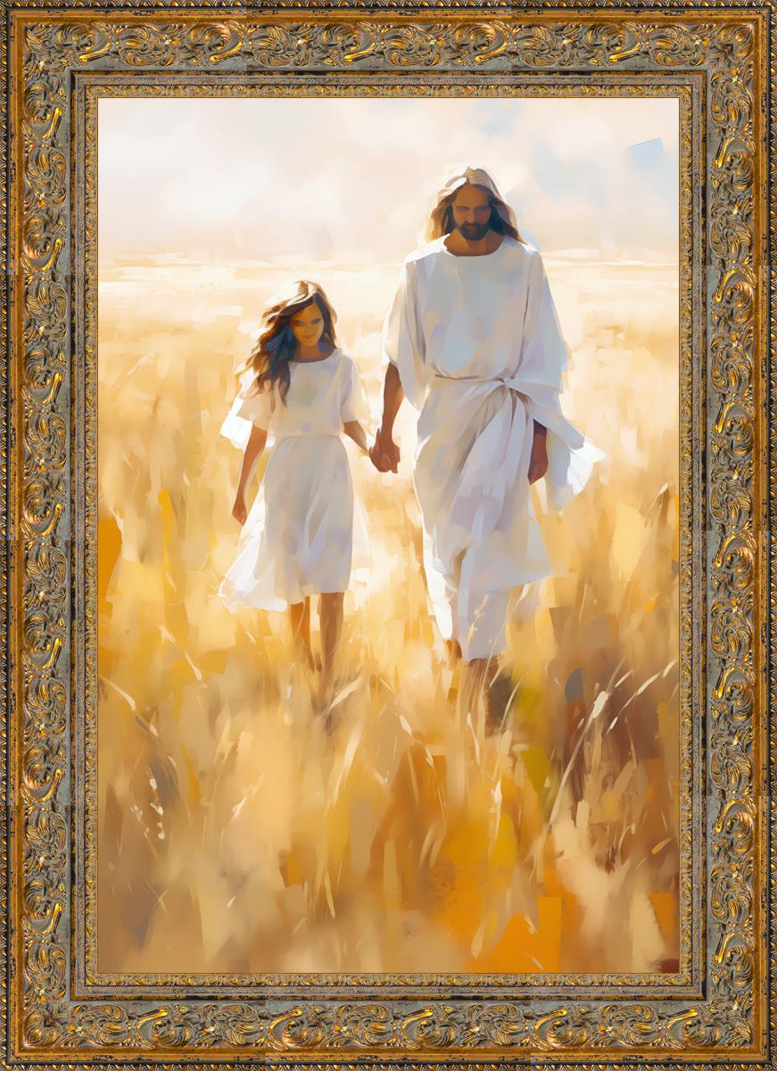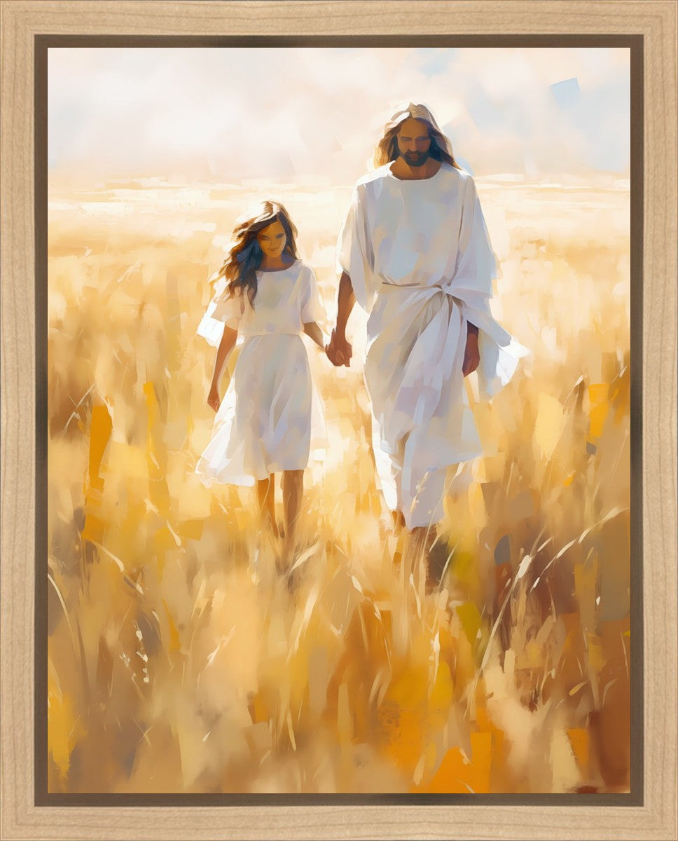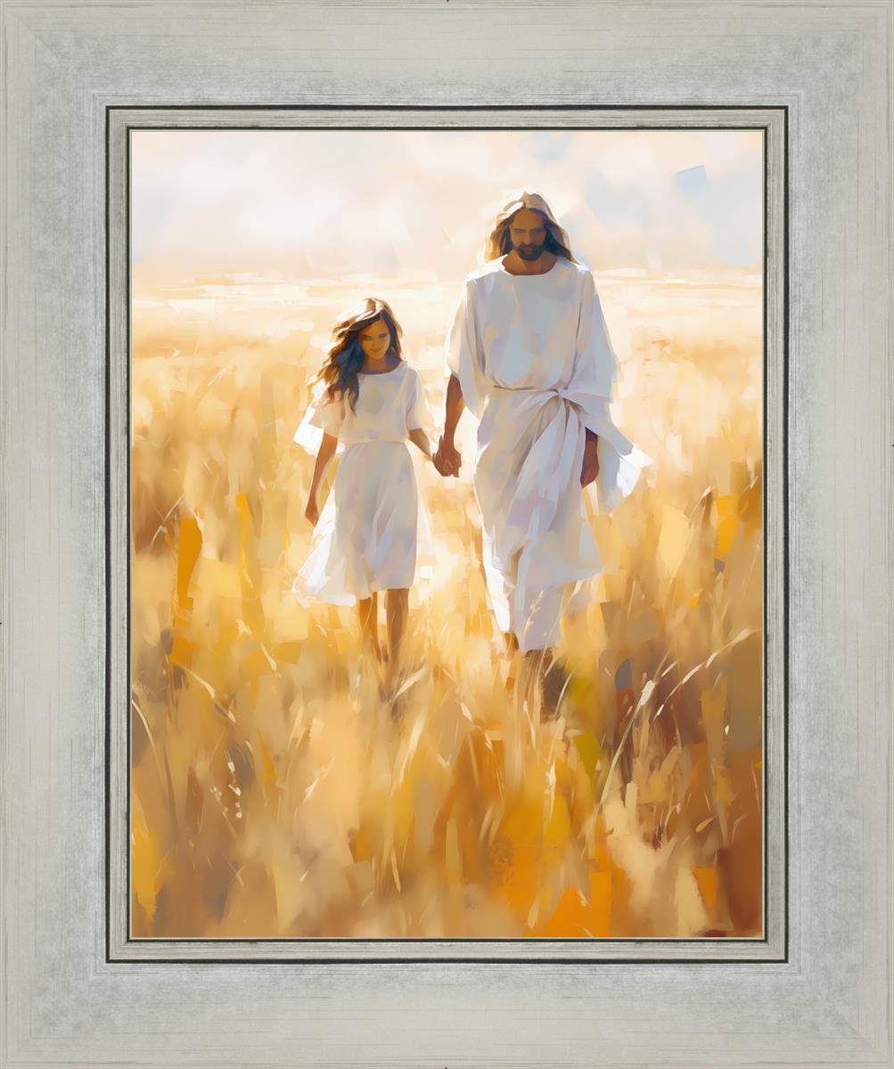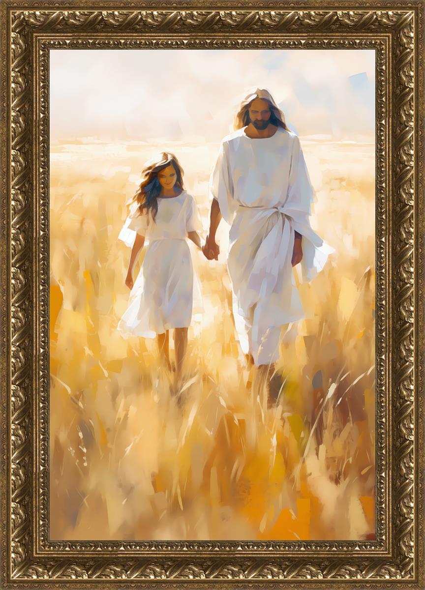 This piece was meant to be more abstract with a modern look. I love the bright golden field that reminds us of the beauty we are striving towards in our lives and the lives afterward. A walk with Christ produces that beauty and will eternally propel that beauty into the next life.