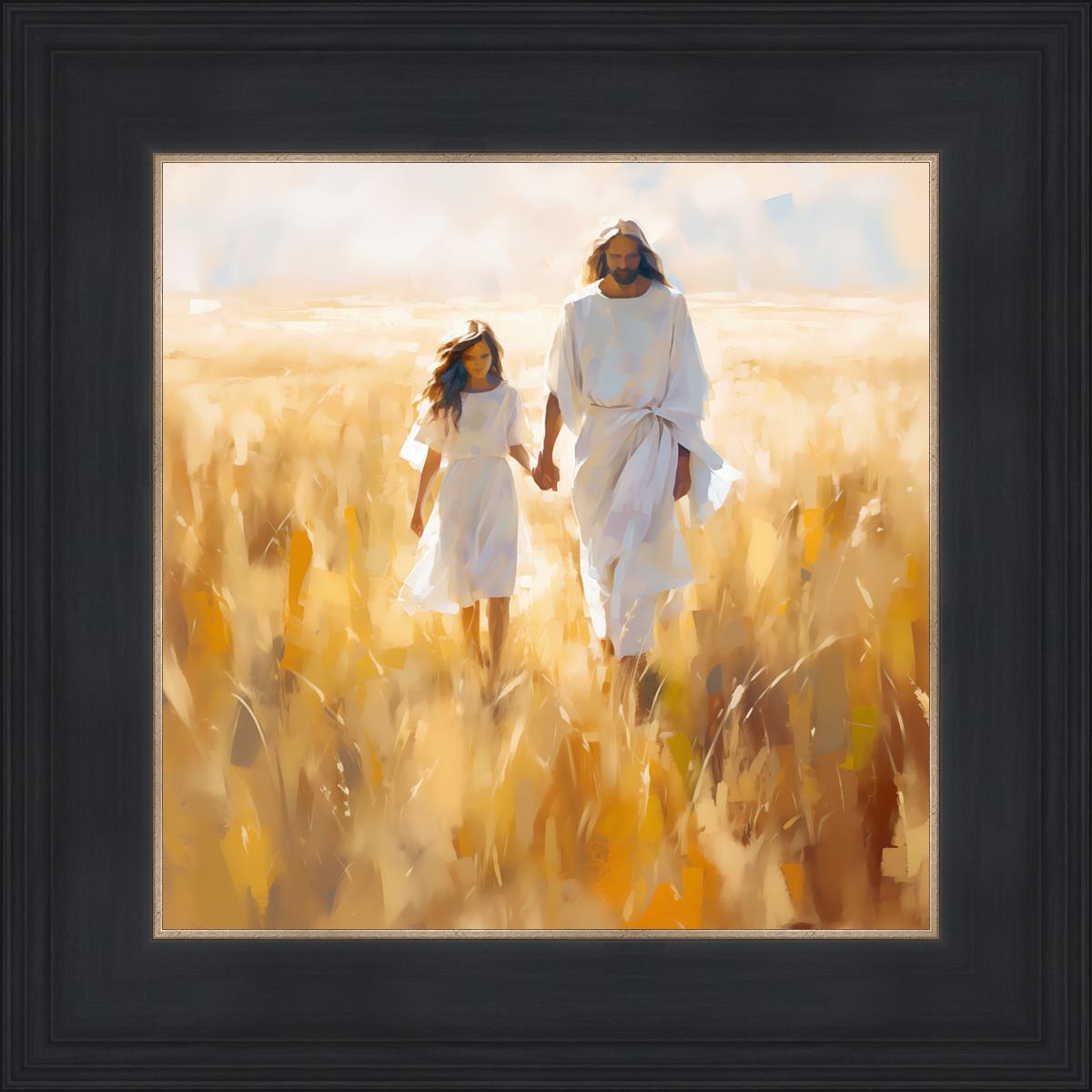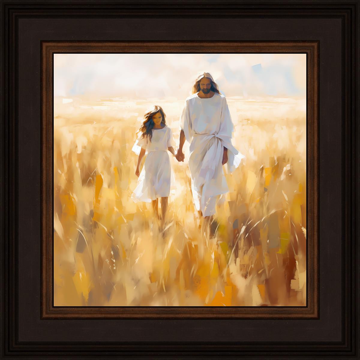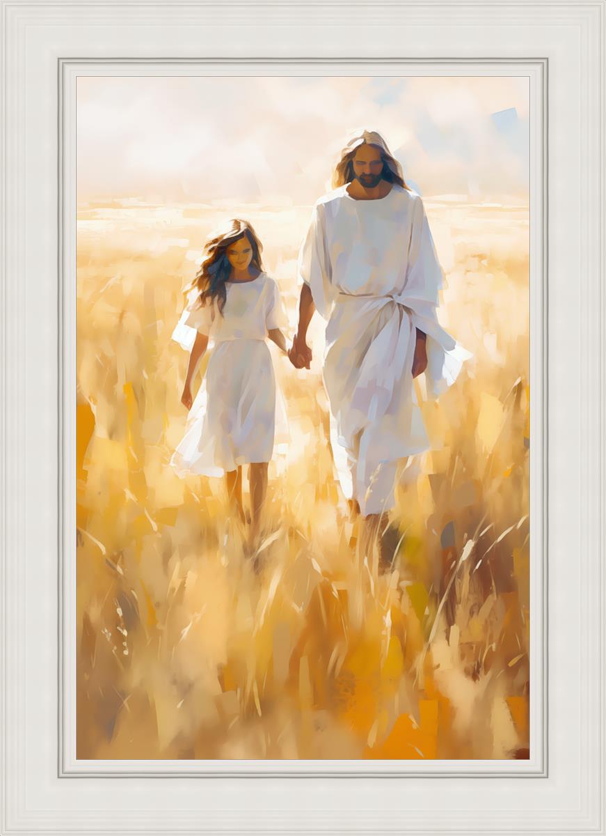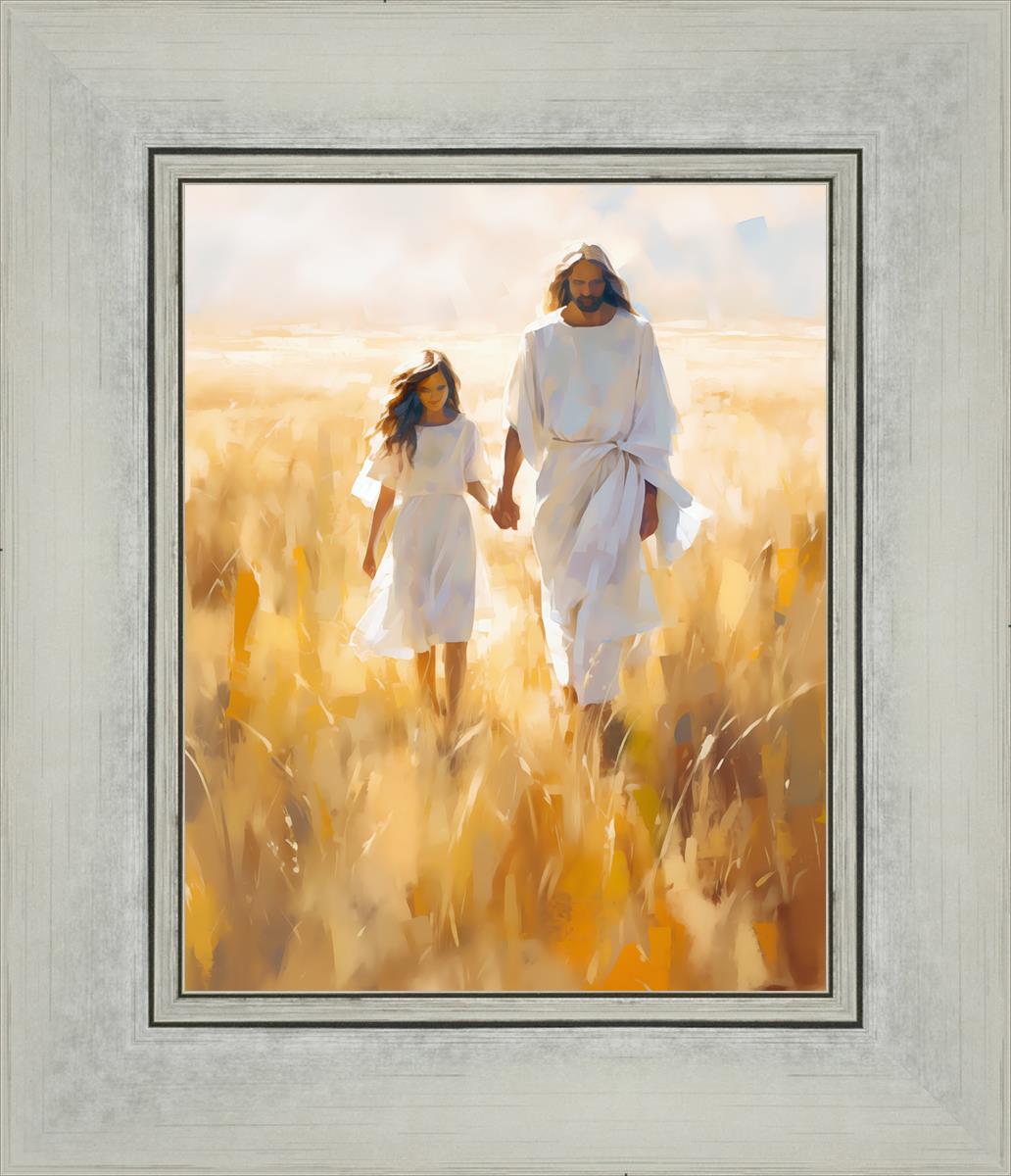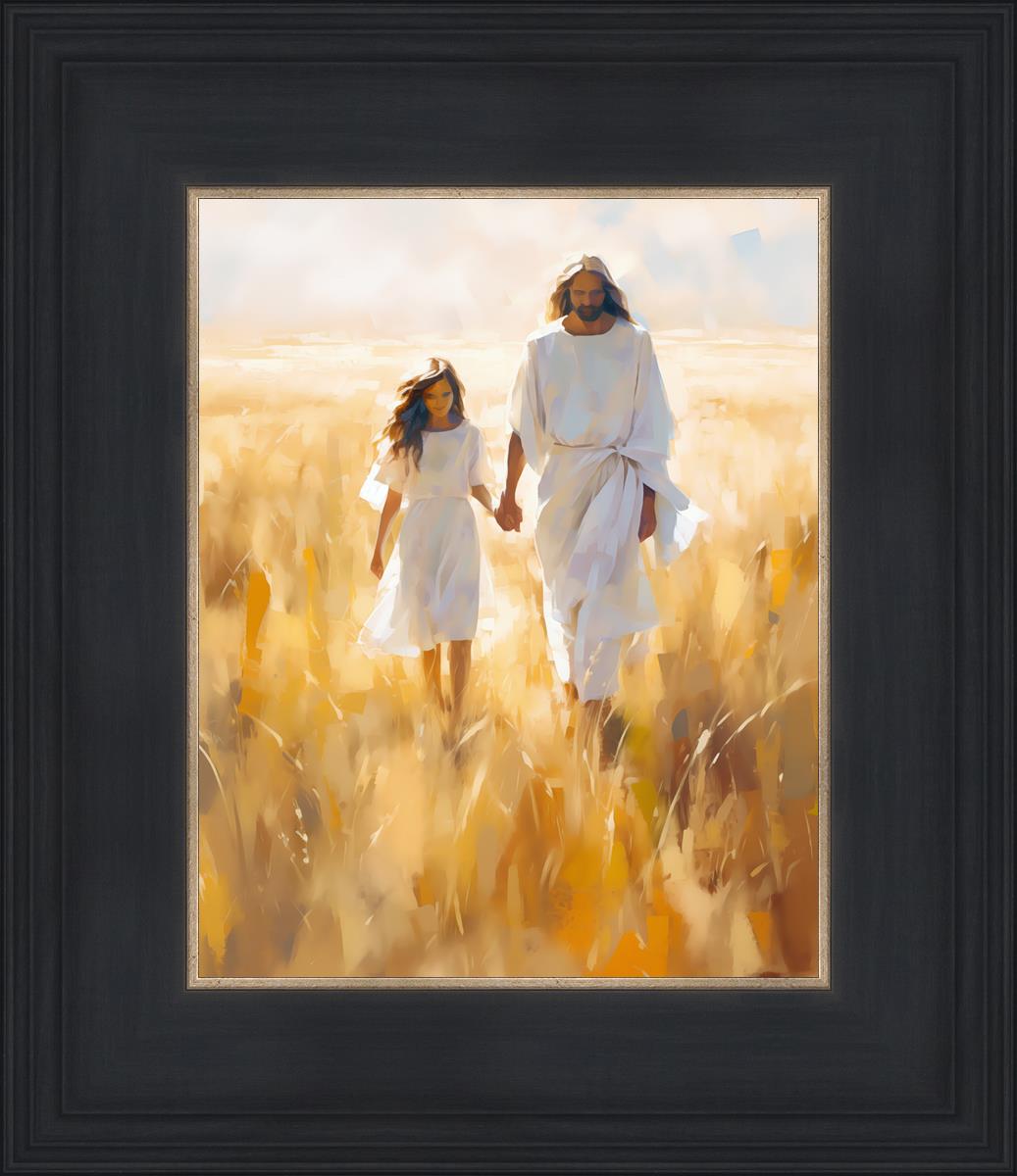 This piece was meant to be more abstract with a modern look. I love the bright golden field that reminds us of the beauty we are striving towards in our lives and the lives afterward. A walk with Christ produces that beauty and will eternally propel that beauty into the next life.