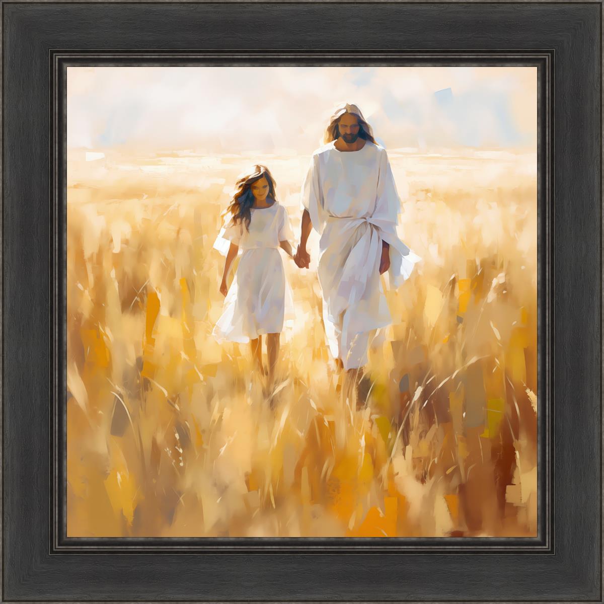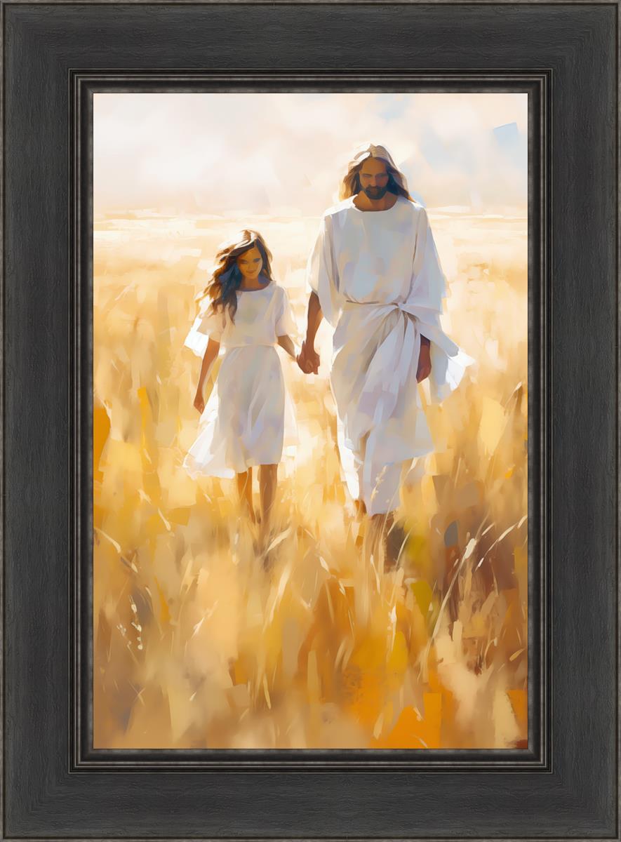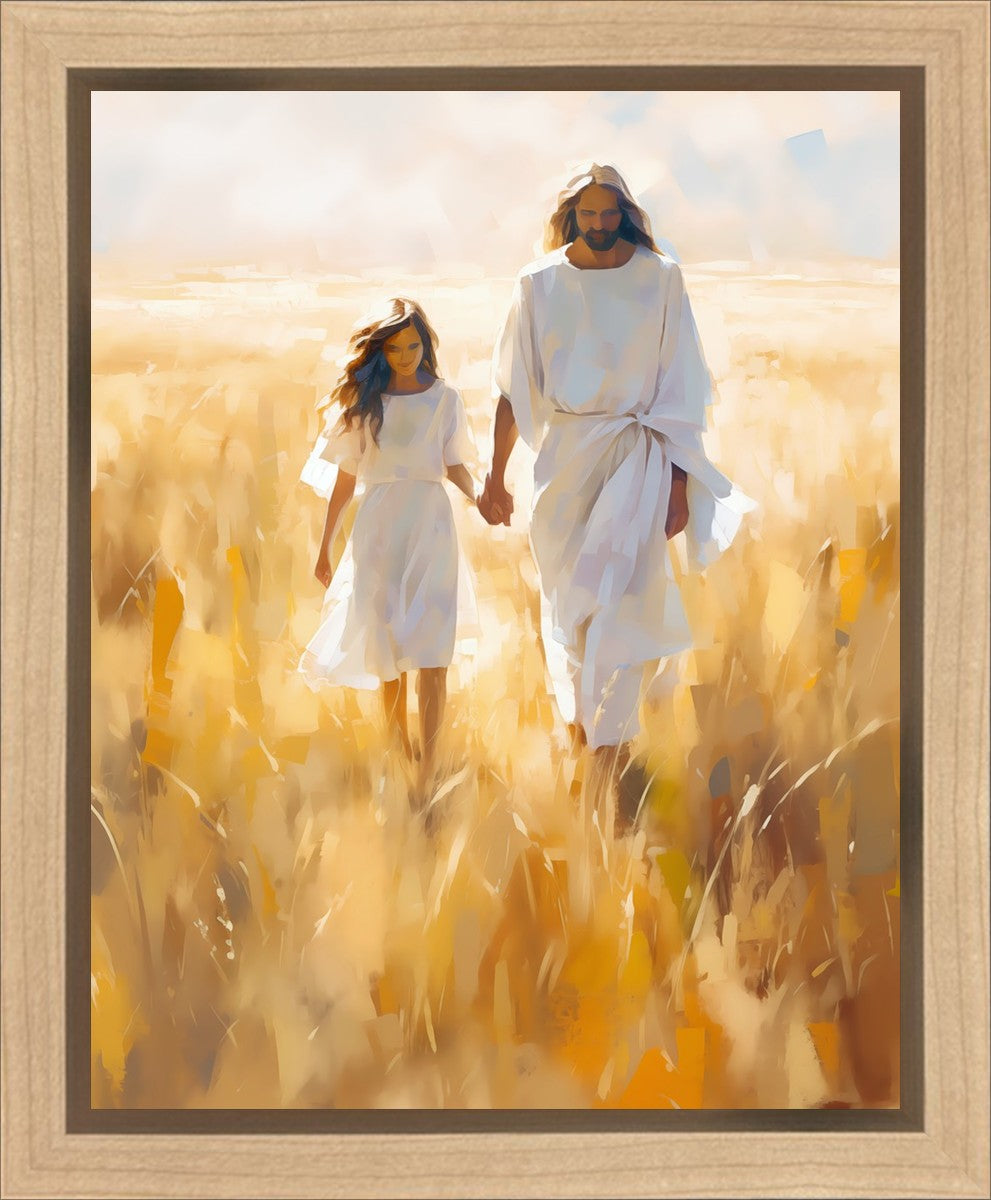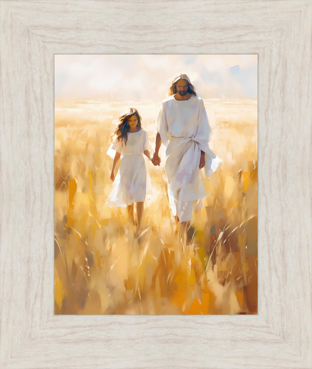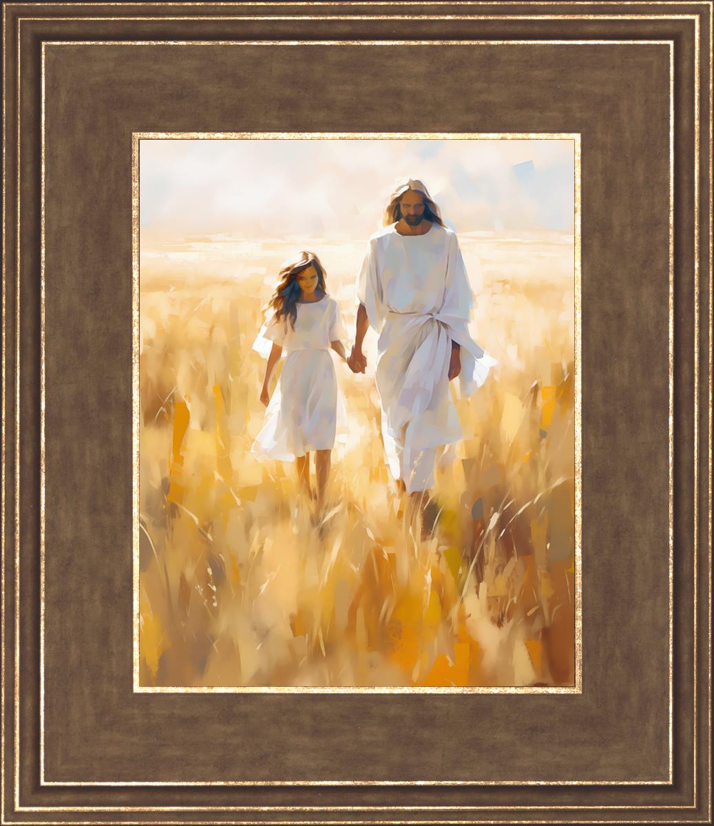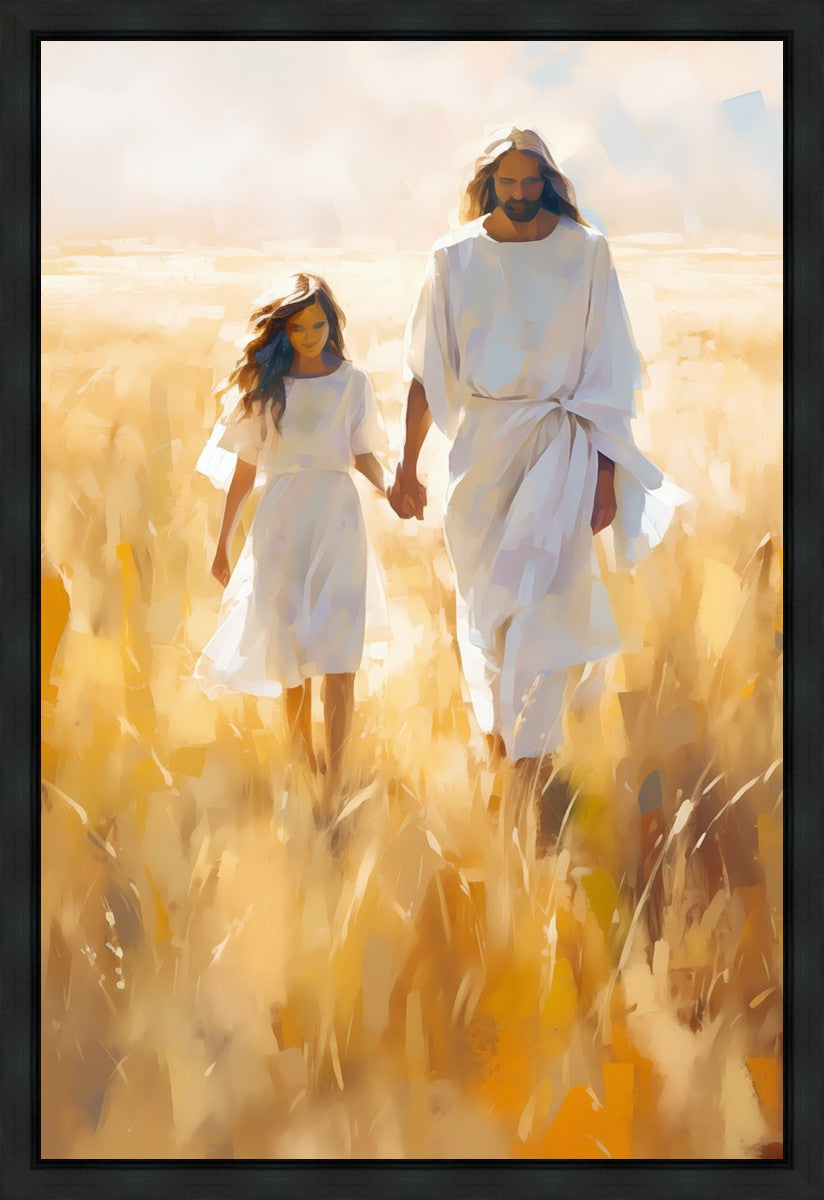 This piece was meant to be more abstract with a modern look. I love the bright golden field that reminds us of the beauty we are striving towards in our lives and the lives afterward. A walk with Christ produces that beauty and will eternally propel that beauty into the next life.