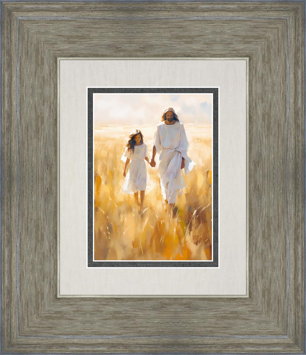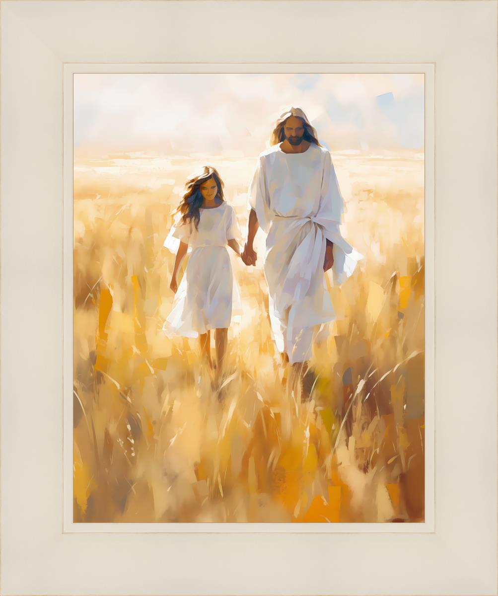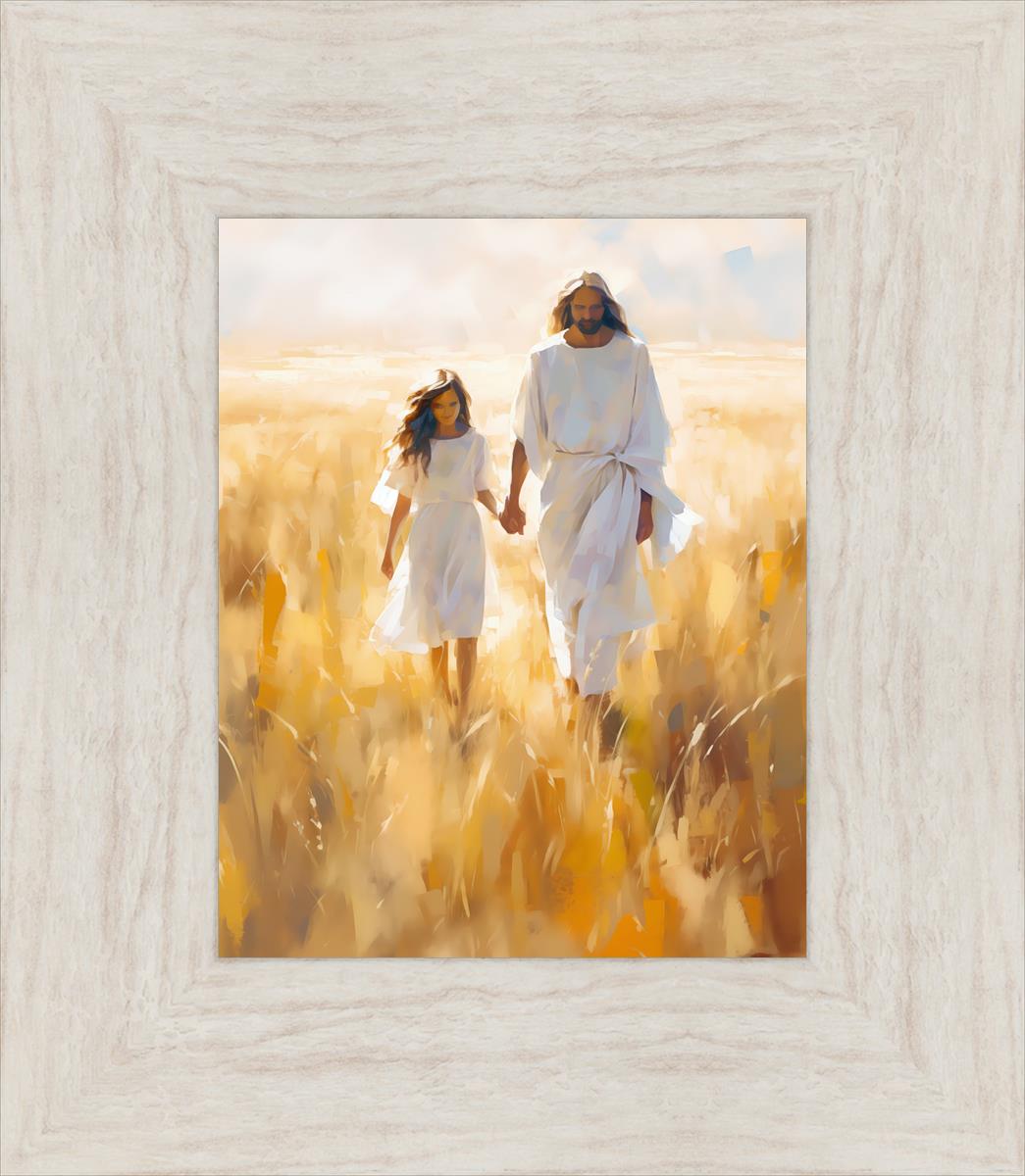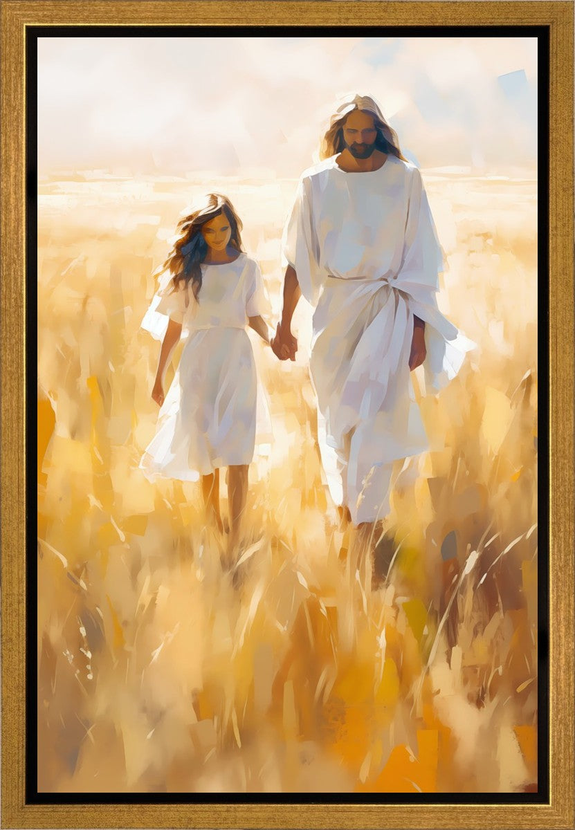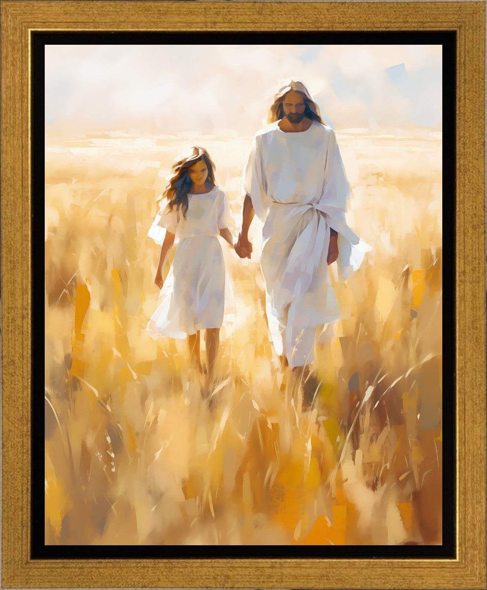 This piece was meant to be more abstract with a modern look. I love the bright golden field that reminds us of the beauty we are striving towards in our lives and the lives afterward. A walk with Christ produces that beauty and will eternally propel that beauty into the next life.
