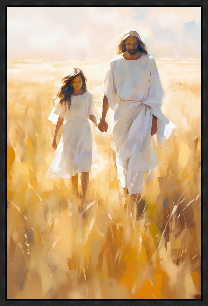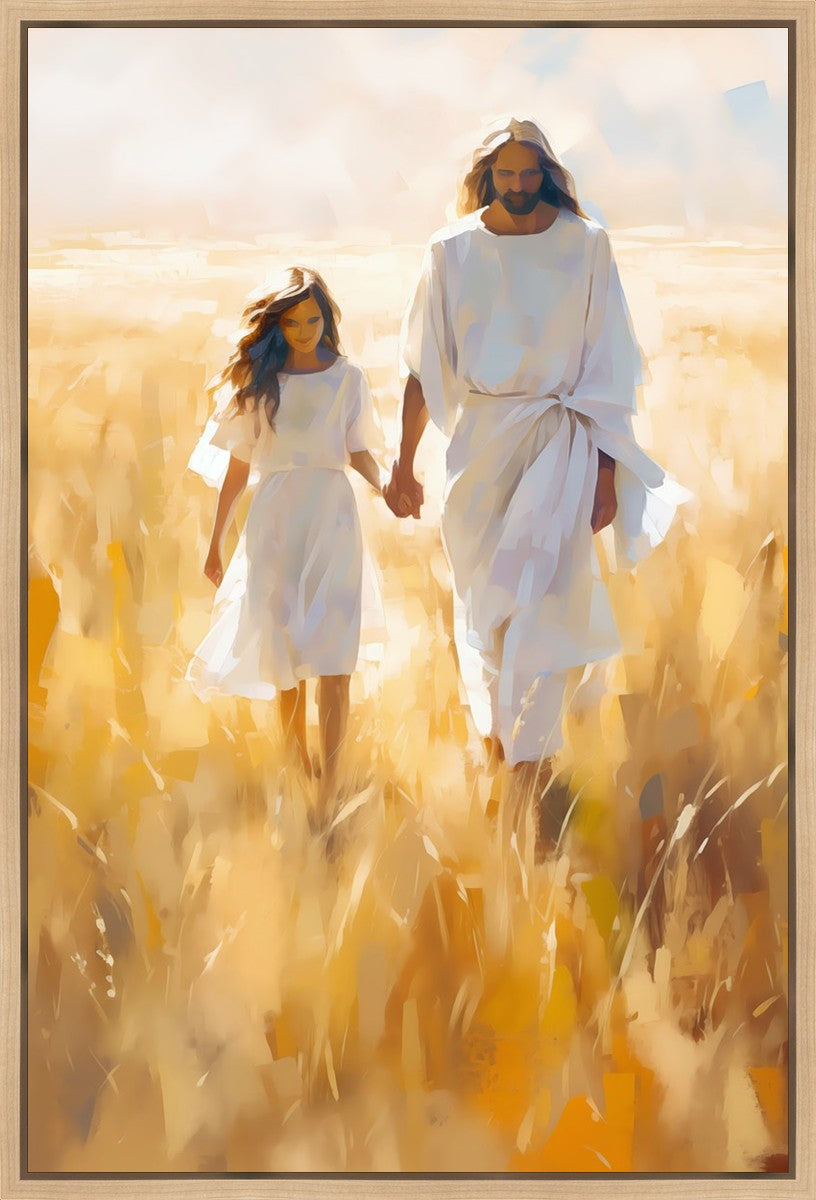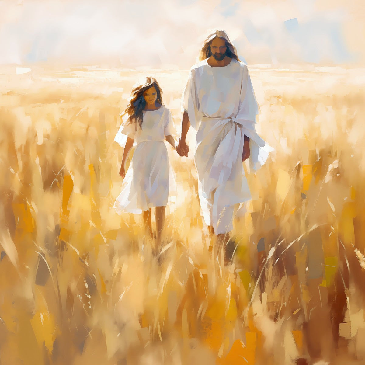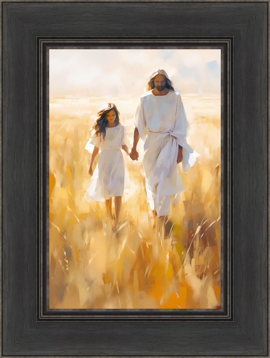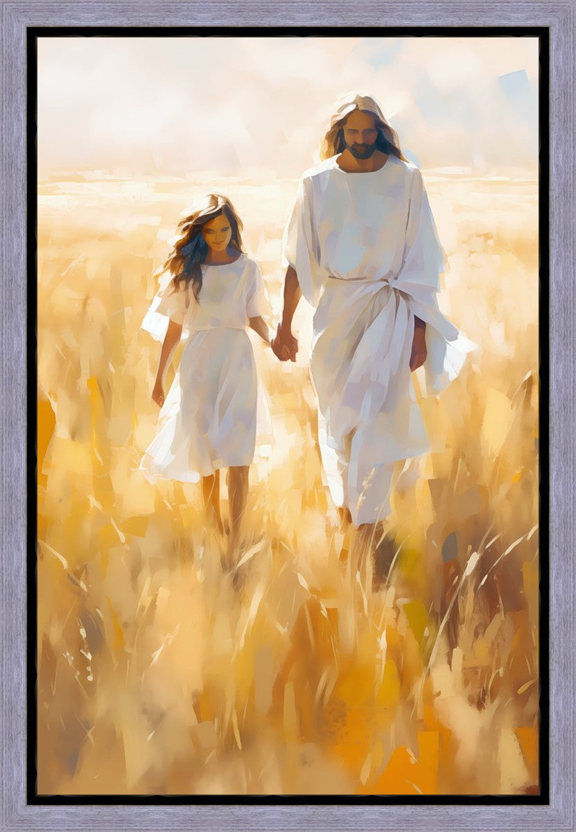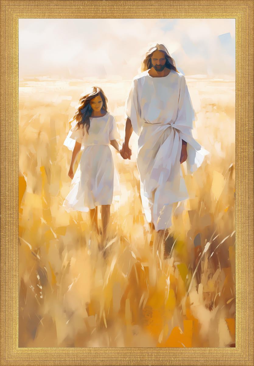 This piece was meant to be more abstract with a modern look. I love the bright golden field that reminds us of the beauty we are striving towards in our lives and the lives afterward. A walk with Christ produces that beauty and will eternally propel that beauty into the next life.