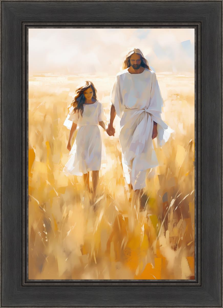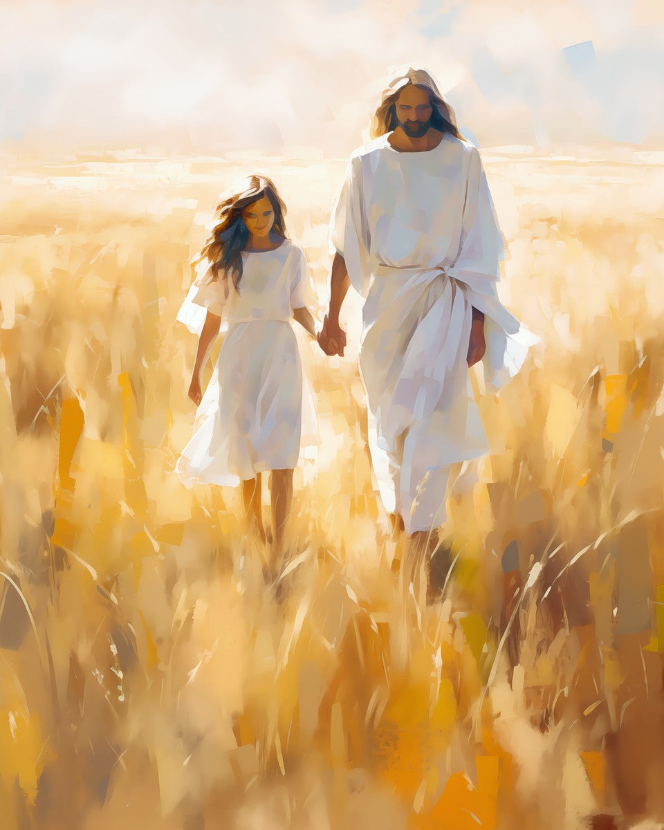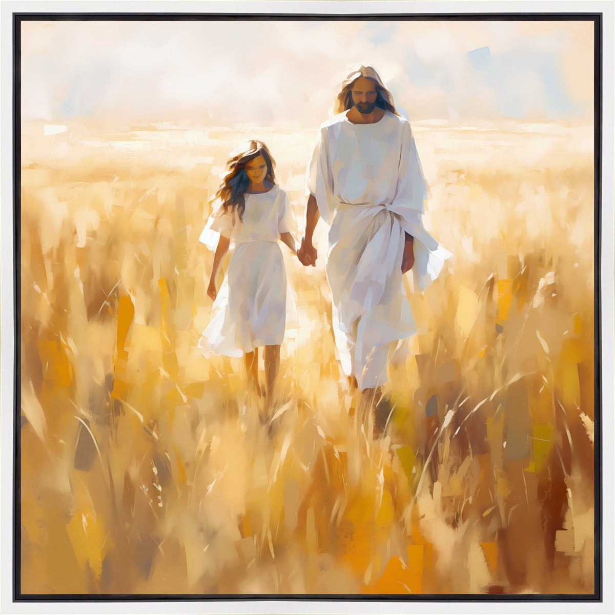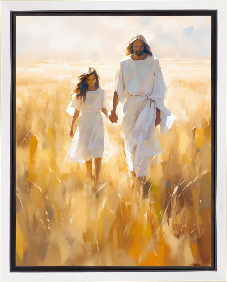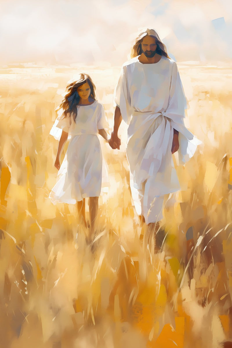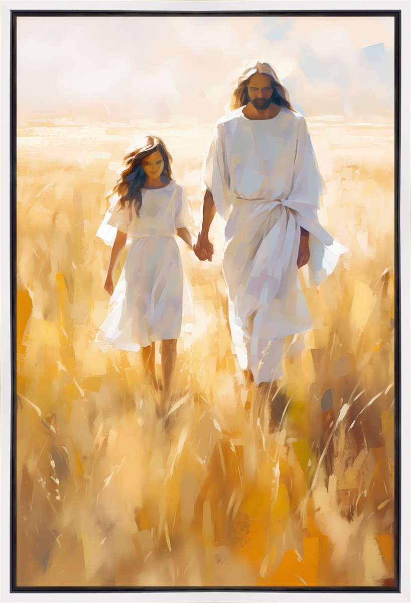 This piece was meant to be more abstract with a modern look. I love the bright golden field that reminds us of the beauty we are striving towards in our lives and the lives afterward. A walk with Christ produces that beauty and will eternally propel that beauty into the next life.