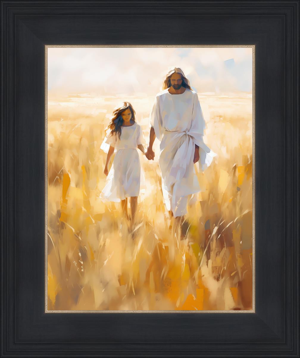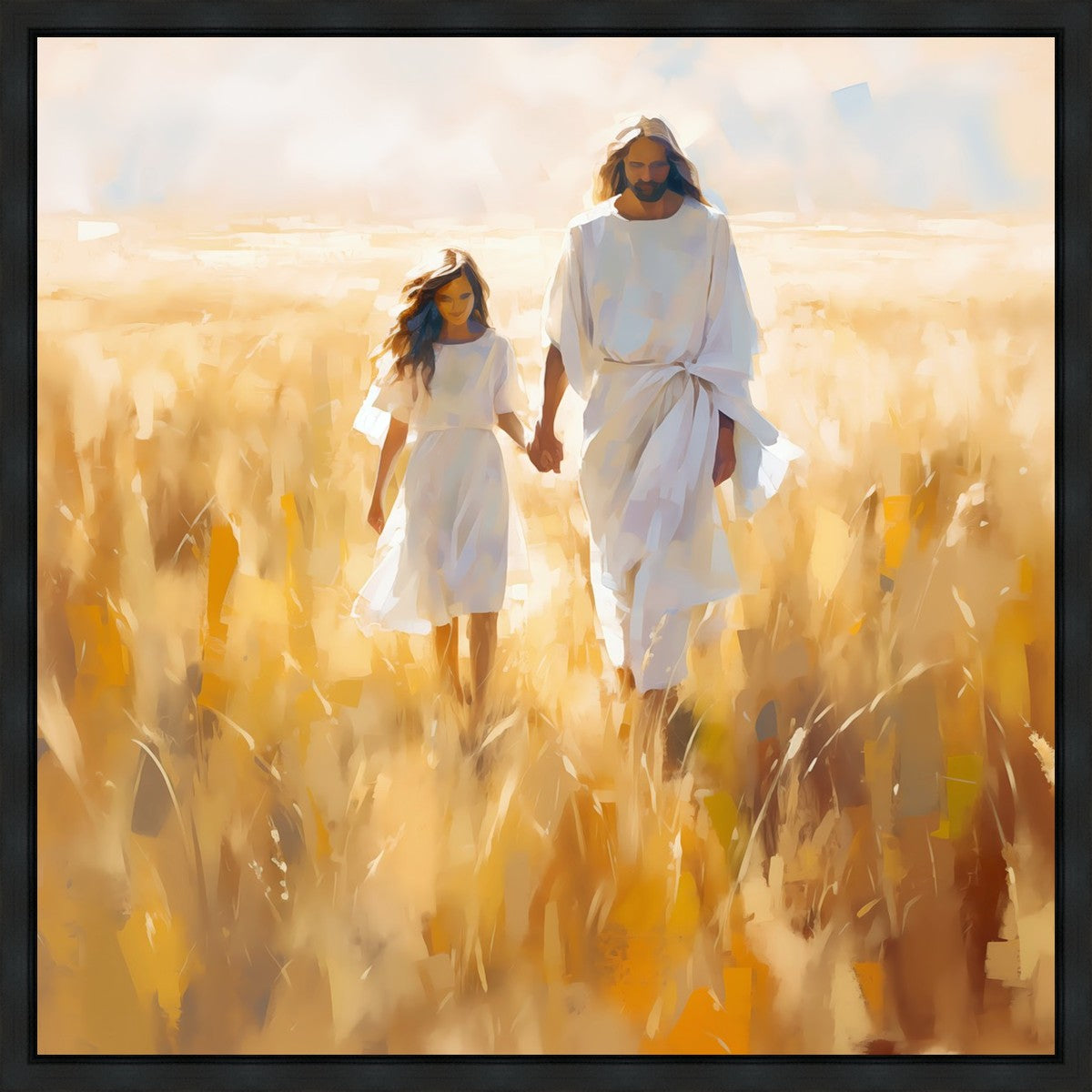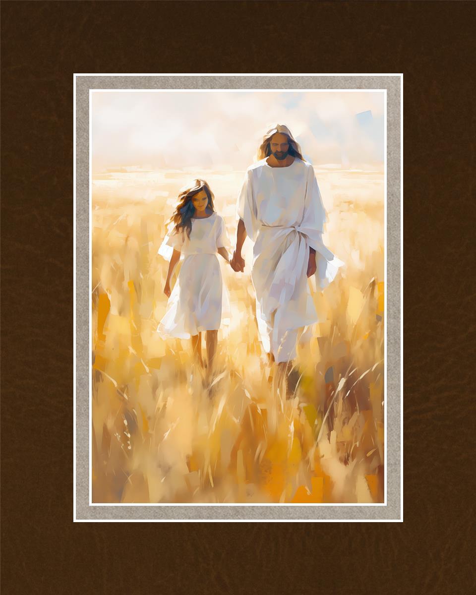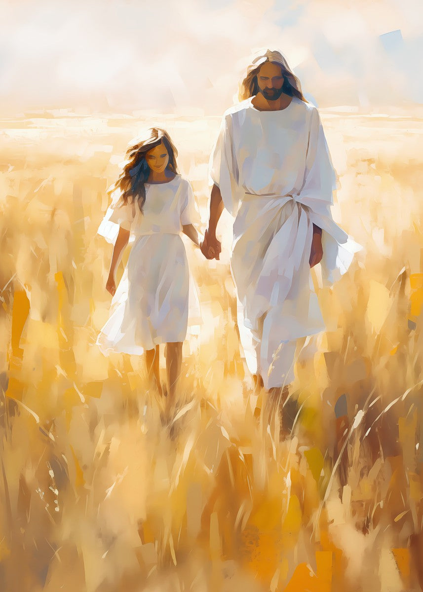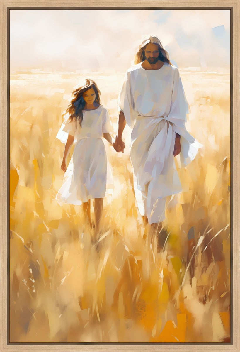 This piece was meant to be more abstract with a modern look. I love the bright golden field that reminds us of the beauty we are striving towards in our lives and the lives afterward. A walk with Christ produces that beauty and will eternally propel that beauty into the next life.