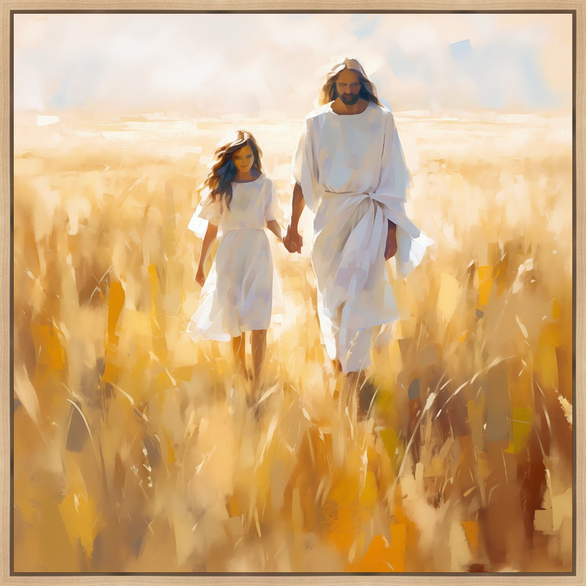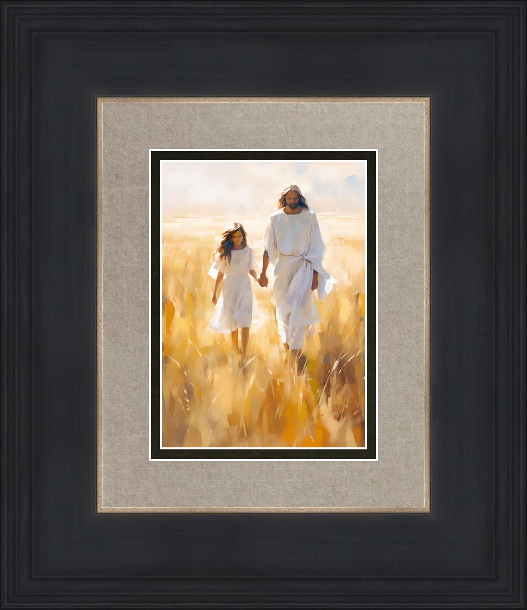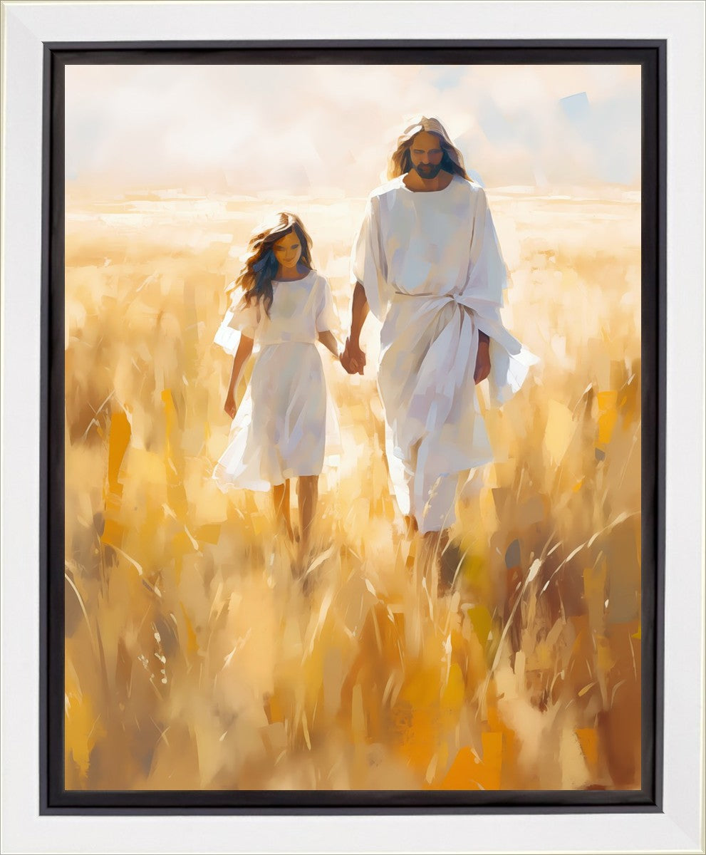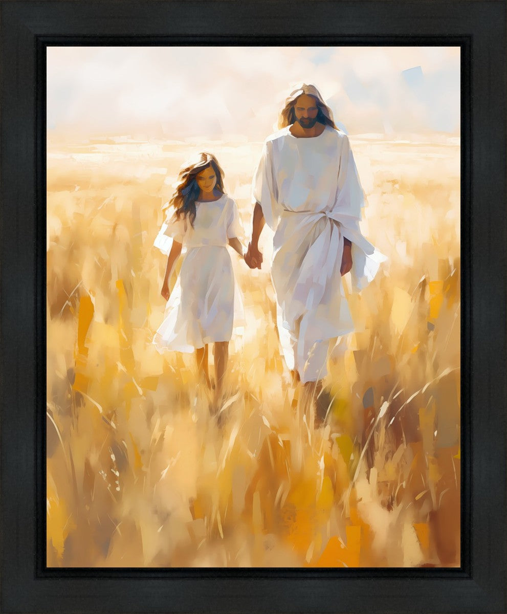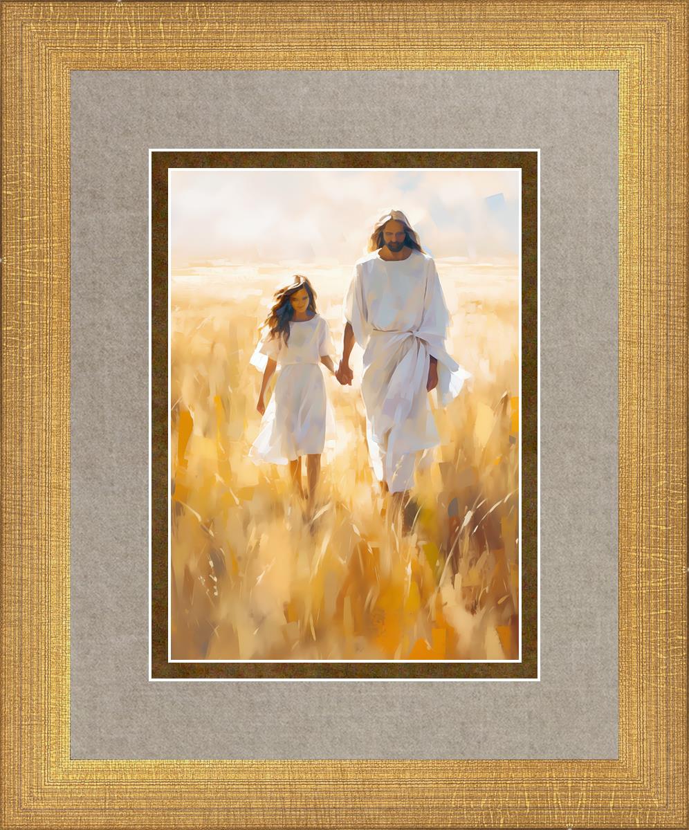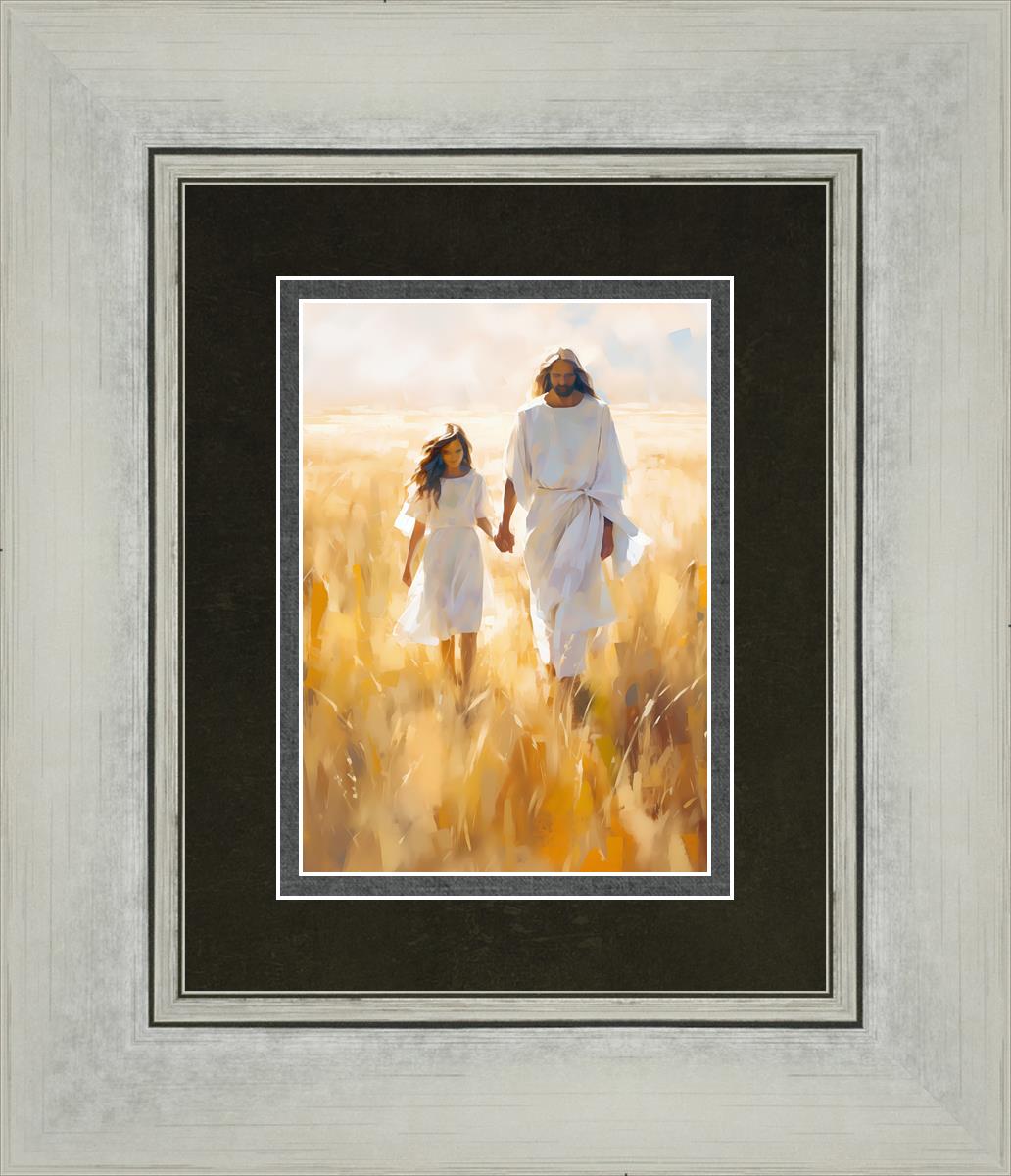 This piece was meant to be more abstract with a modern look. I love the bright golden field that reminds us of the beauty we are striving towards in our lives and the lives afterward. A walk with Christ produces that beauty and will eternally propel that beauty into the next life.