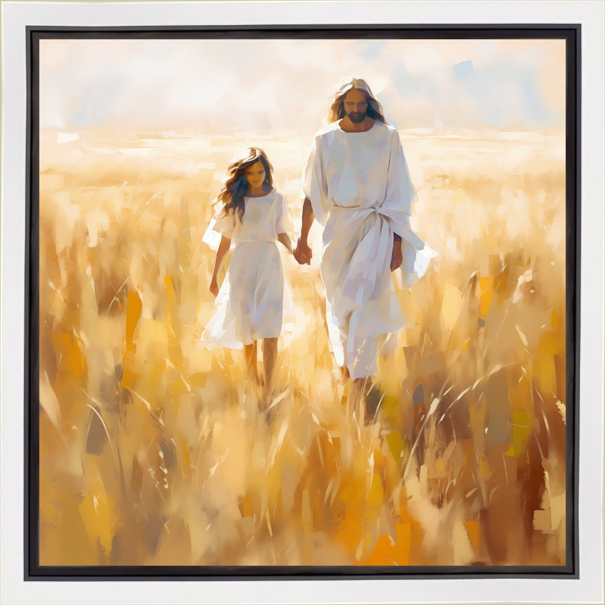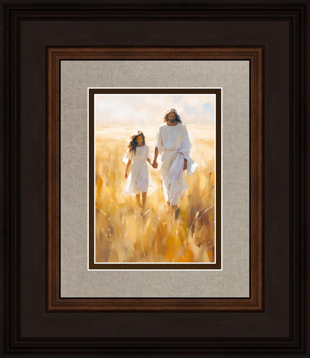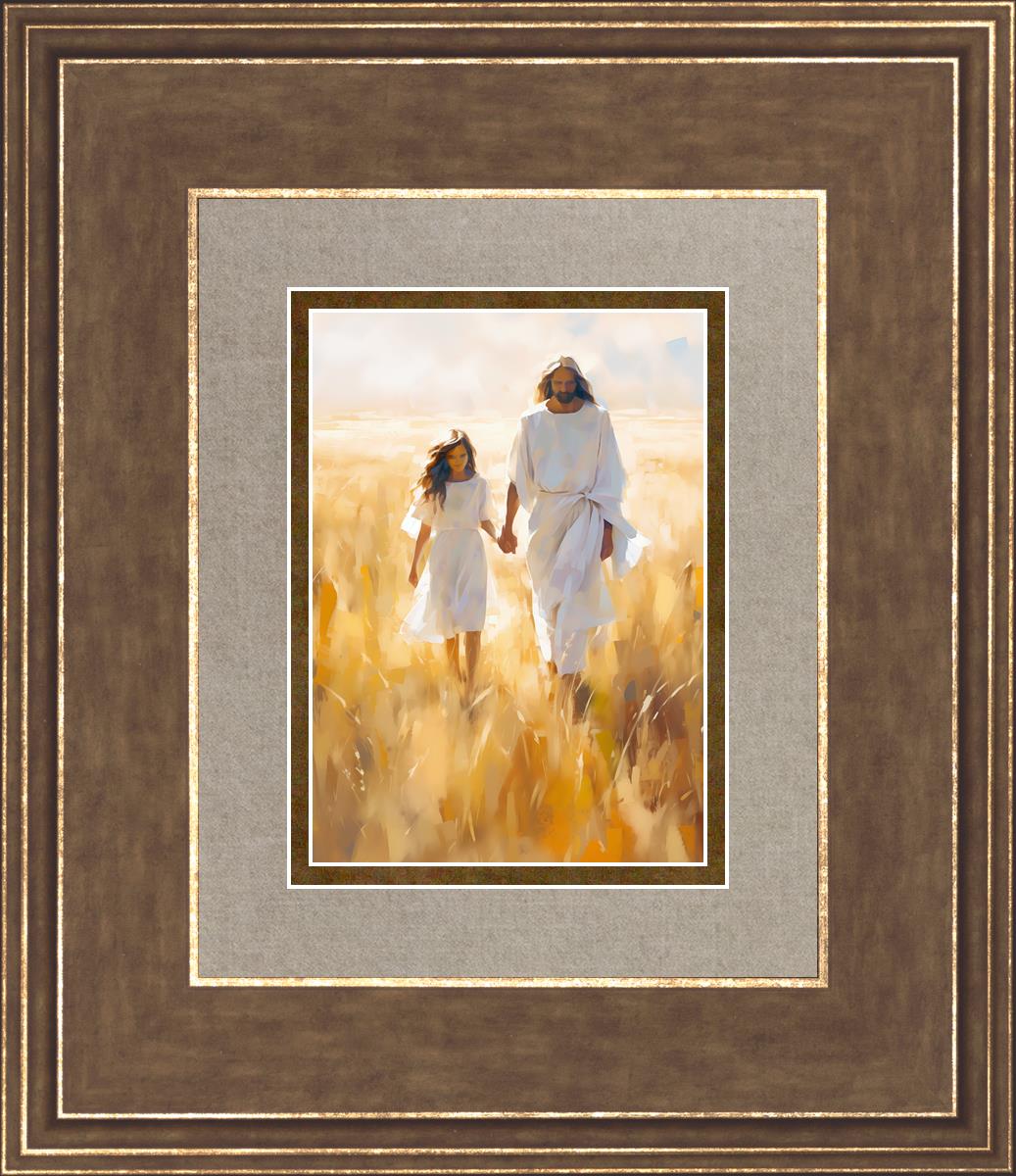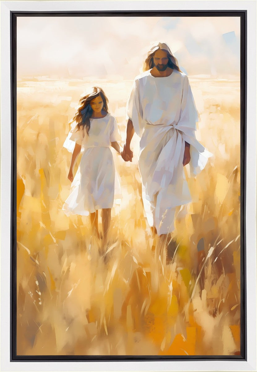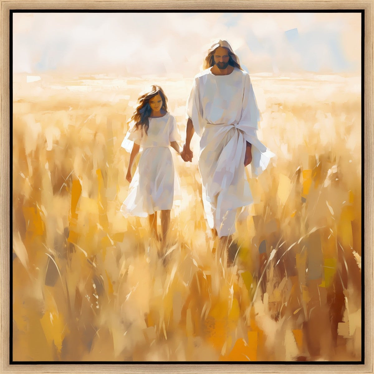 This piece was meant to be more abstract with a modern look. I love the bright golden field that reminds us of the beauty we are striving towards in our lives and the lives afterward. A walk with Christ produces that beauty and will eternally propel that beauty into the next life.