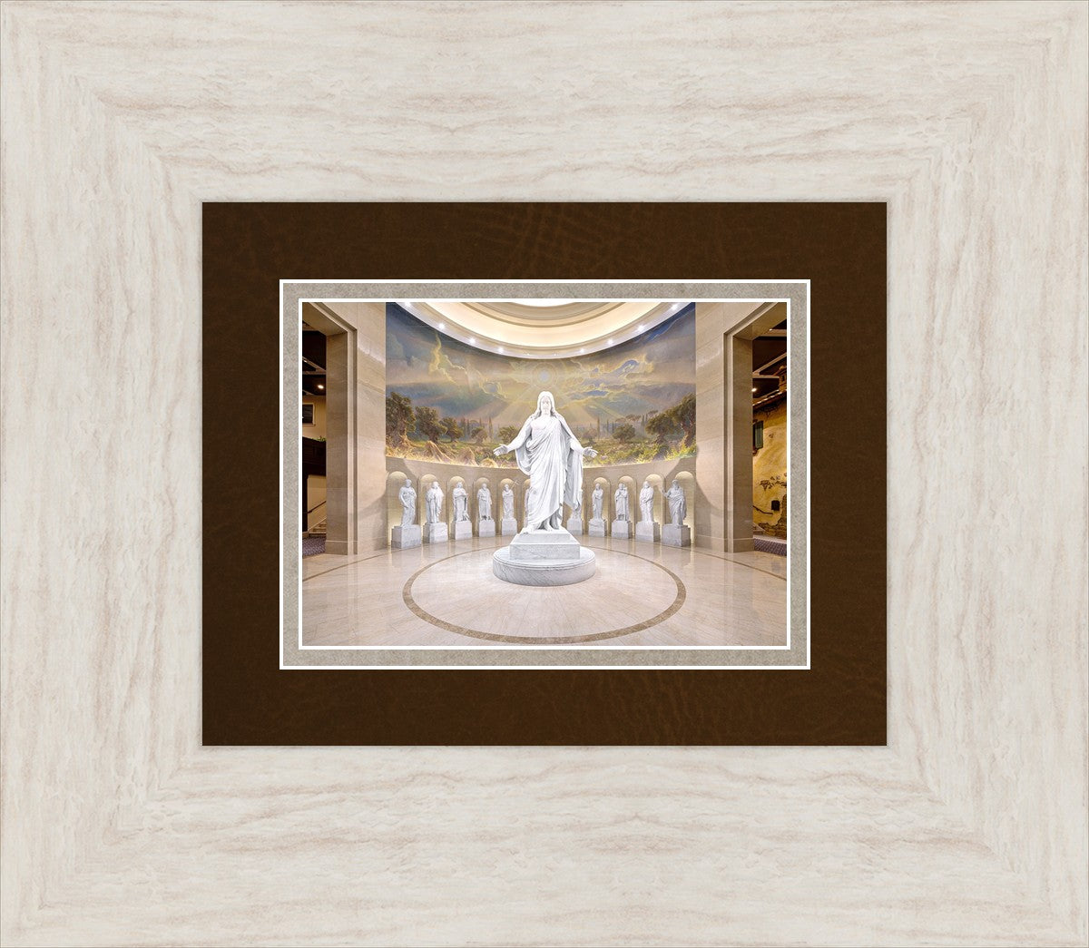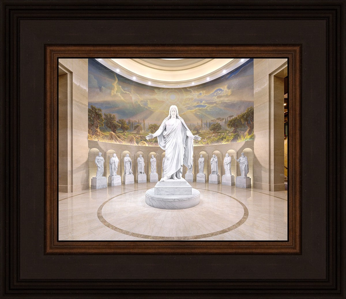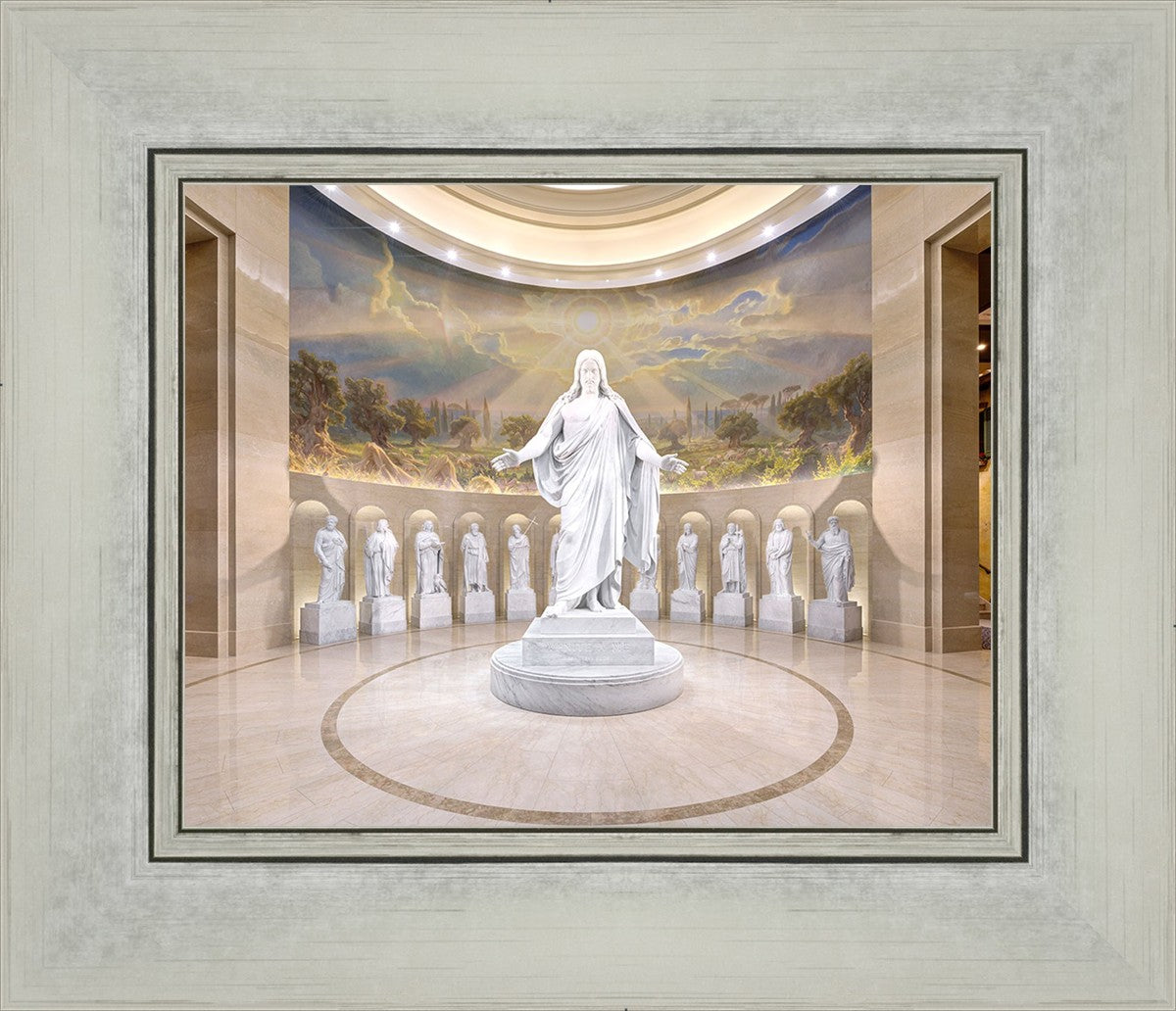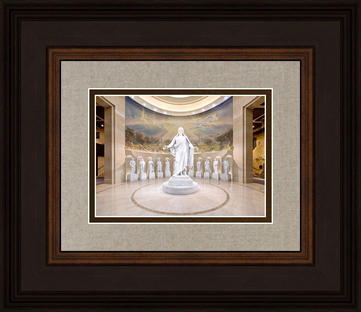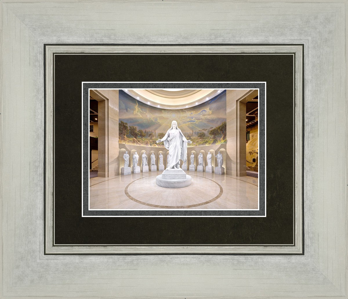 This is the Christus statue found in the Rome Temple Visitor's Center. In the background, statues can be found of each of the 12 disciples.
