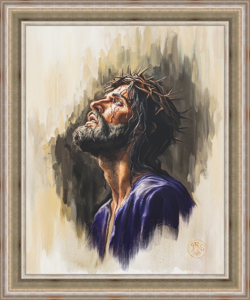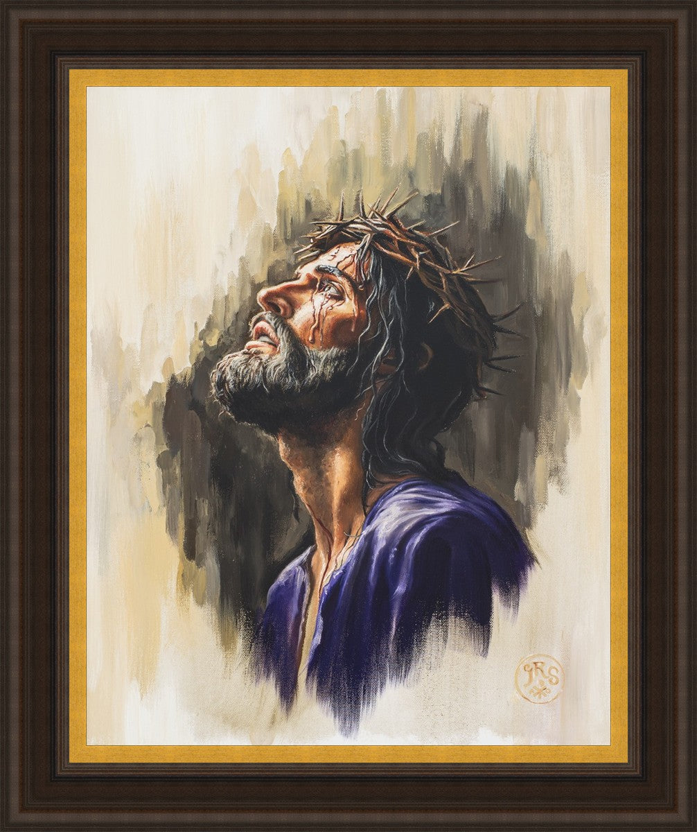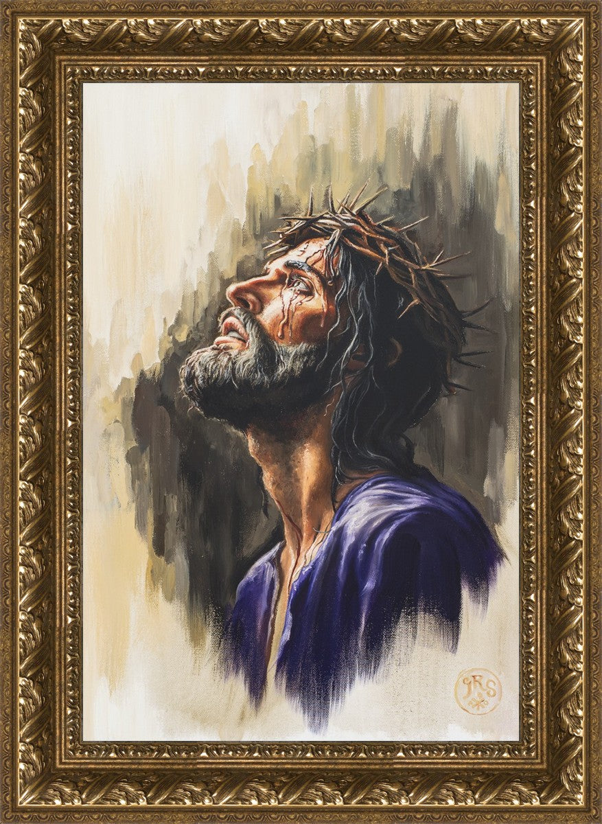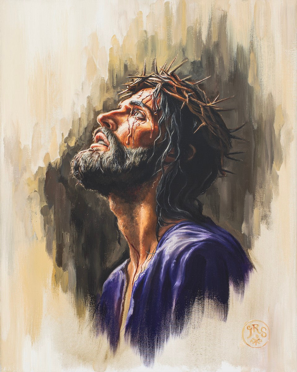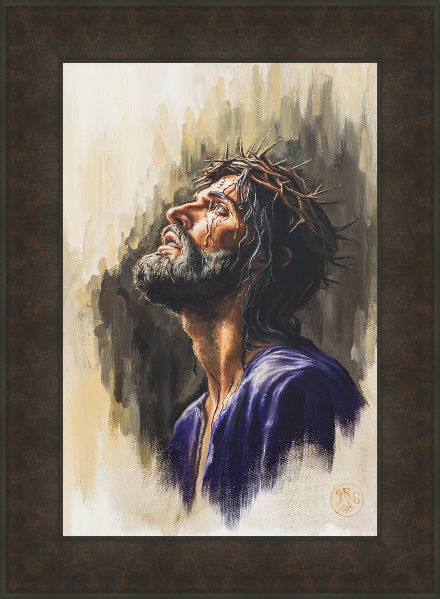 "Coronation II" is a depiction of Christ with the crown of thorns being placed upon his head by the roman soldiers. In this artwork, Christ is depicted with his chin held high. This choice in posing demonstrates how even while bearing the most painful form of tortuous murder in the ancient world, Christ, as our sovereign Lord, has not been overcome by those who oppose him, but rather is actively submitting himself to these abuses as a means for expiating the sins of the world.