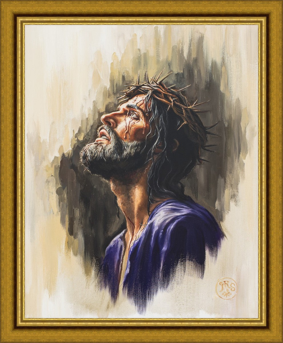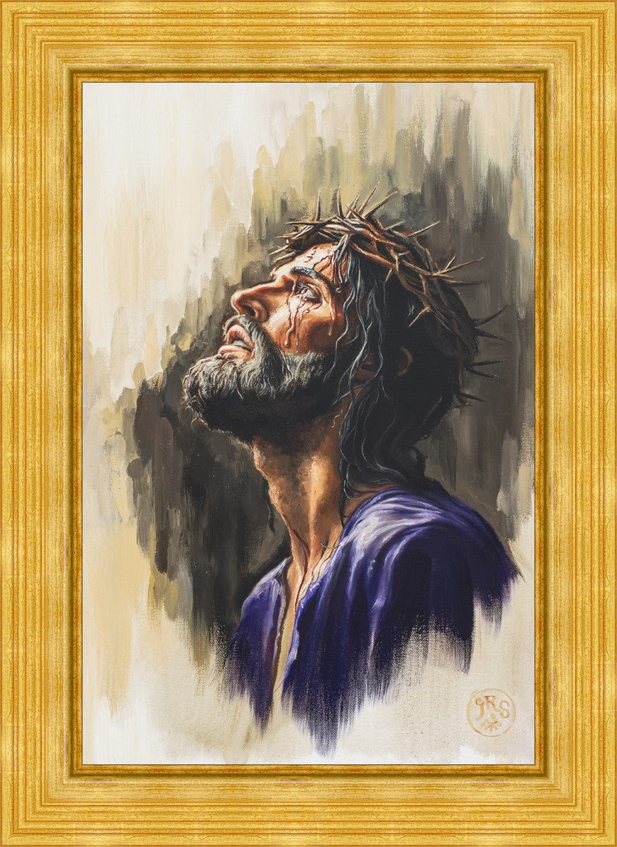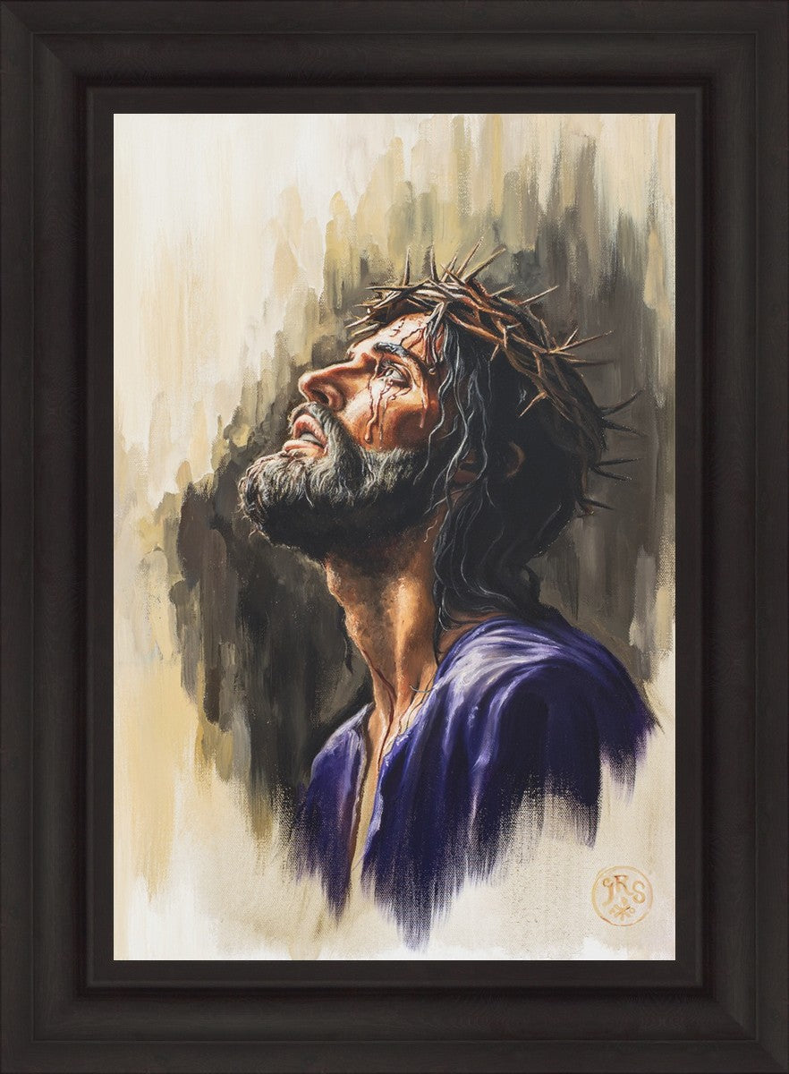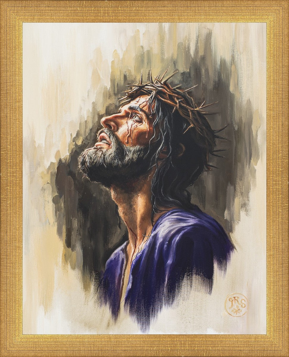 "Coronation II" is a depiction of Christ with the crown of thorns being placed upon his head by the roman soldiers. In this artwork, Christ is depicted with his chin held high. This choice in posing demonstrates how even while bearing the most painful form of tortuous murder in the ancient world, Christ, as our sovereign Lord, has not been overcome by those who oppose him, but rather is actively submitting himself to these abuses as a means for expiating the sins of the world.